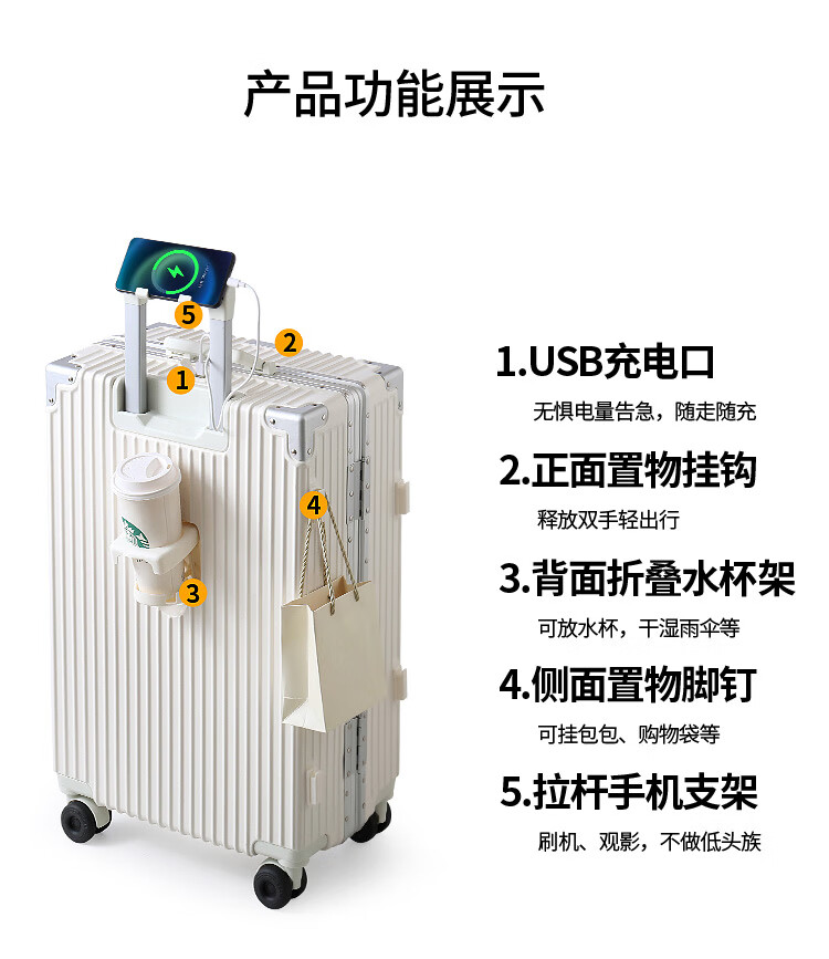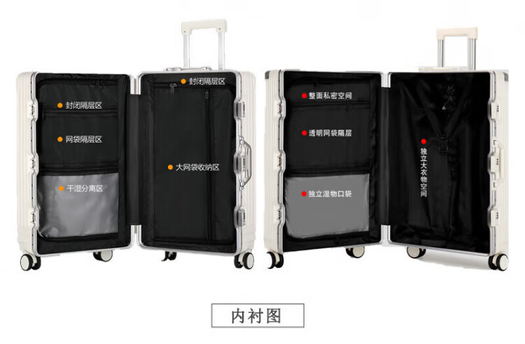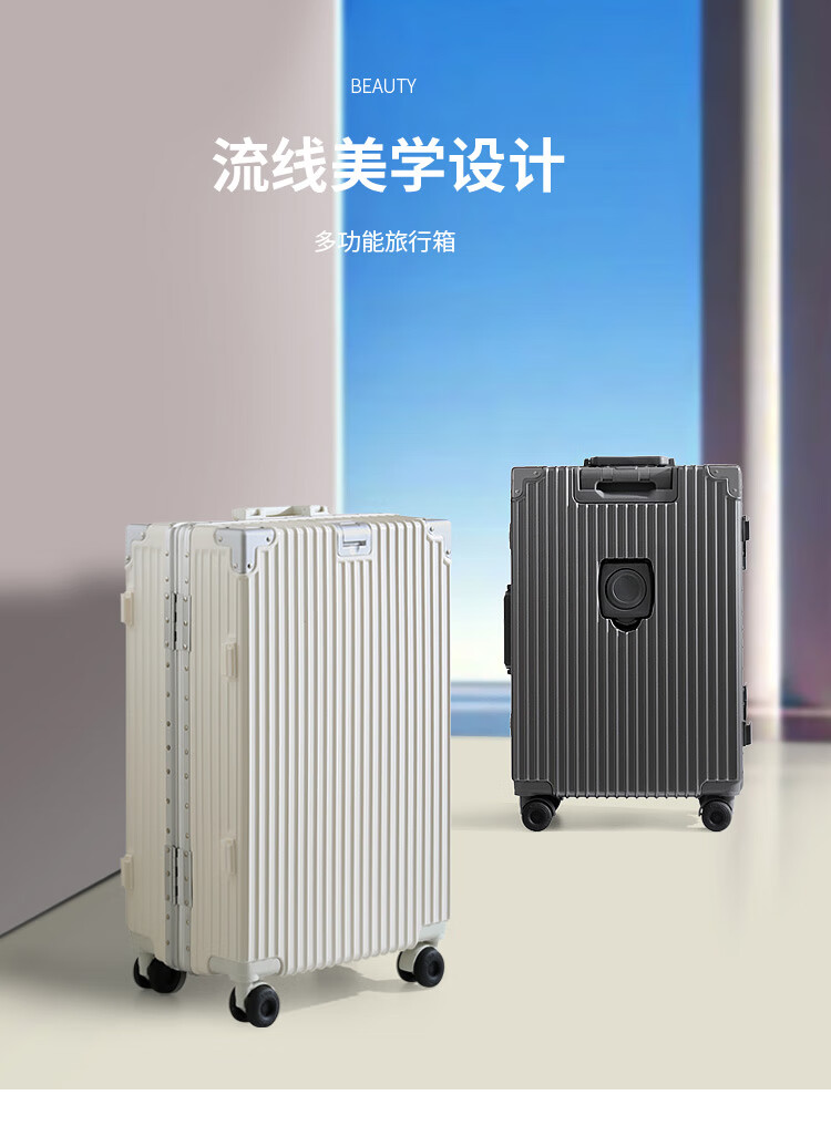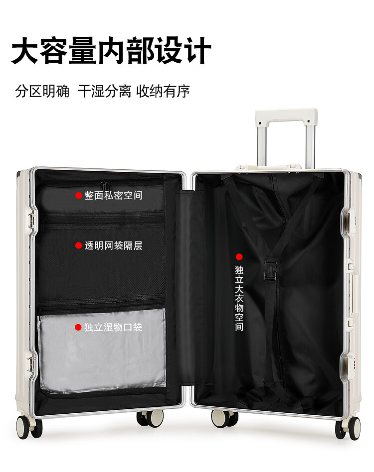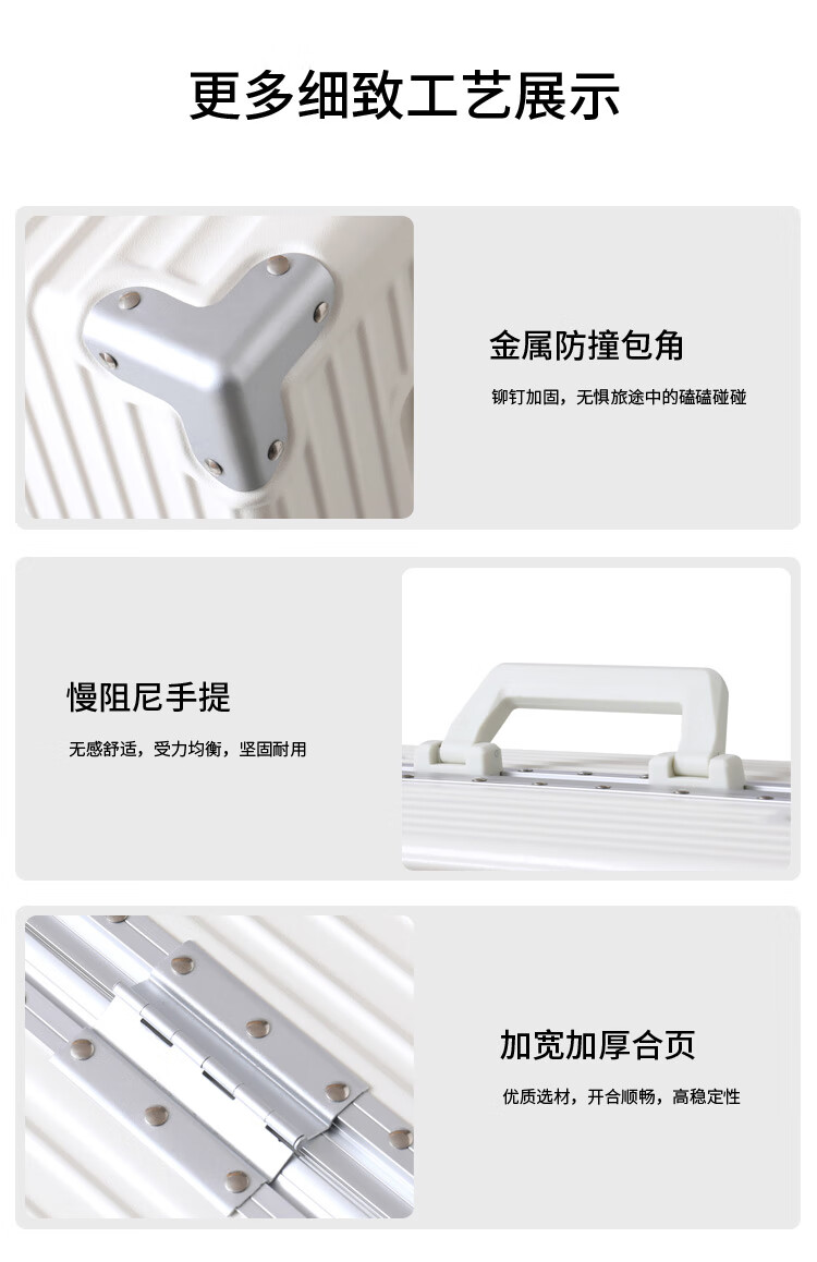 Diston Paul (DISIDUNBAOLUO) new upgraded aluminum frame suitcase, strong and durable, thickened hard shell trolley case for men and women, large capacity password box, milky white, infused aircraft wheel + wet and dry lining + front hook, 20 inches, wear-resistant and thickened box - comprehensive upgrade