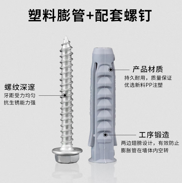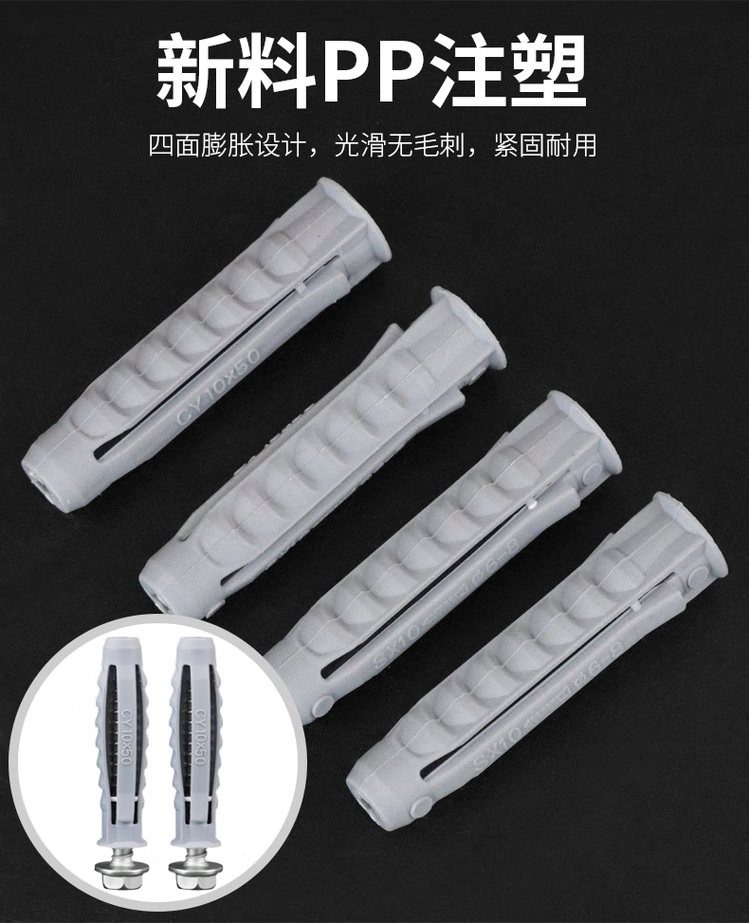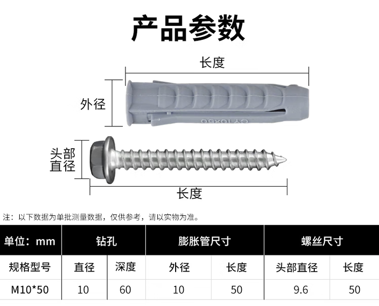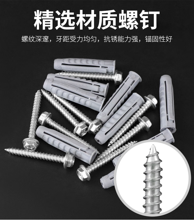 Zhewei LCD TV hanger expansion screw tetrahedral plastic expansion tube nail TV bracket expansion screw M10*50 tetrahedral tube + hexagonal nail 6 sets