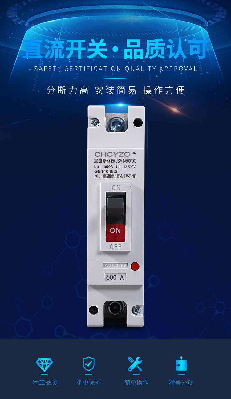 Electric vehicle high power air switch DC air open plastic case circuit breaker 200A300A400A600A 125A 1P