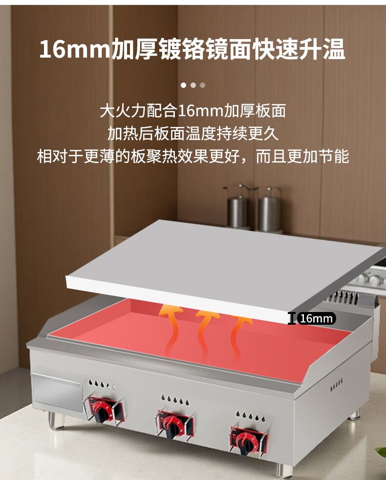 Jinfeng commercial chrome-plated non-black gas electric griddle, hand-grilled pancake machine, grilled steak, iron plate barbecue, cold noodle burger machine, electric | 0.73m non-black 10MM griddle