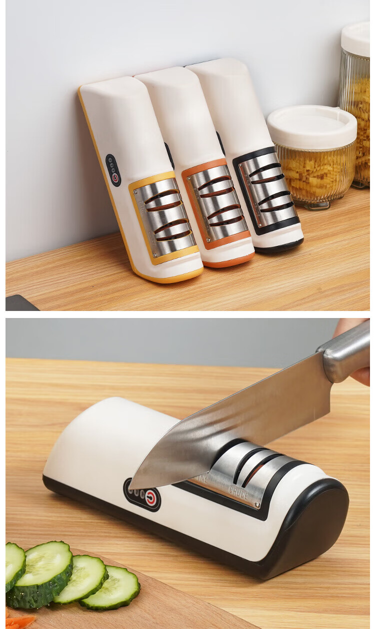 JCZS German kitchen electric whetstone, electric knife sharpener, fully automatic household multi-functional quick sharpening tool for kitchen knives, German wireless electric knife sharpener, classic black