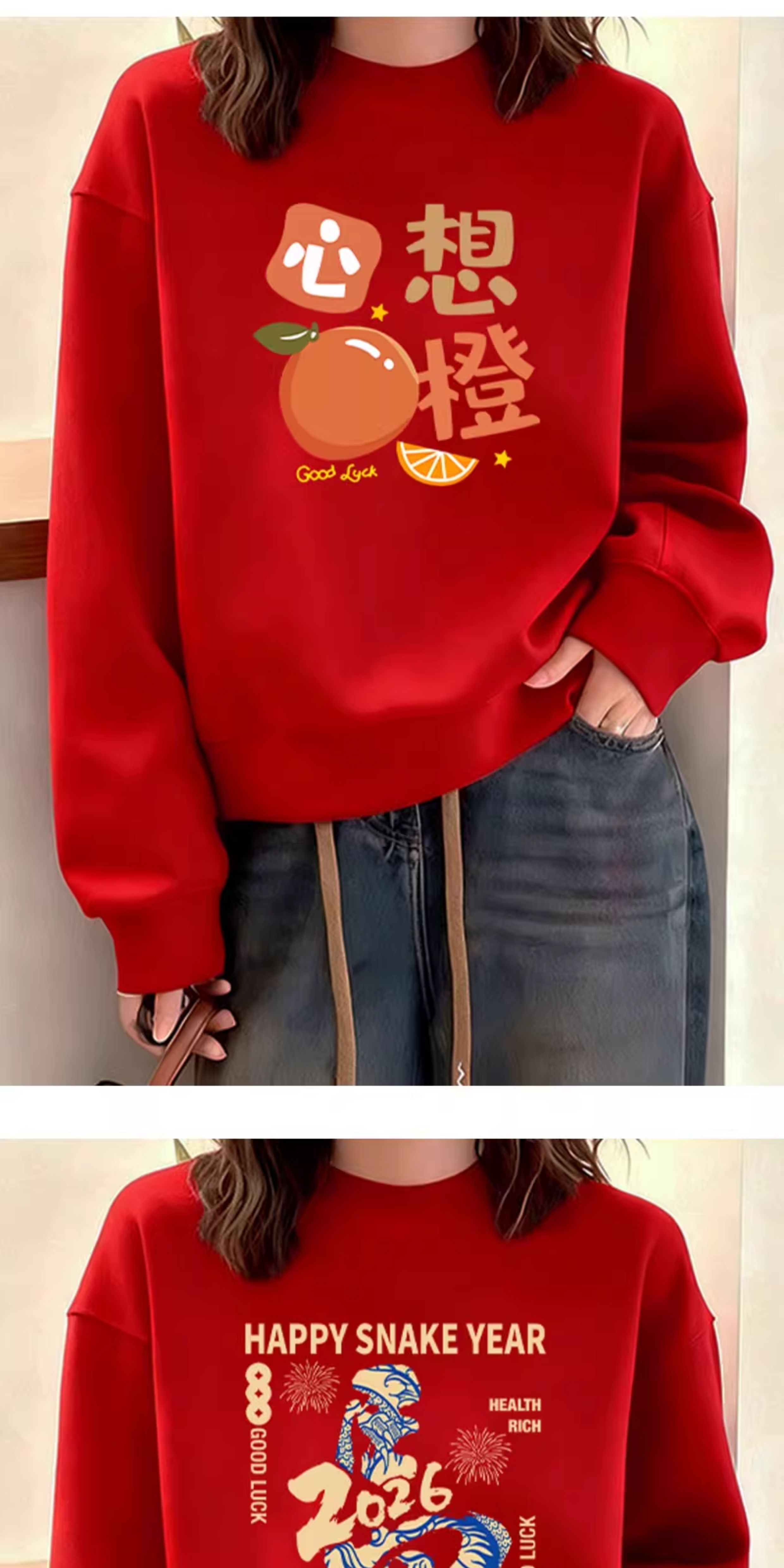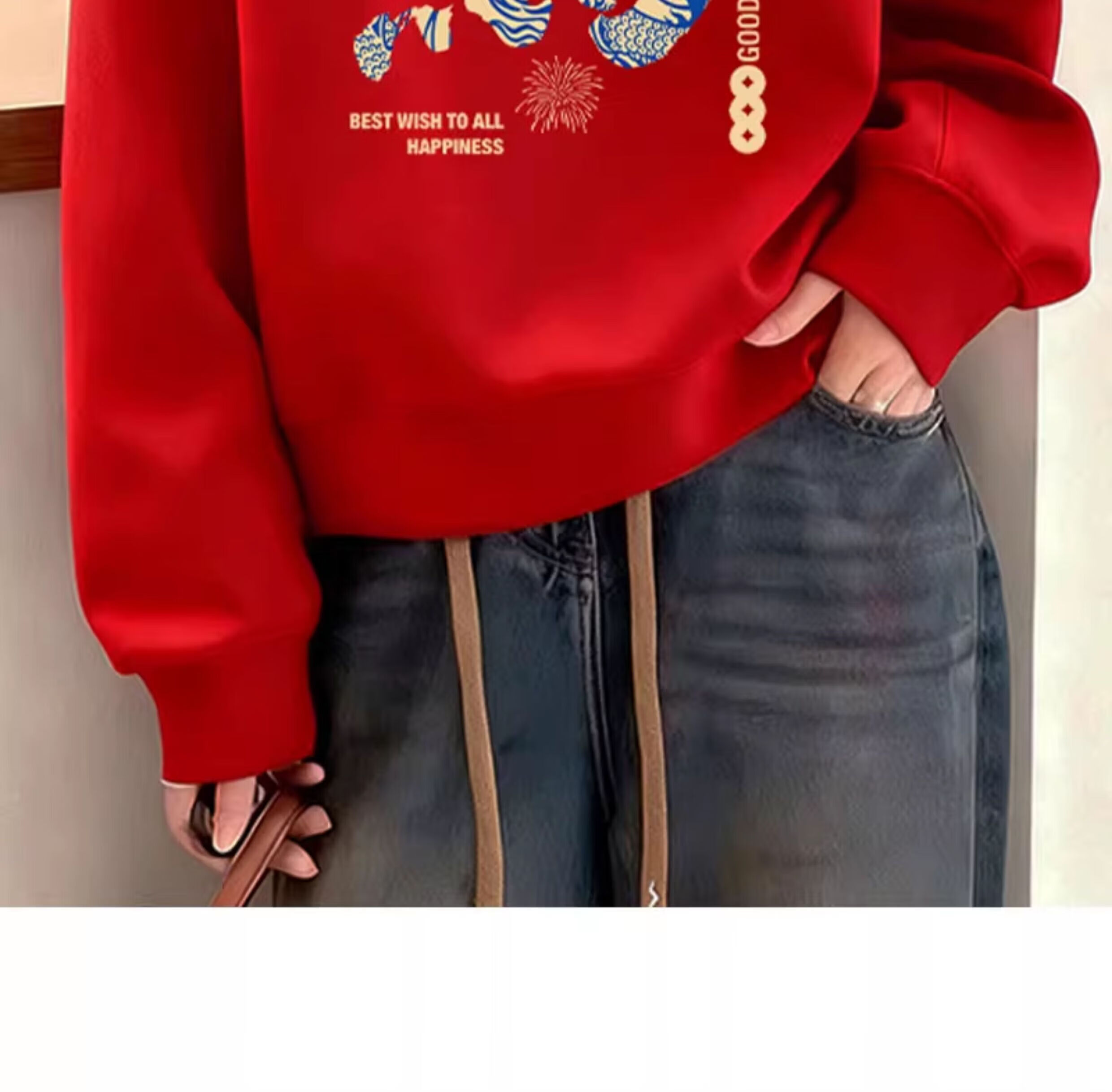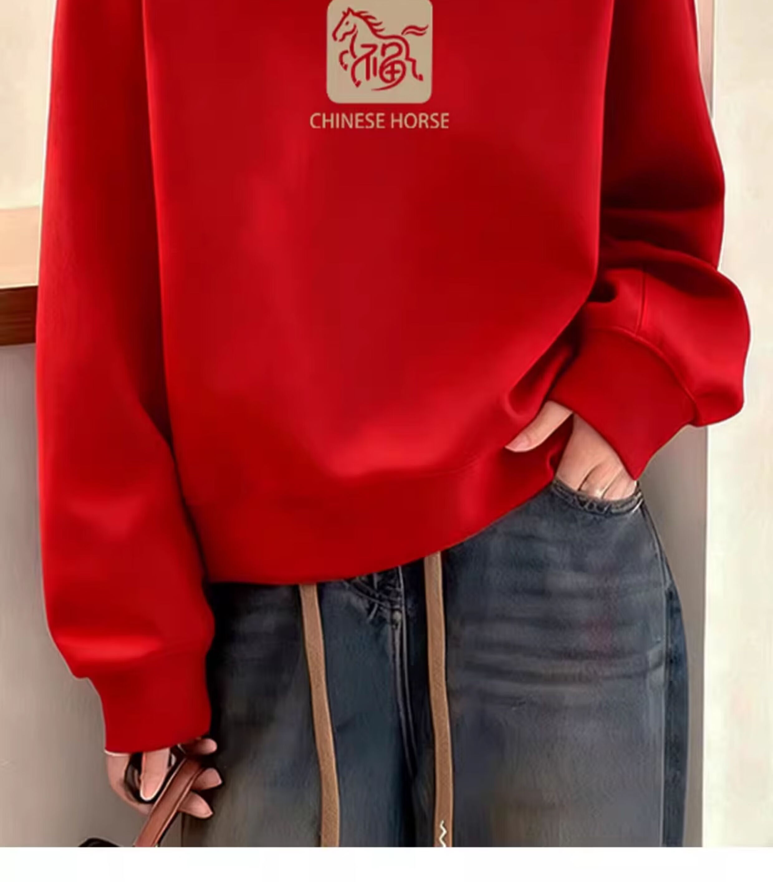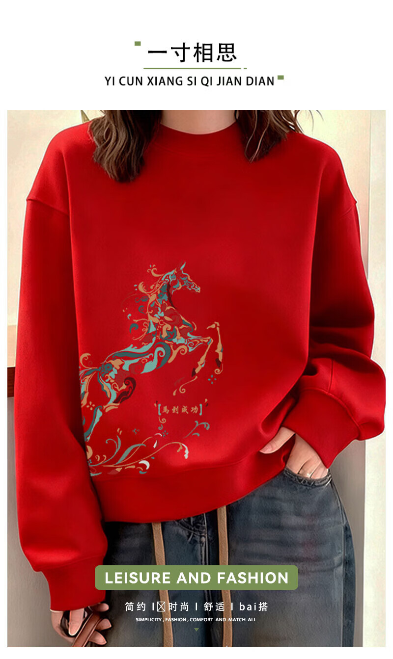 One Inch Acacia 2026 Autumn New Popular Year of the Horse Clothes Plus Velvet Thickened Red Round Neck Sweater Women's Zodiac Year Red Top Red - Immediate Success Spring and Autumn Style M 110-130 Jin