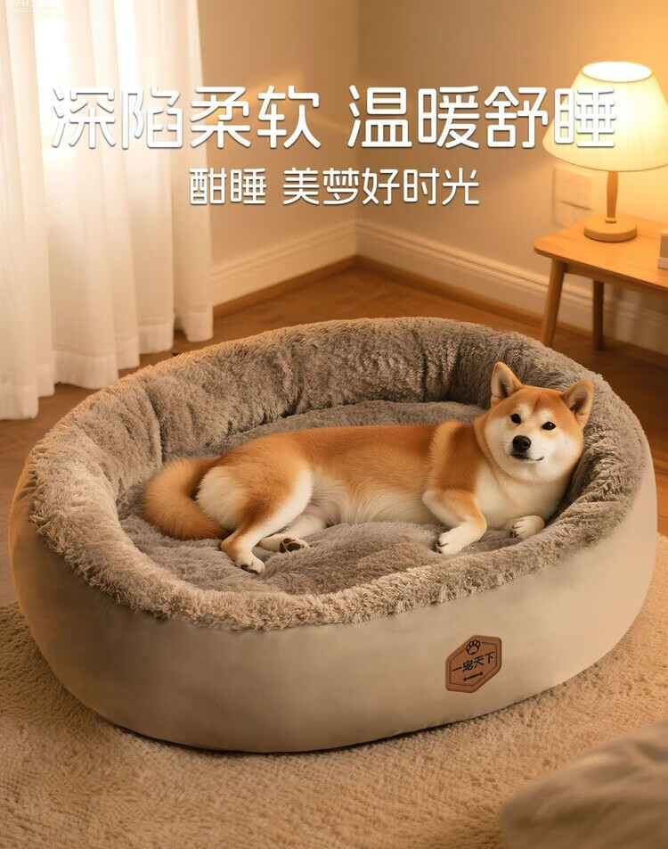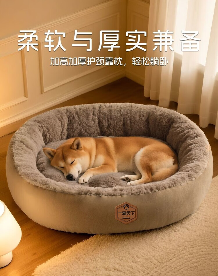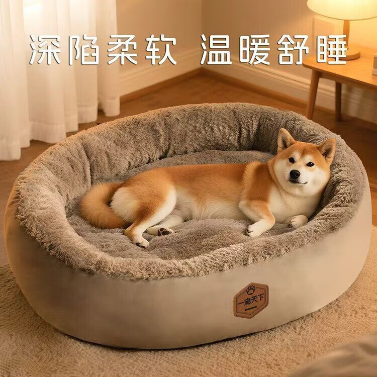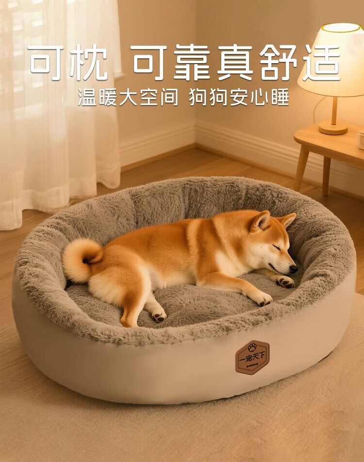 OYKTN winter warm kennel mat for pets, thickened for all seasons, large dog sleeping kennel, warm in winter, high-end gray + toys, thick and warm, XL 75*60*21cm, recommended for medium-sized dogs up to 35 pounds