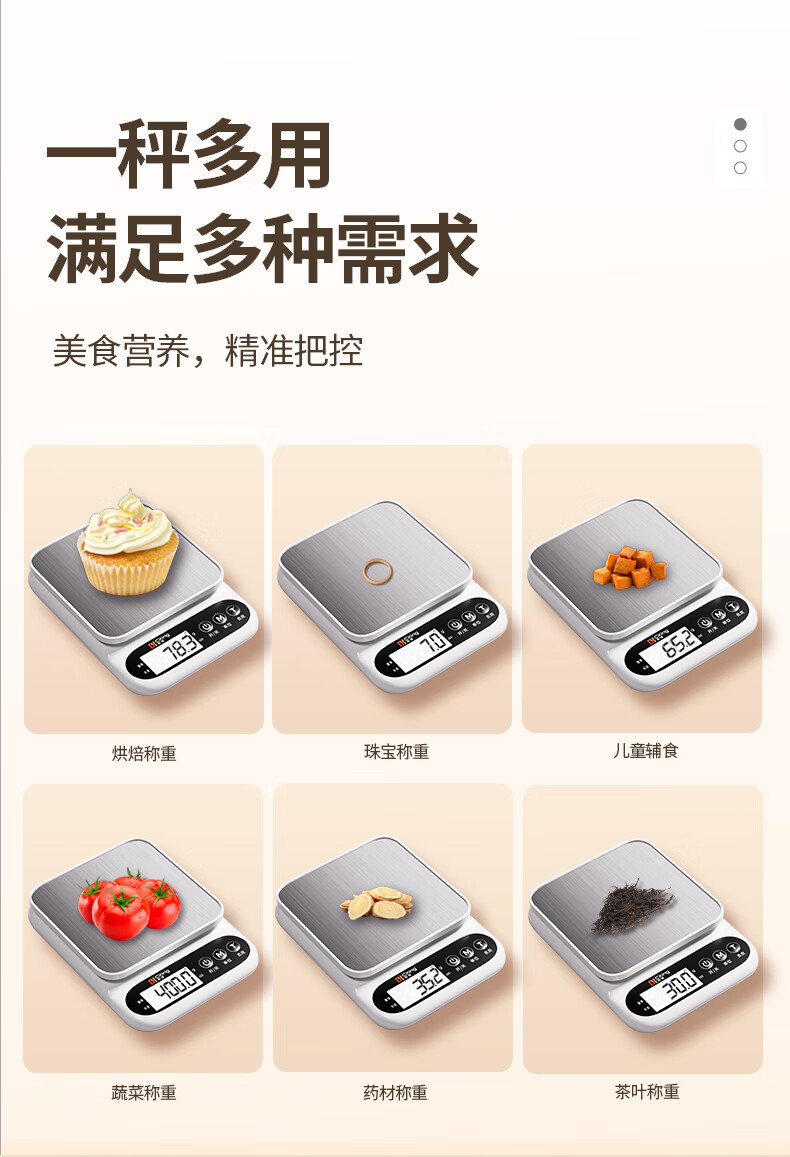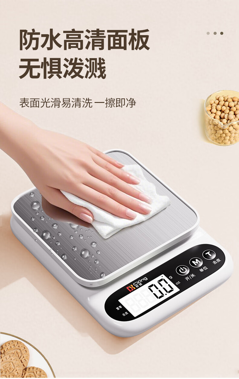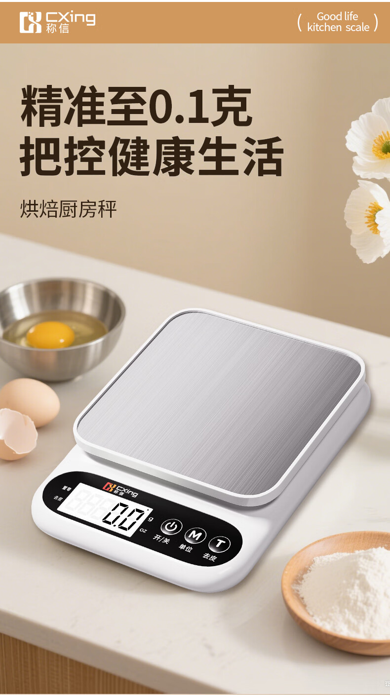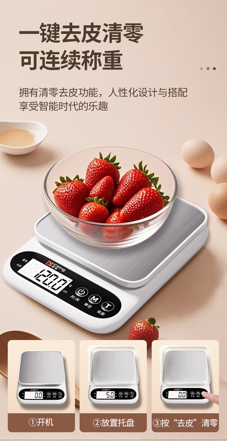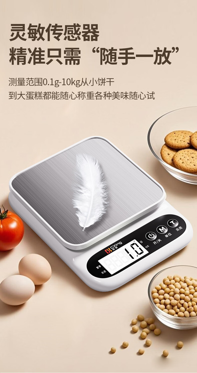 Electronic scale kitchen scale gram scale food high-precision gram weight scale baked food scale gram scale weighing white three-use model 10KG/0.1G + measuring cup + egg white separator