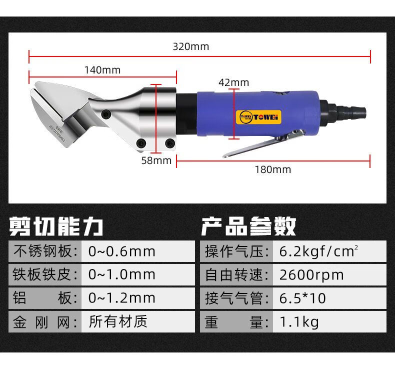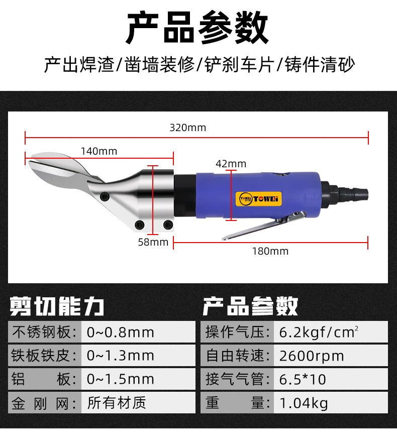 Lai Yeqi high-end quality iron scissors pneumatic scissors air shears powerful industrial grade air scissors head diamond mesh iron scissors blue enhanced version (+ small oil)