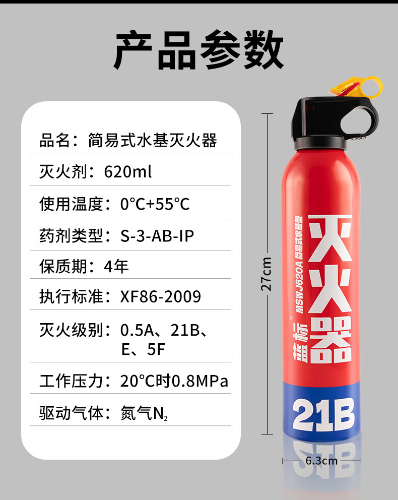 Gongma Mercedes-Benz car-mounted water-based fire extinguisher, high temperature resistant, portable private car, 620ml water-based *1 bottle 21B (can extinguish electric fire and oil fire)