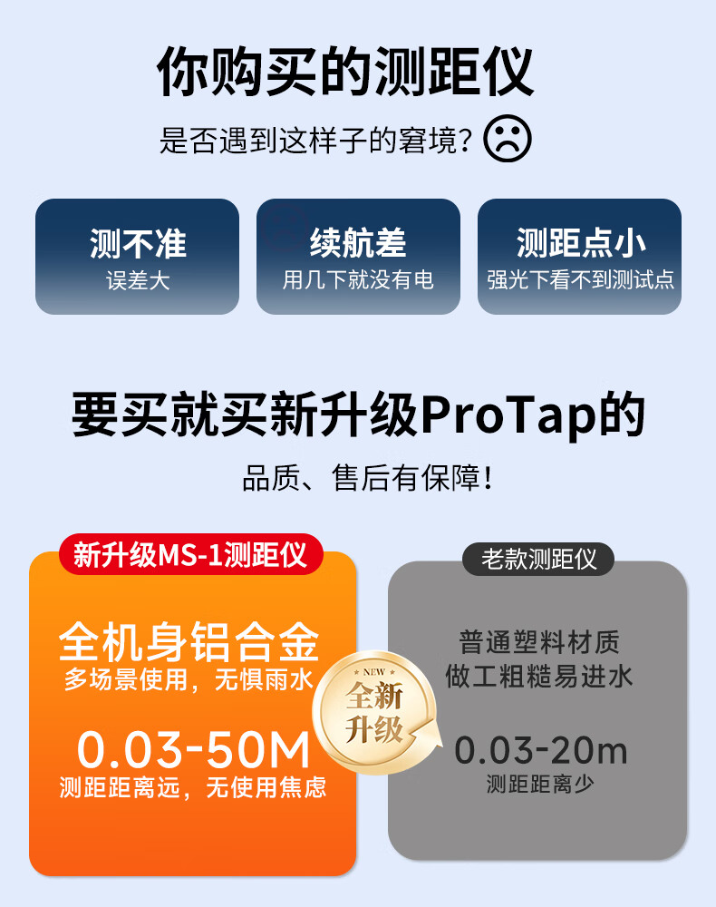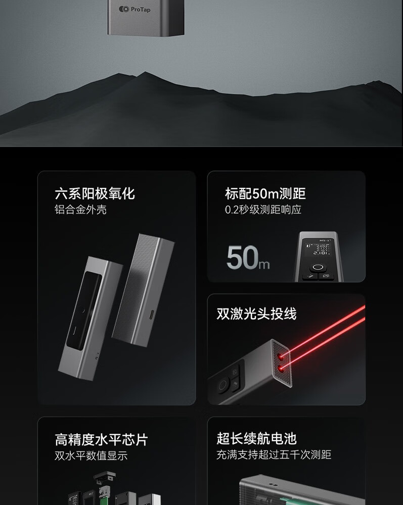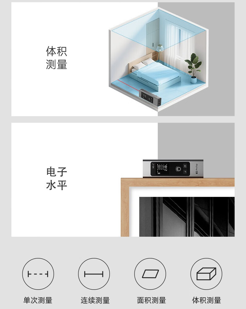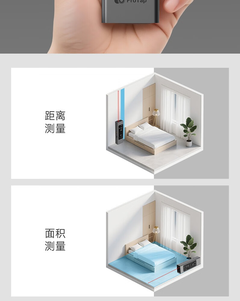 PROTAP laser range finder infrared ultra-high precision electronic ruler measuring room tester measurement portable digital display 60 meters + laser cross line + second response + 1/4 thread interface + long battery life