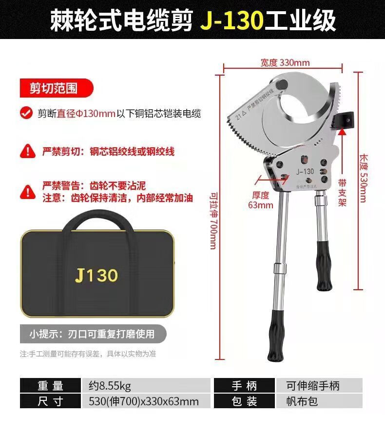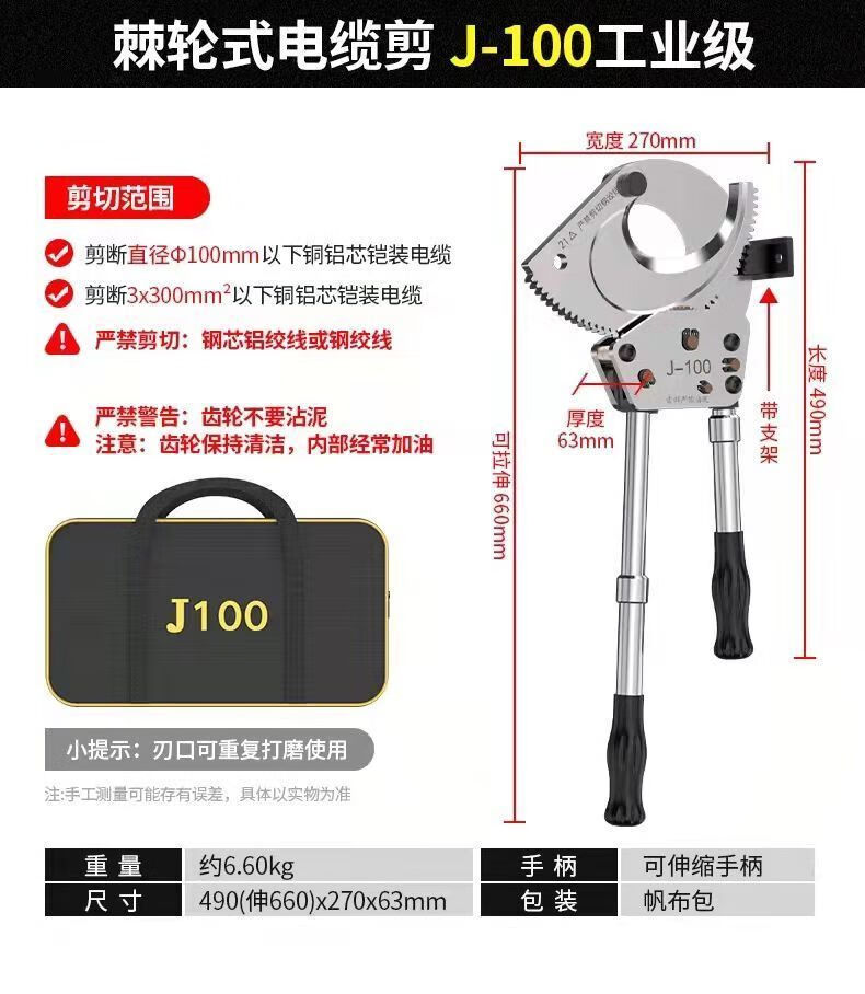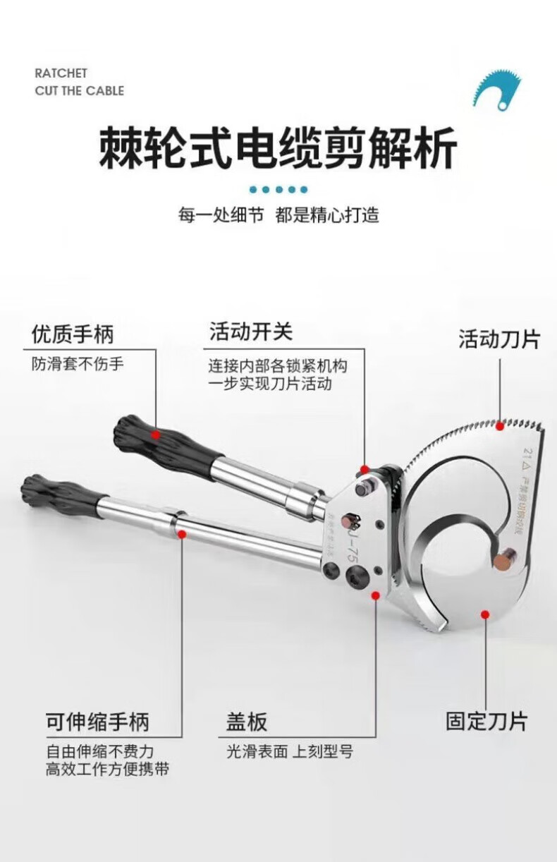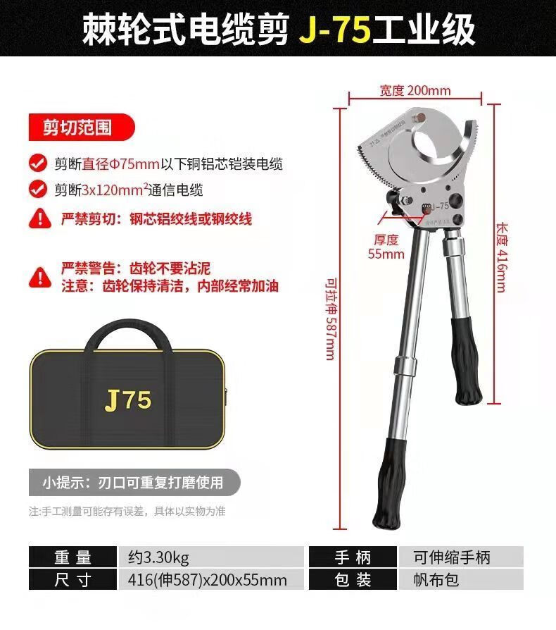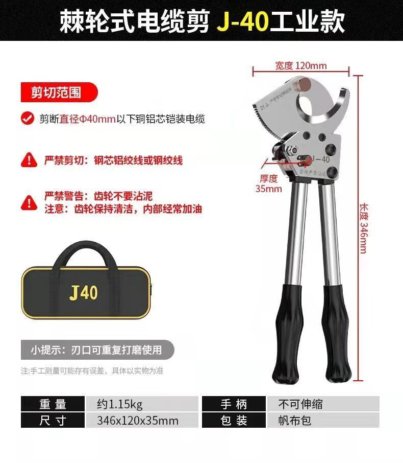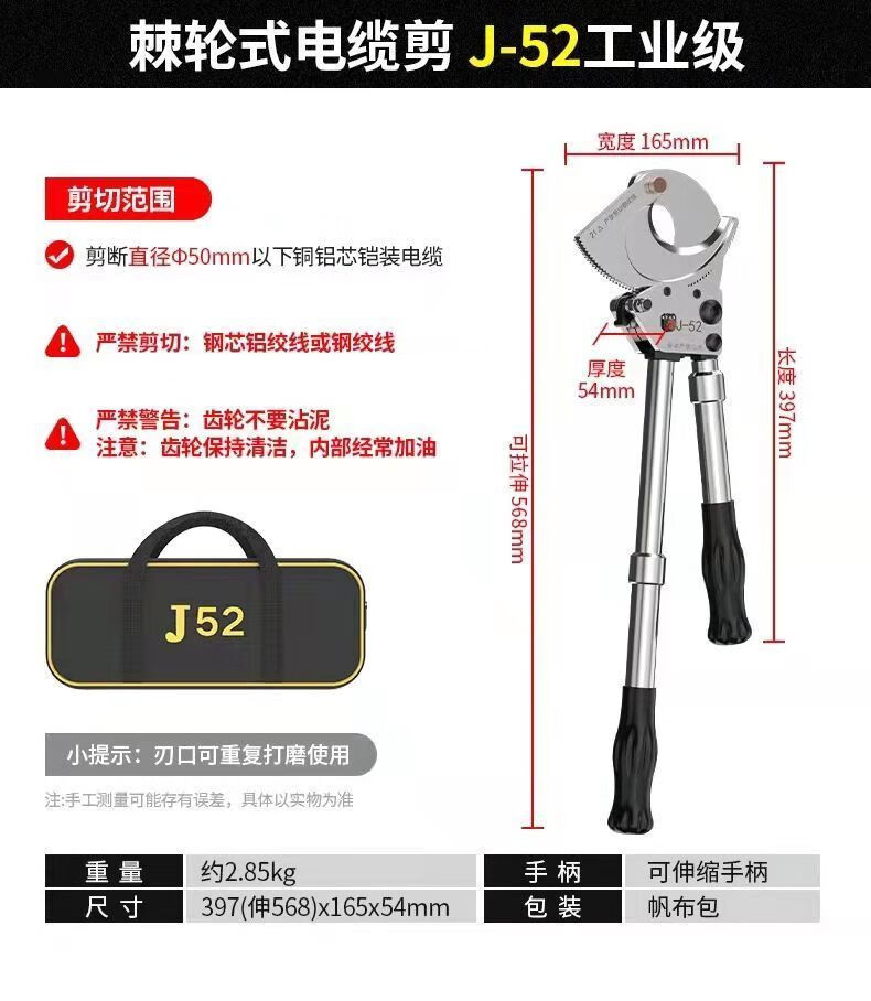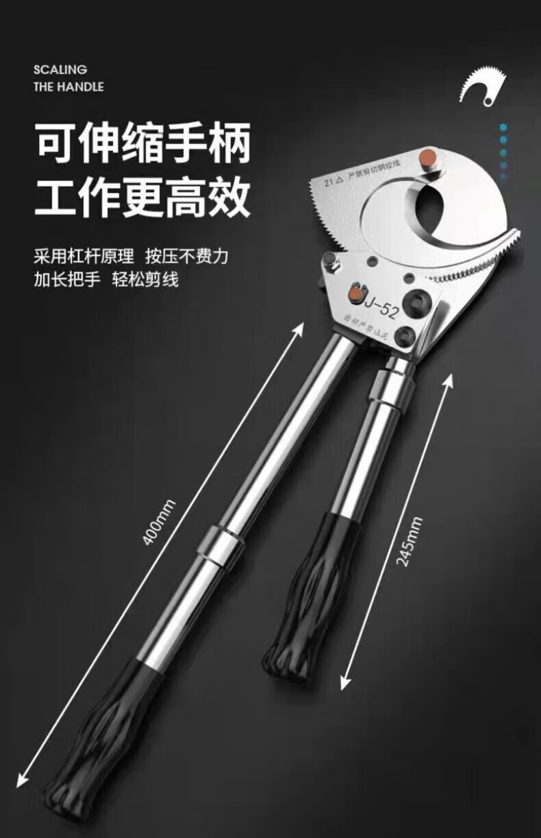 Lai Yeqi high-end quality ratchet cable cutter gear-type wire scissors cable cutter manual cut copper aluminum steel strand XD-520 steel strand cutter
