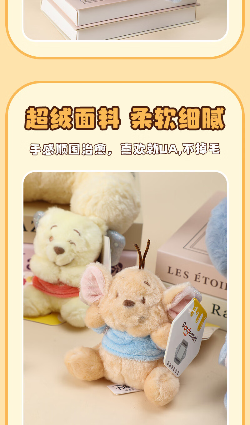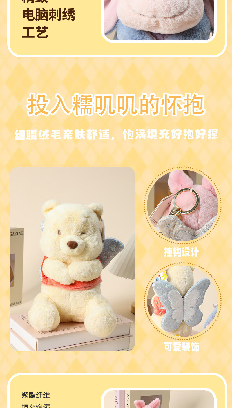 Disney genuine Winnie the Pooh, Piglet, Eeyore and Bean plush pendant, backpack pendant, keychain pendant, 10cm Disney Piglet, cute sticker pendant, genuine authorization + anti-counterfeiting label