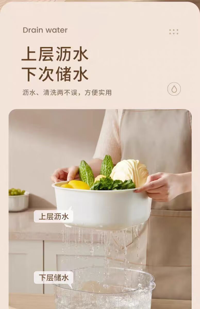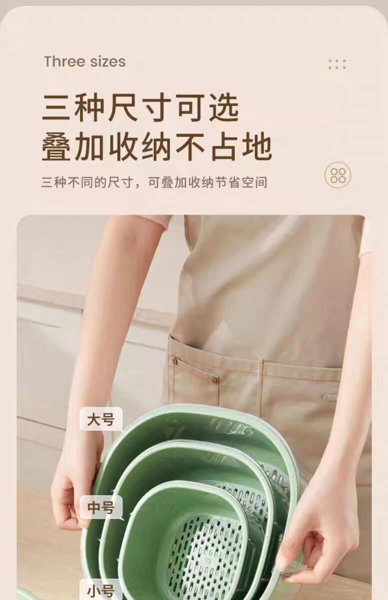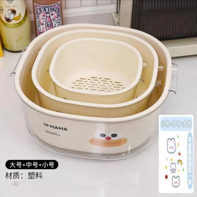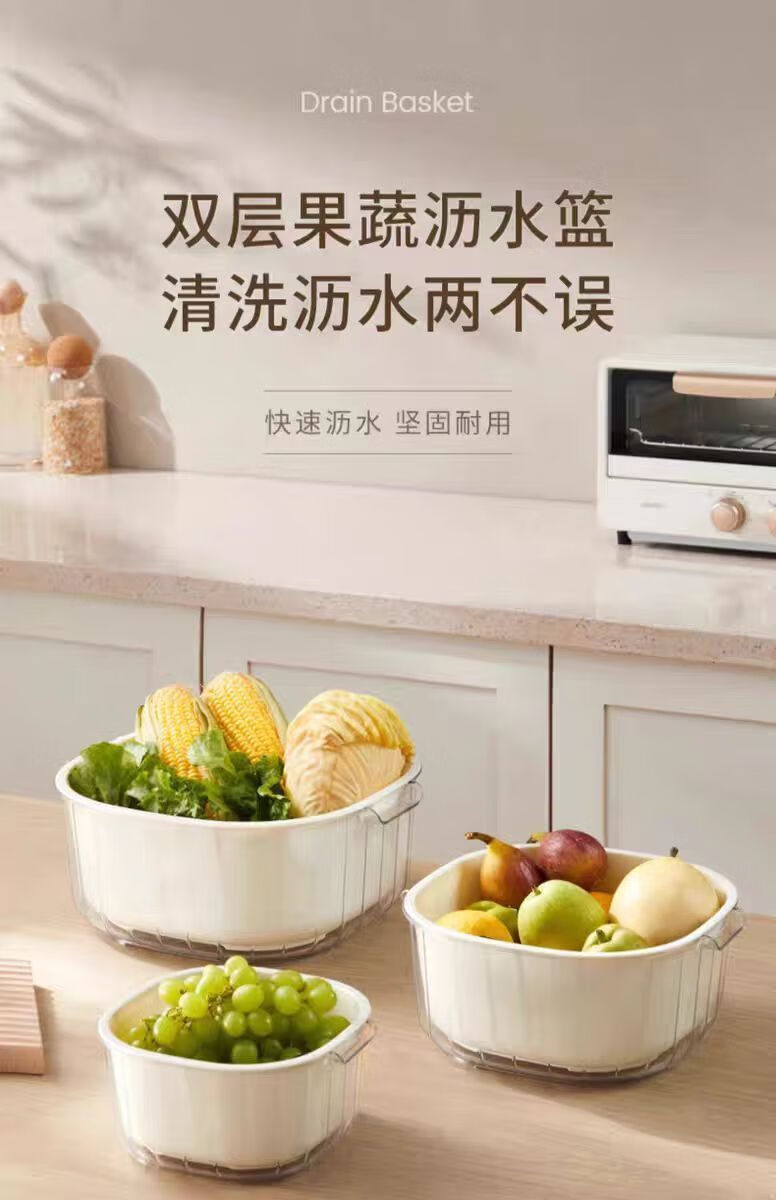 Sanqihu vegetable sink double-layer extra thick vegetable drain basket plastic kitchen multi-purpose living room shopping basket fruit and vegetable cream white 4-piece set extra large + large set super cost-effective strong and durable | super large capacity | quick draining