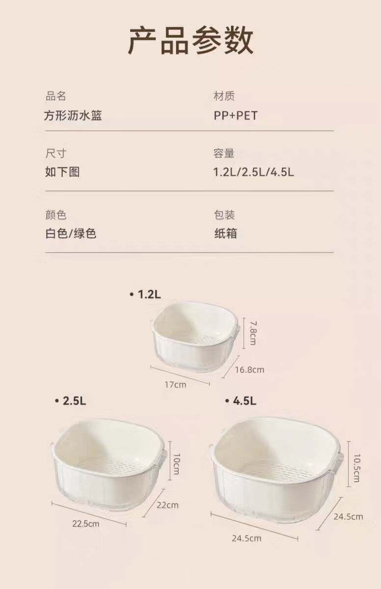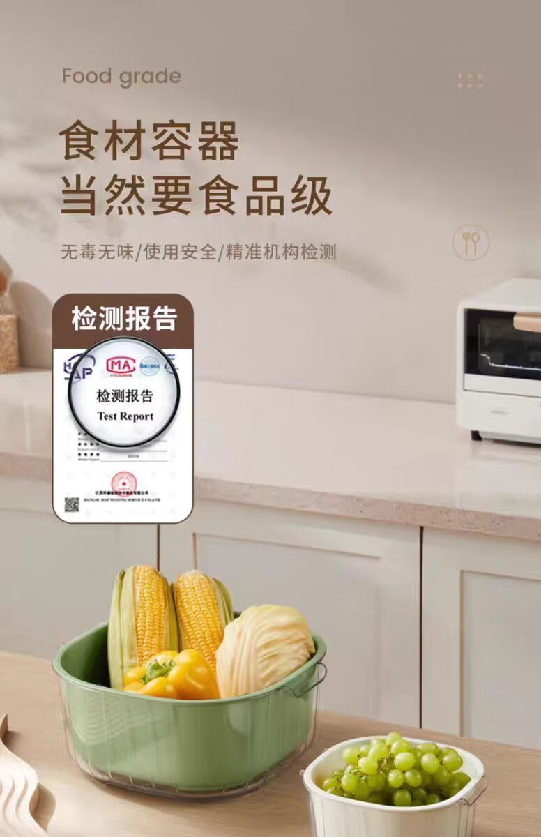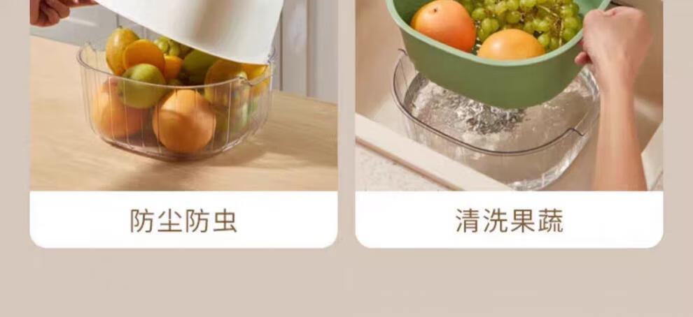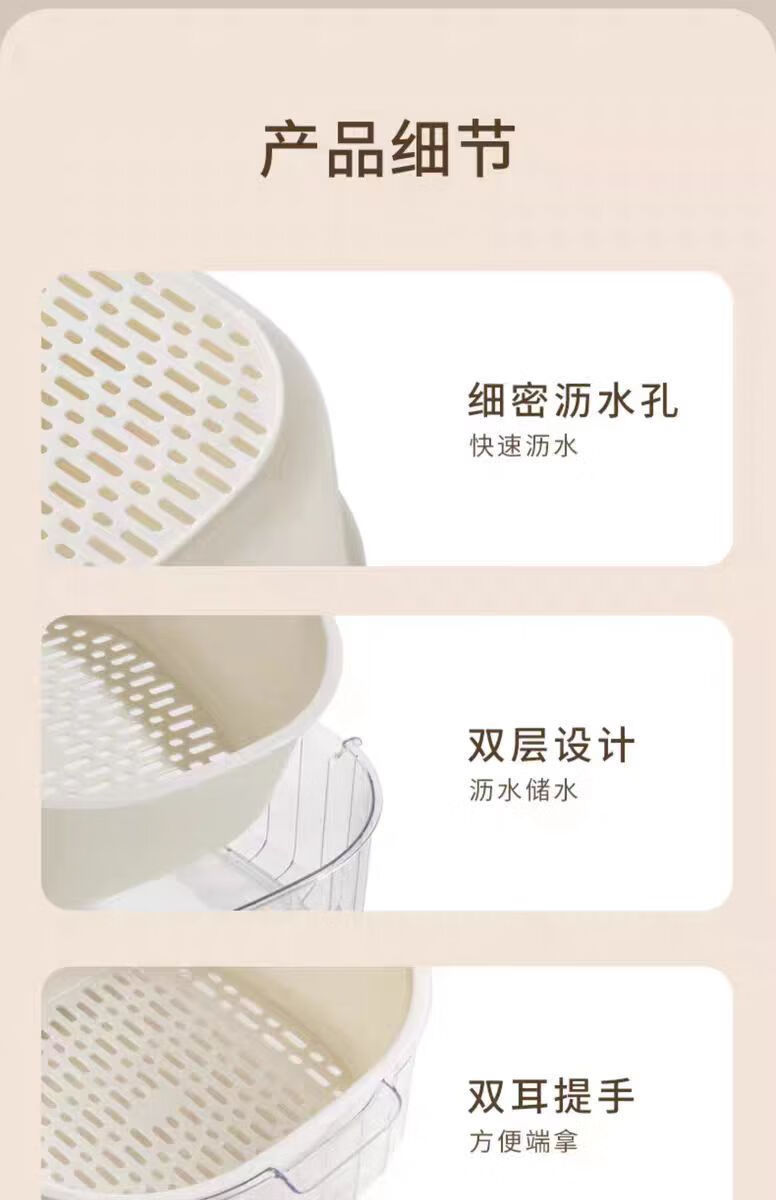 Sanqihu vegetable sink double-layer extra thick vegetable drain basket plastic kitchen multi-purpose living room shopping basket fruit and vegetable cream white 4-piece set extra large + large set super cost-effective strong and durable | super large capacity | quick draining