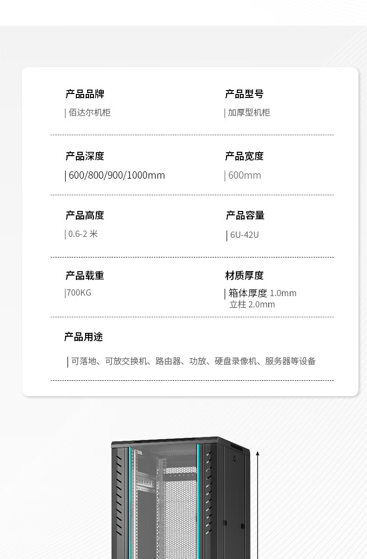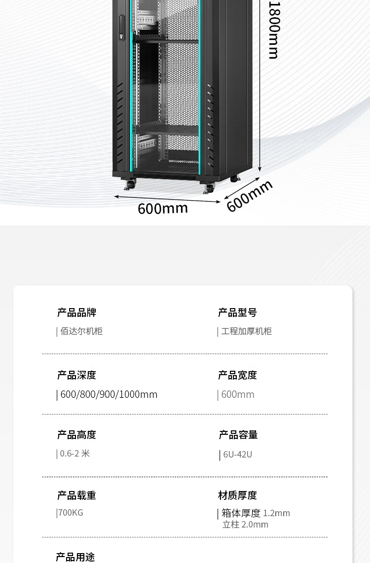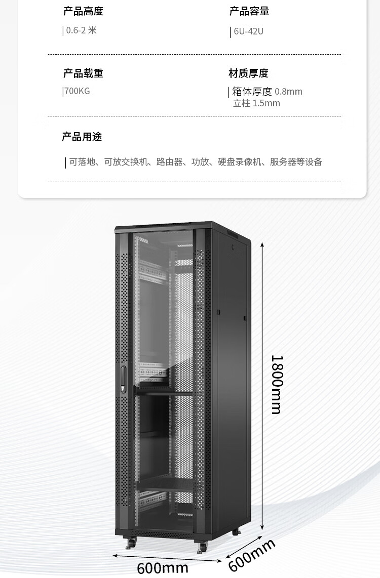 Network cabinet 1 meter 1.2 meters 2 meters national standard totem server room 42U32u18U switch chassis cabinet amplifier 2 meters engineering model 42U high 2000 wide 600 deep 800 0x0x0cm