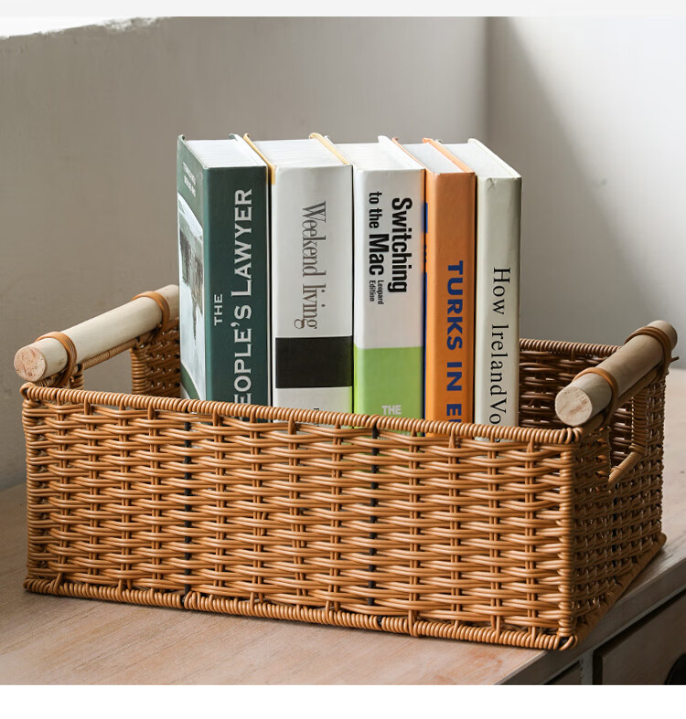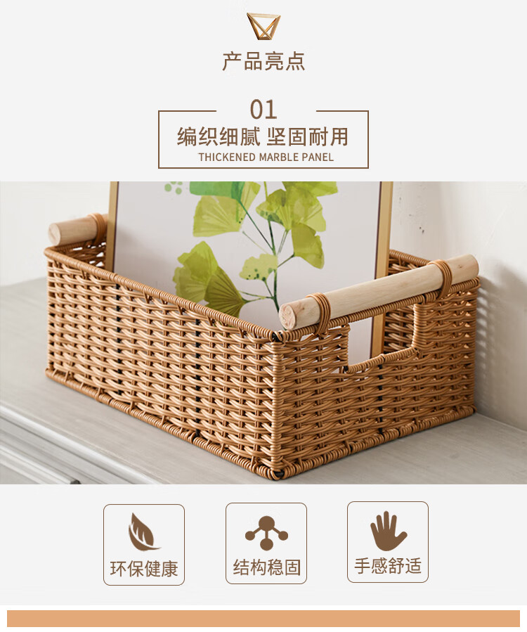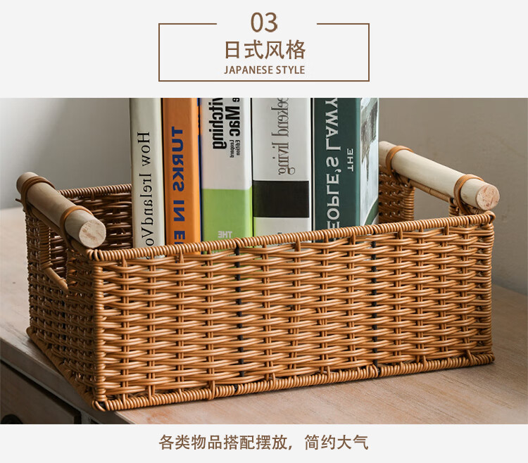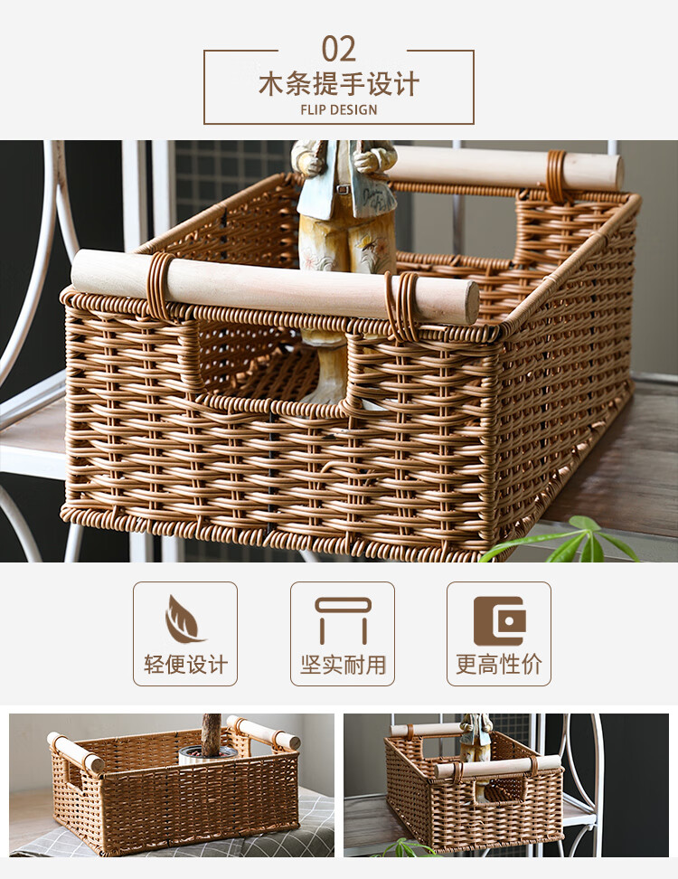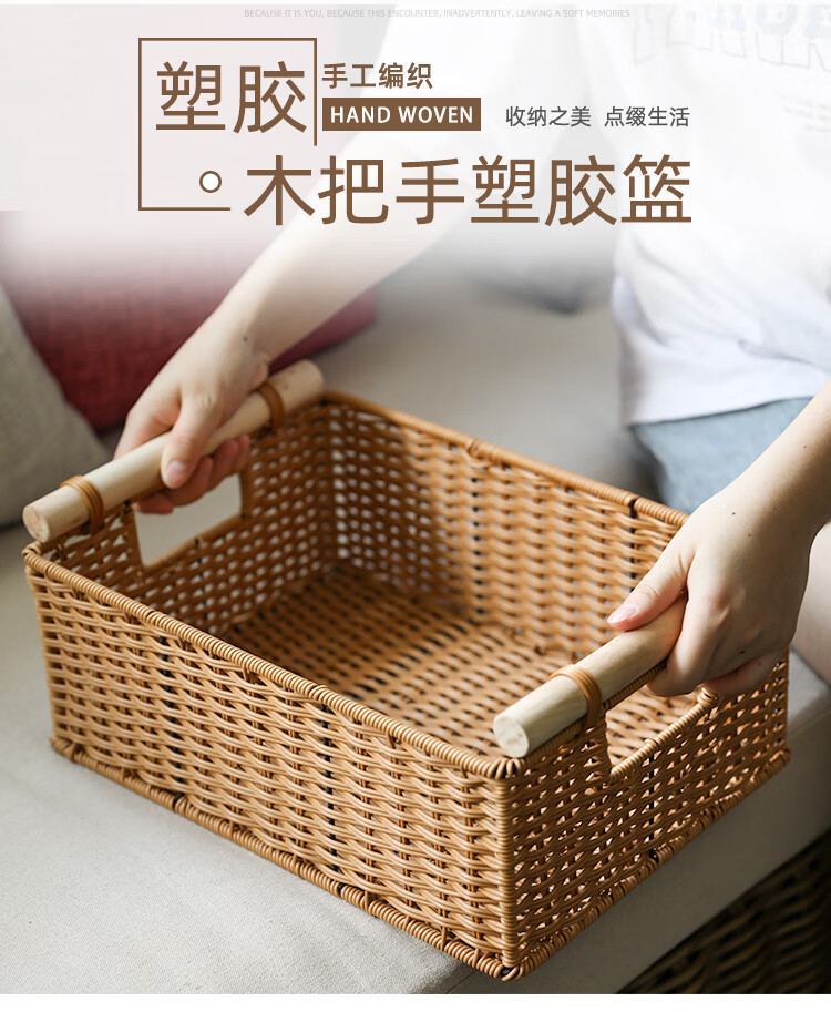Storage basket imitation rattan Japanese-style storage box simple living room study cabinet finishing basket snack storage box wooden handle brown double opening 30*30*21cm