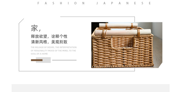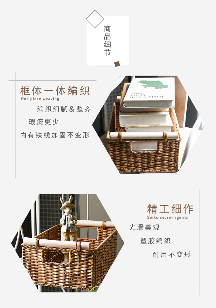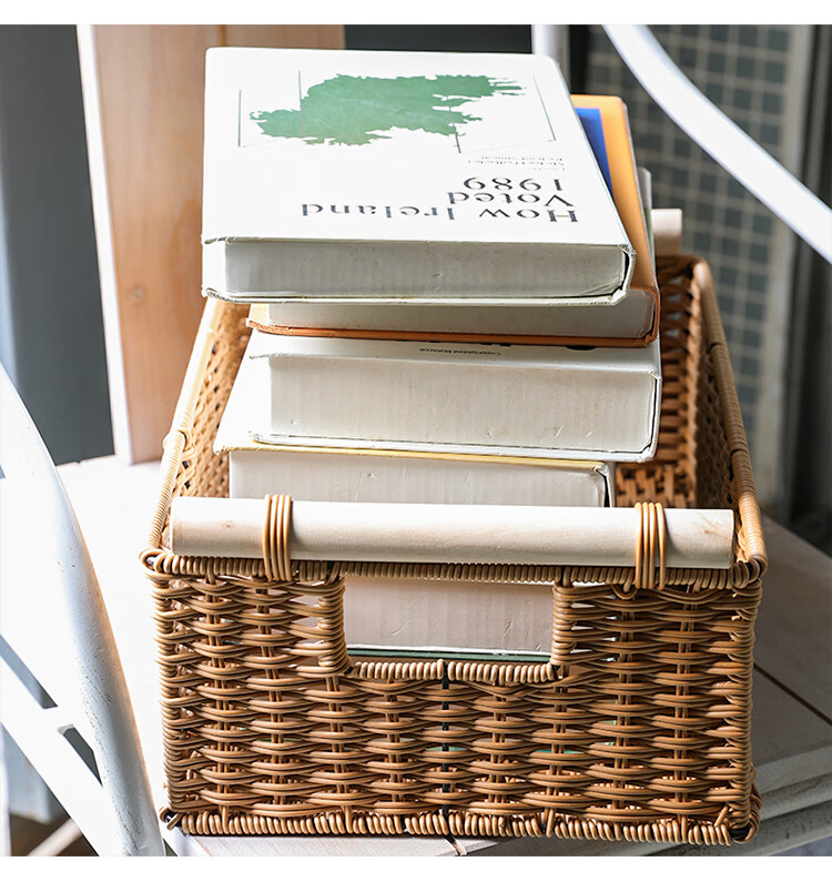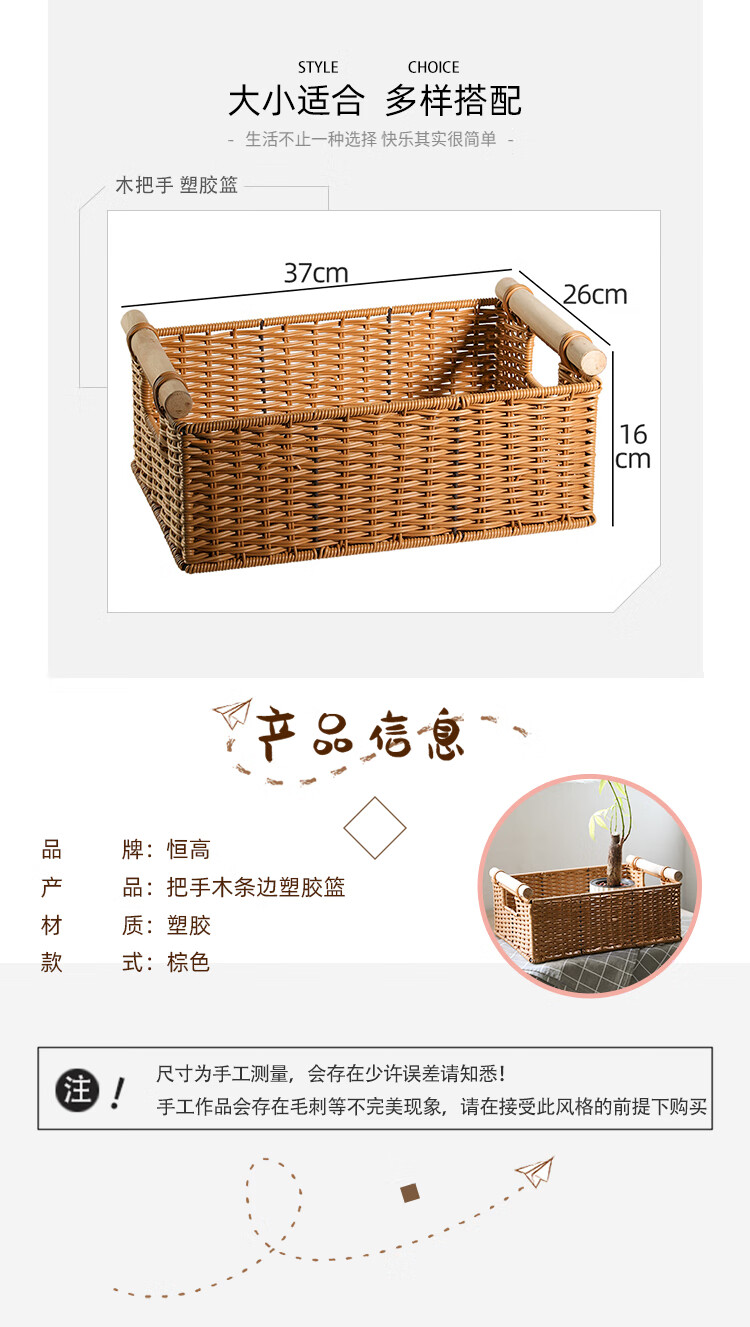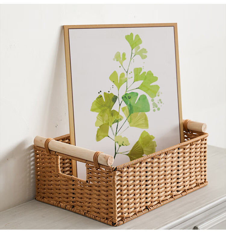 Storage basket imitation rattan Japanese-style storage box simple living room study cabinet finishing basket snack storage box wooden handle brown double opening 30*30*21cm