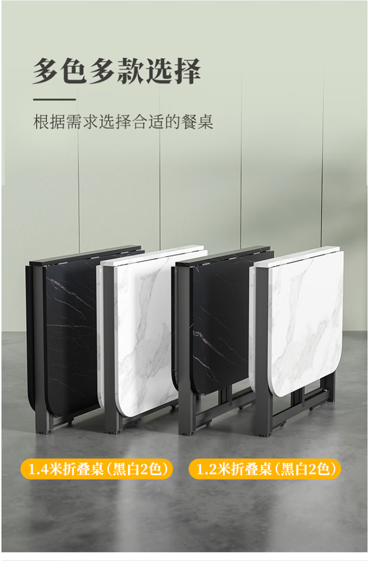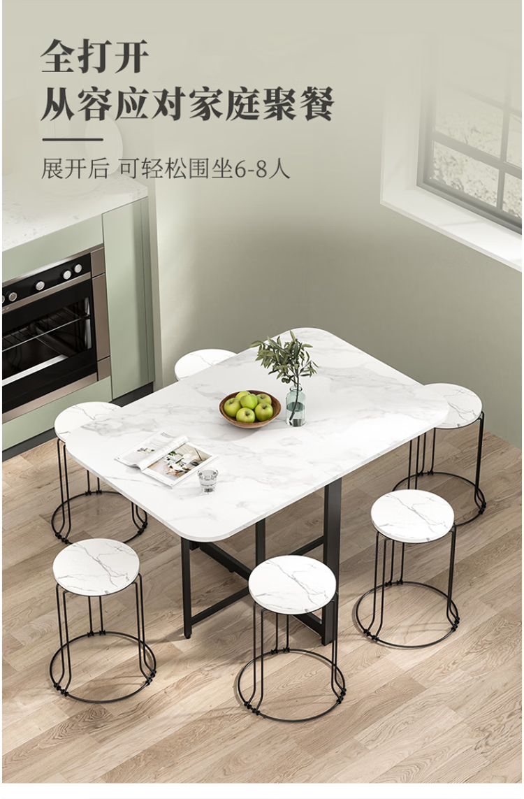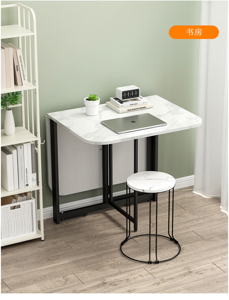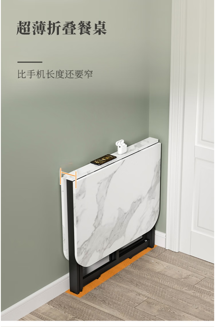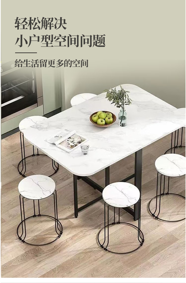 Folding dining table for small households, removable table, foldable wall table, marble pattern storage dining table, white marble pattern + black frame 120x80x75