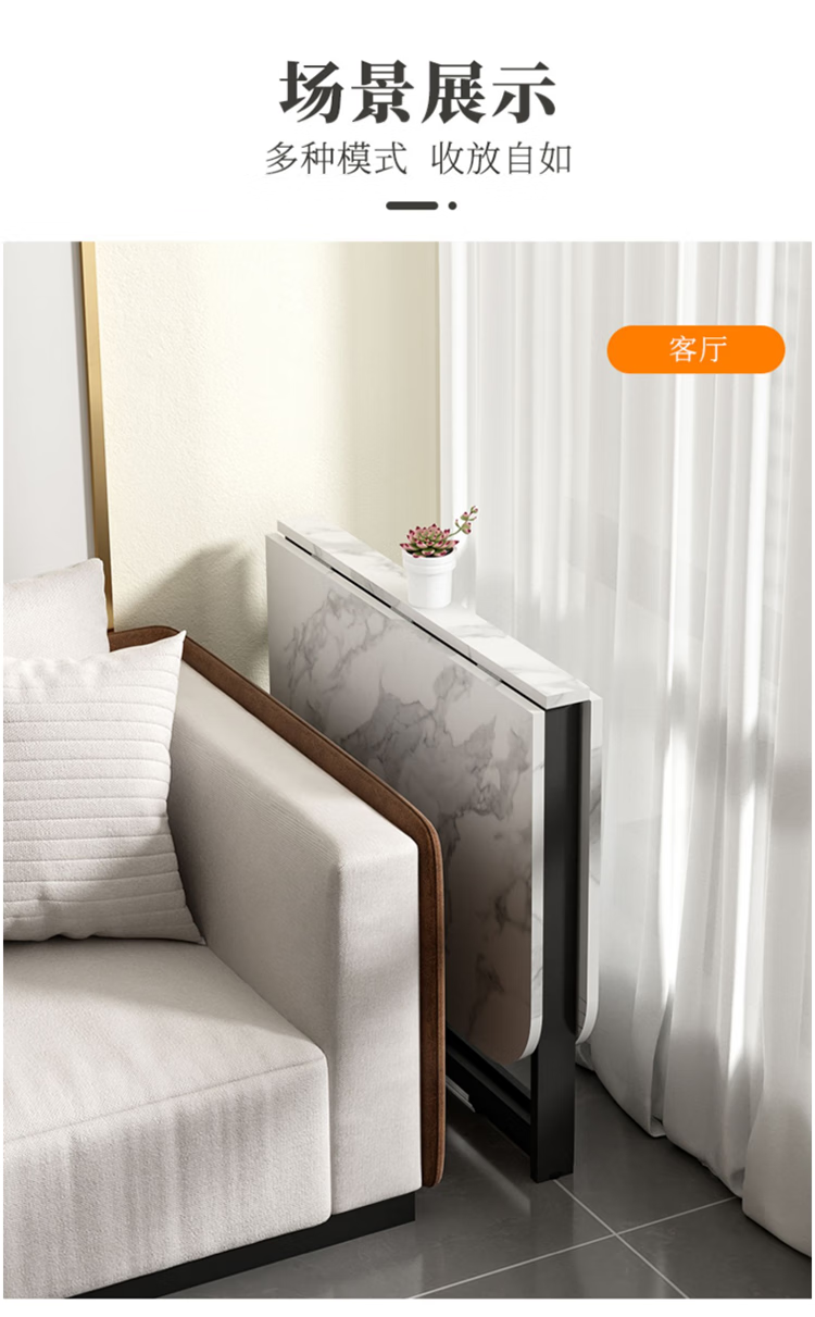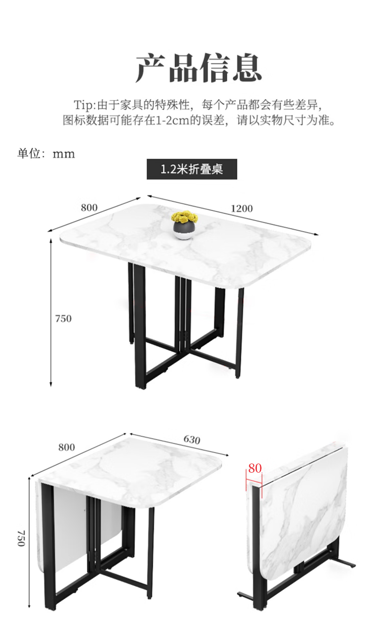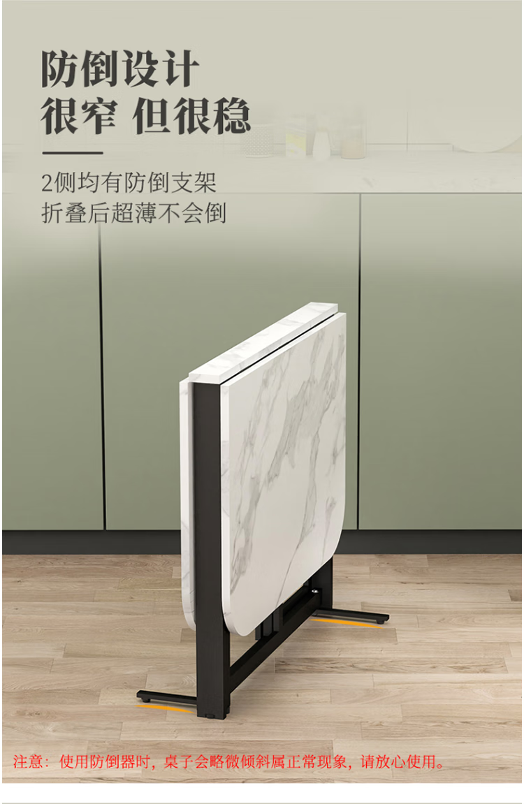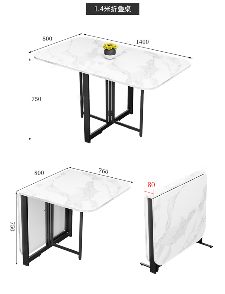 Folding dining table for small households, removable table, foldable wall table, marble pattern storage dining table, white marble pattern + black frame 120x80x75