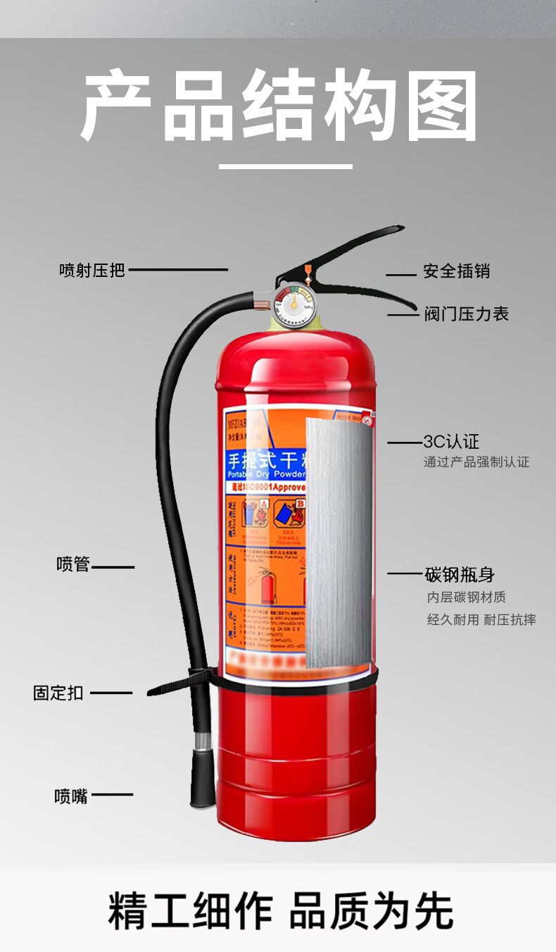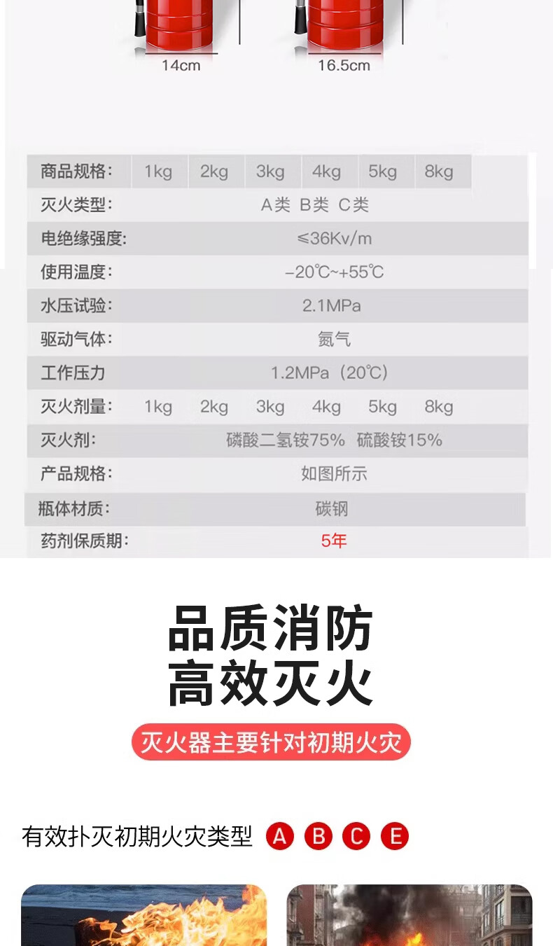 Fire extinguisher 4kg dry powder portable type for shop use, home use and vehicle use 1/2/3/4/5/8kg fire extinguisher equipment New national standard 5kg 2 pieces + 1 fire extinguisher box 25 years 6~