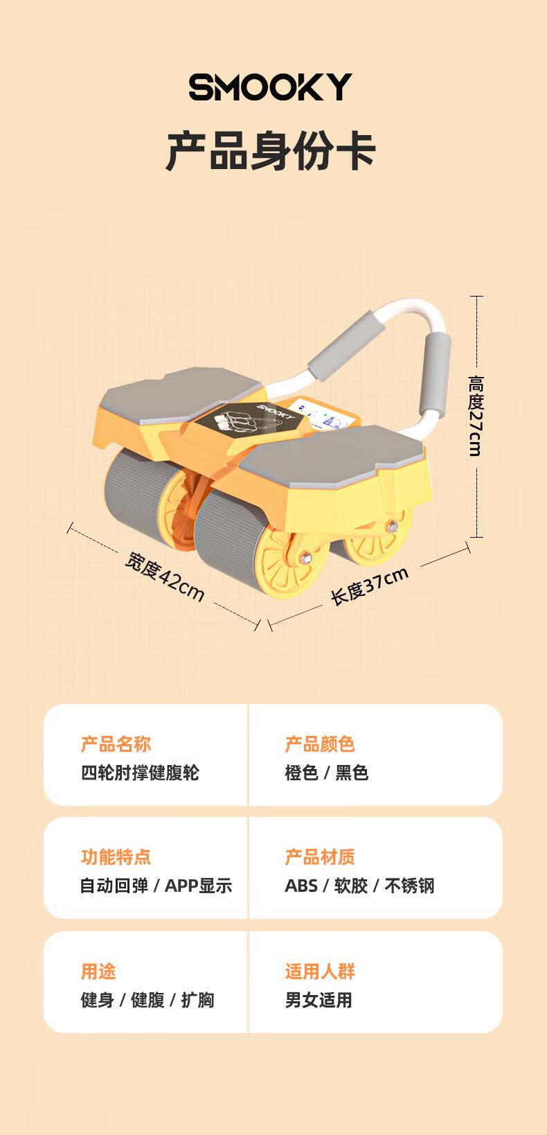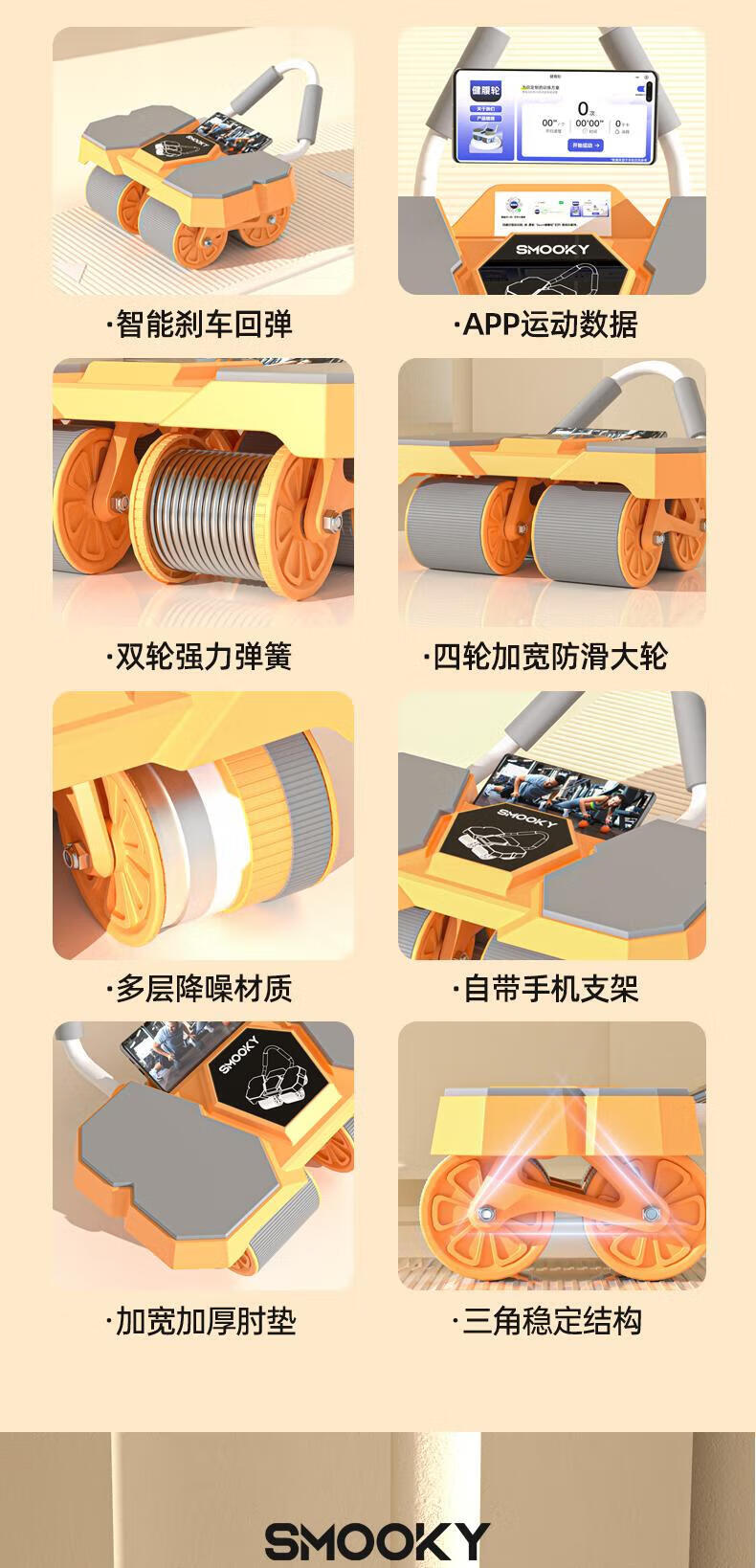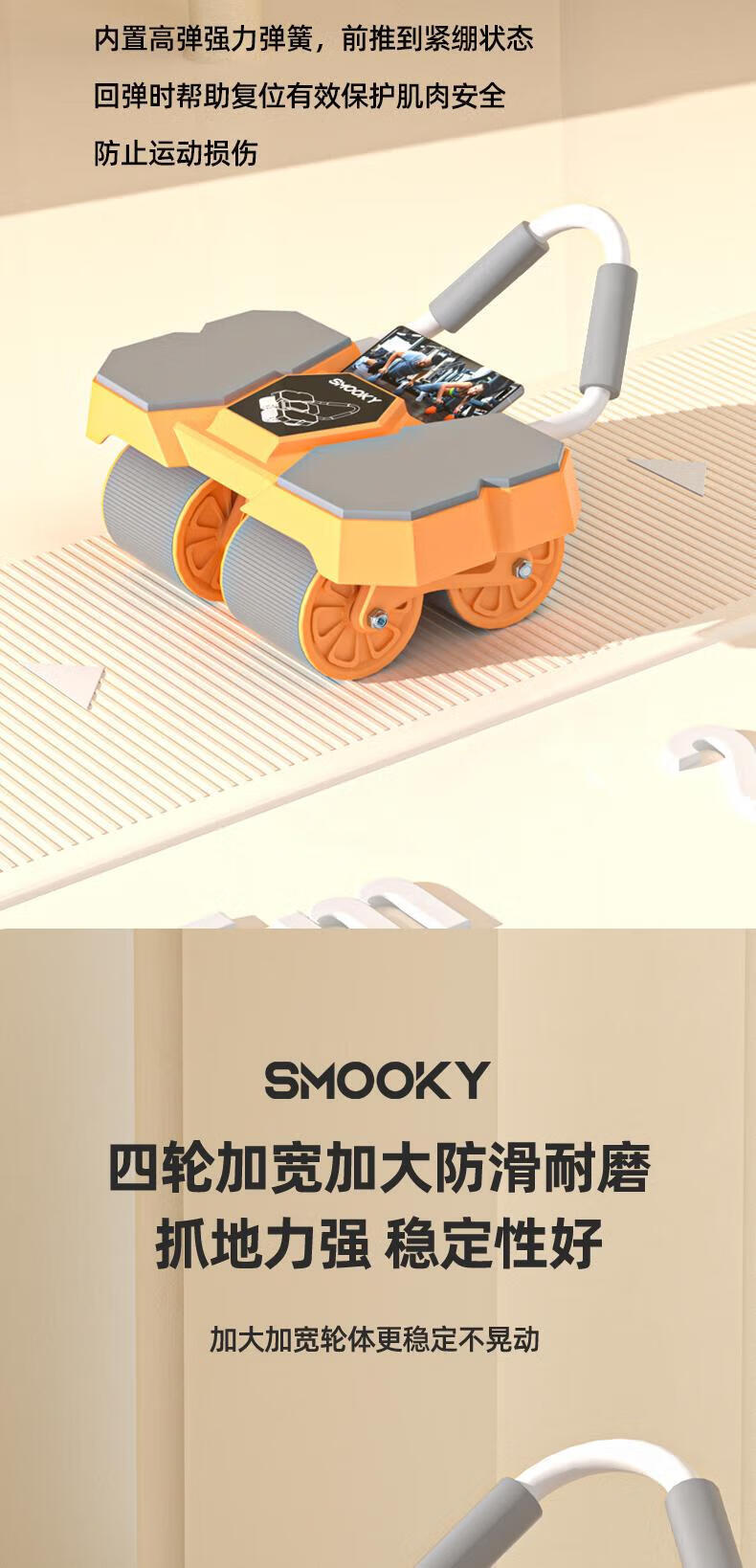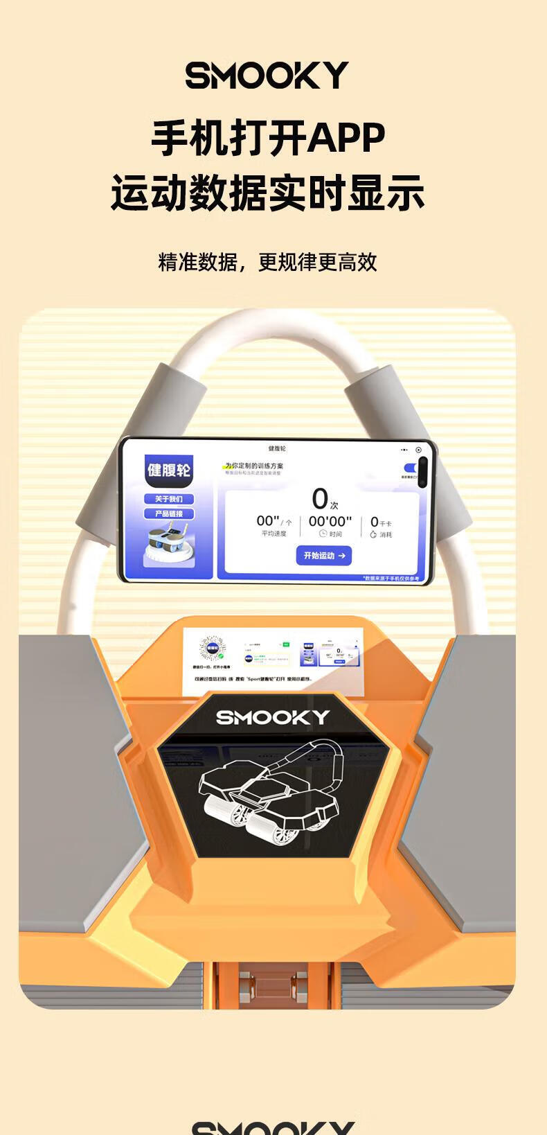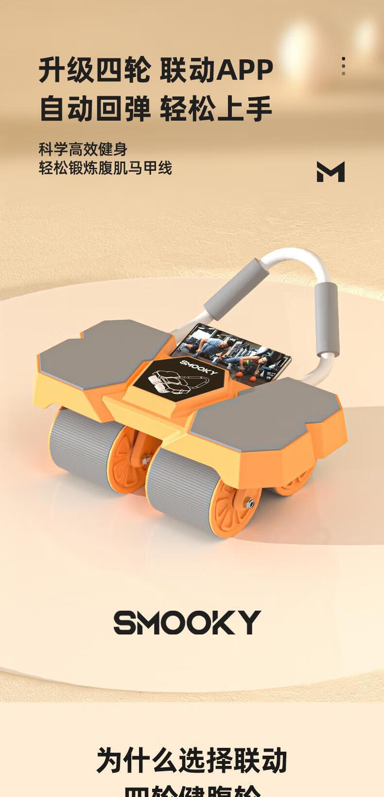 SMOOKY's new four-wheel AI intelligent interconnected fitness abdominal wheel automatically rebounds for novice home fitness and enjoys four-wheel large elbow support Black Warrior + Kneeling Mat