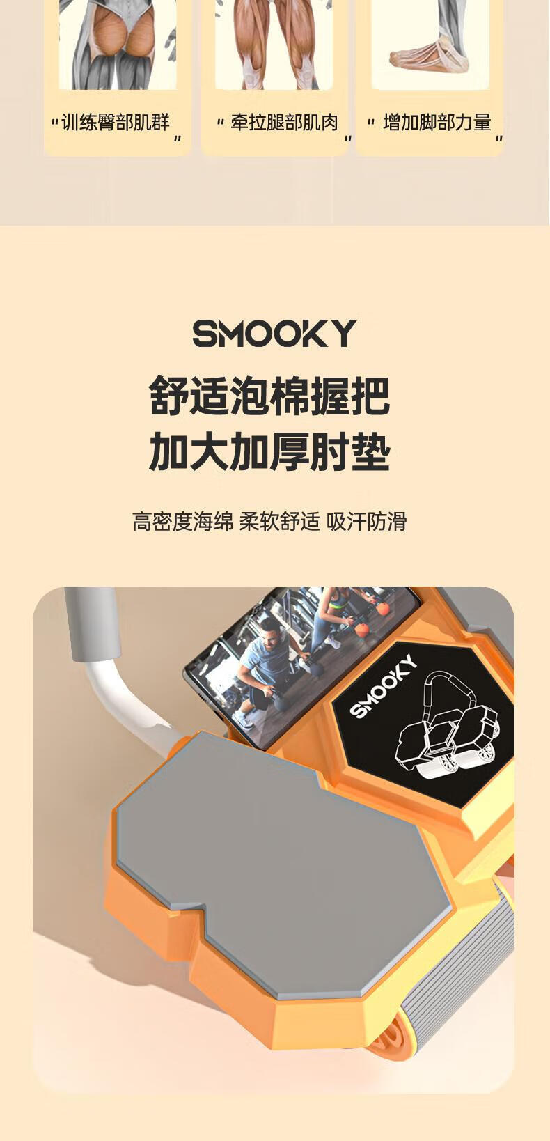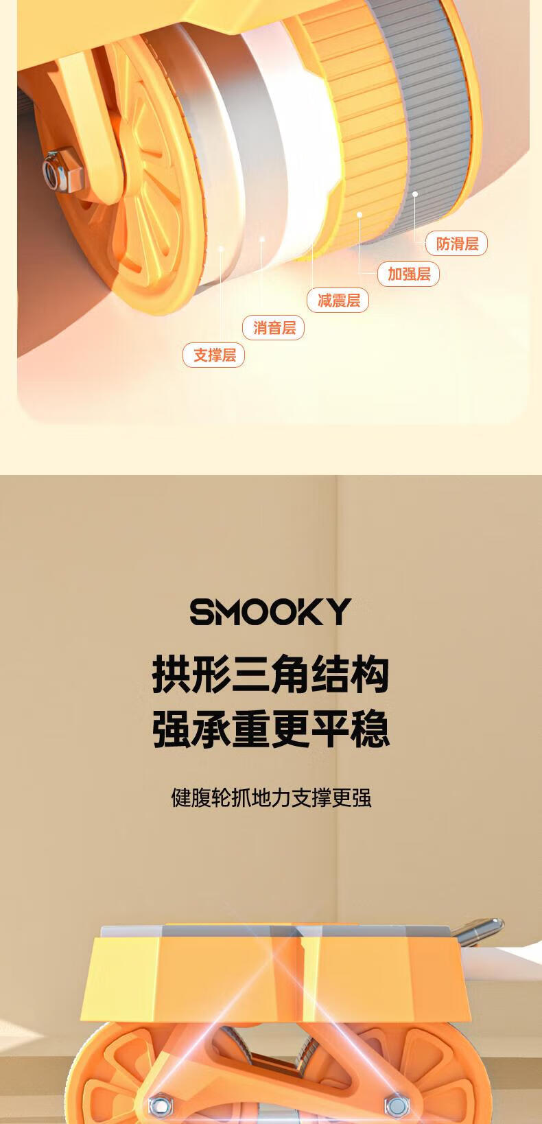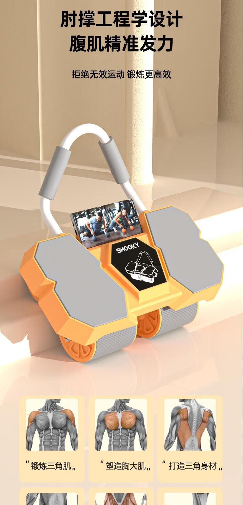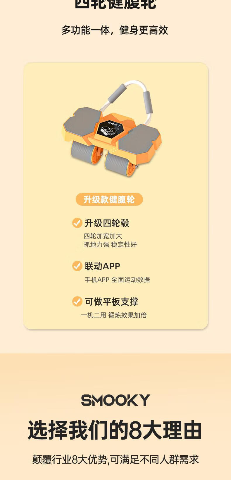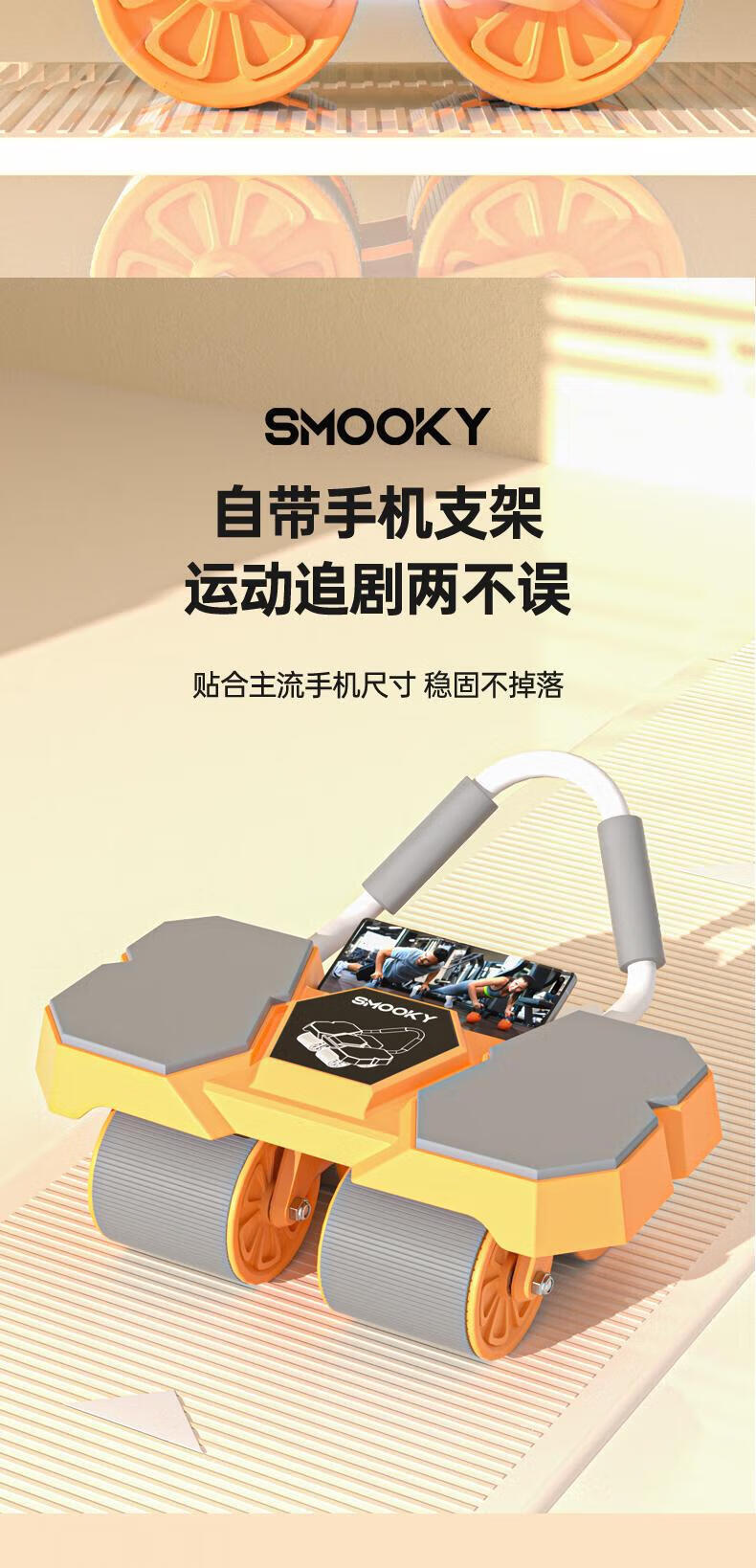 SMOOKY's new four-wheel AI intelligent interconnected fitness abdominal wheel automatically rebounds for novice home fitness and enjoys four-wheel large elbow support Black Warrior + Kneeling Mat