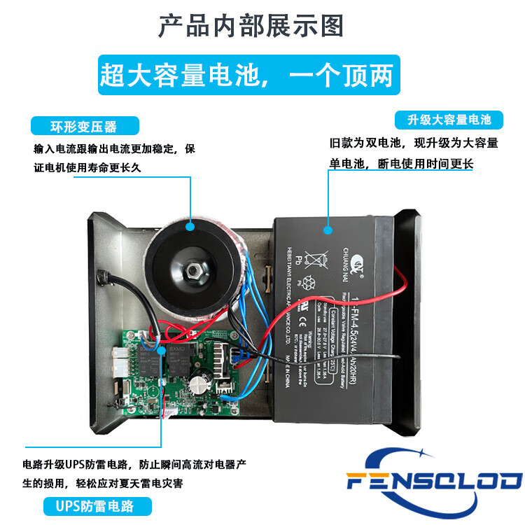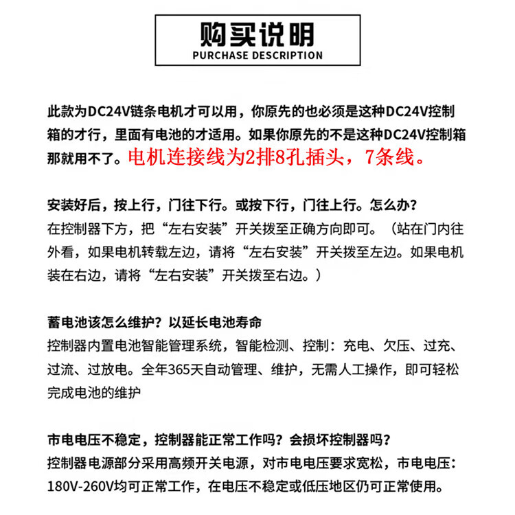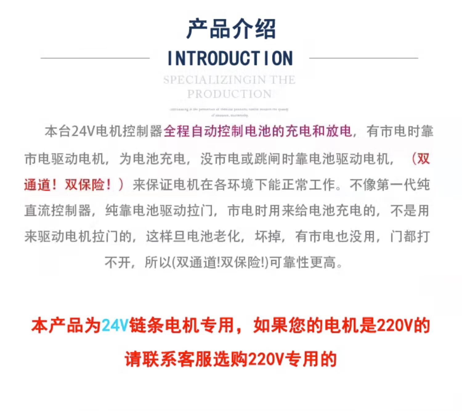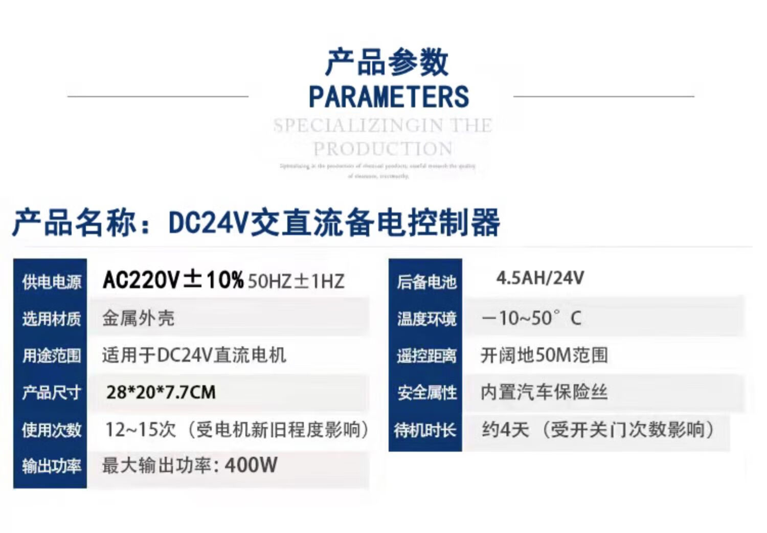 Electric rolling shutter door machine controller DC24V AC and DC reserve power supply rolling shutter door control box emergency power outage treasure DC24V with battery + 2 433 remote controls