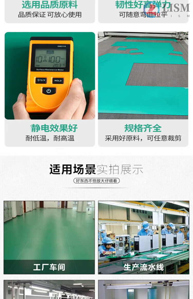 Workbench table mat green rubber mat electrostatic green leather table mat leather mat floor mat insulating mat rubber mat protection matt green black 0.2m*0.2m*2mm