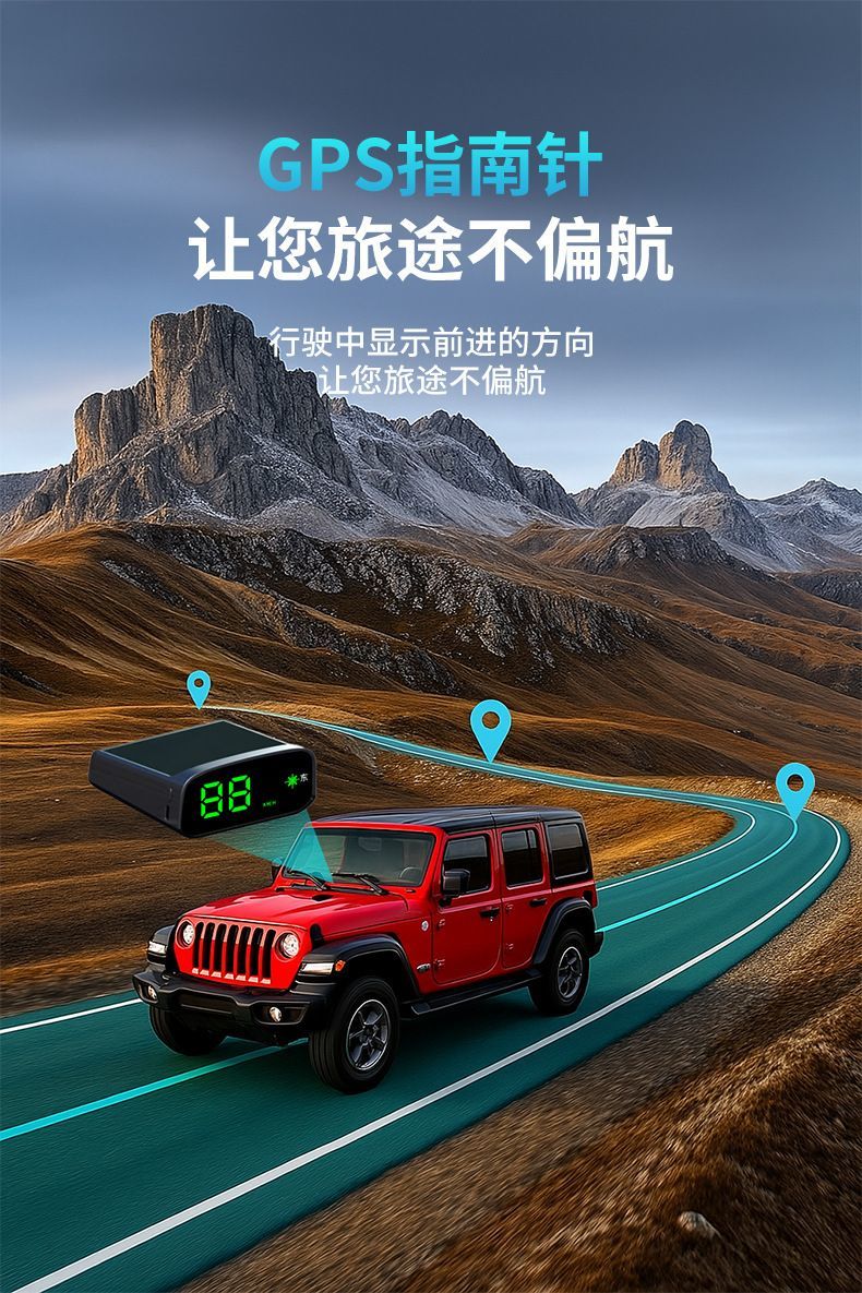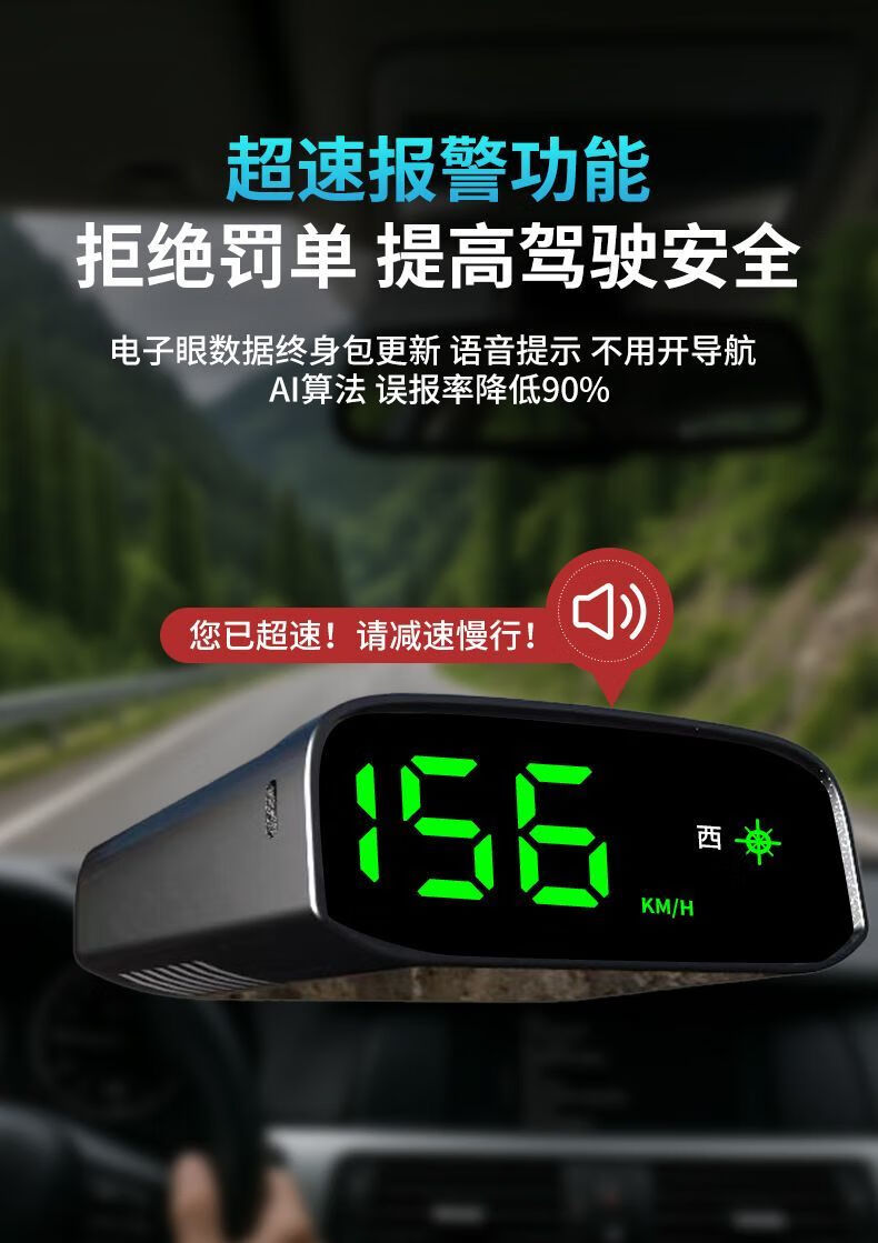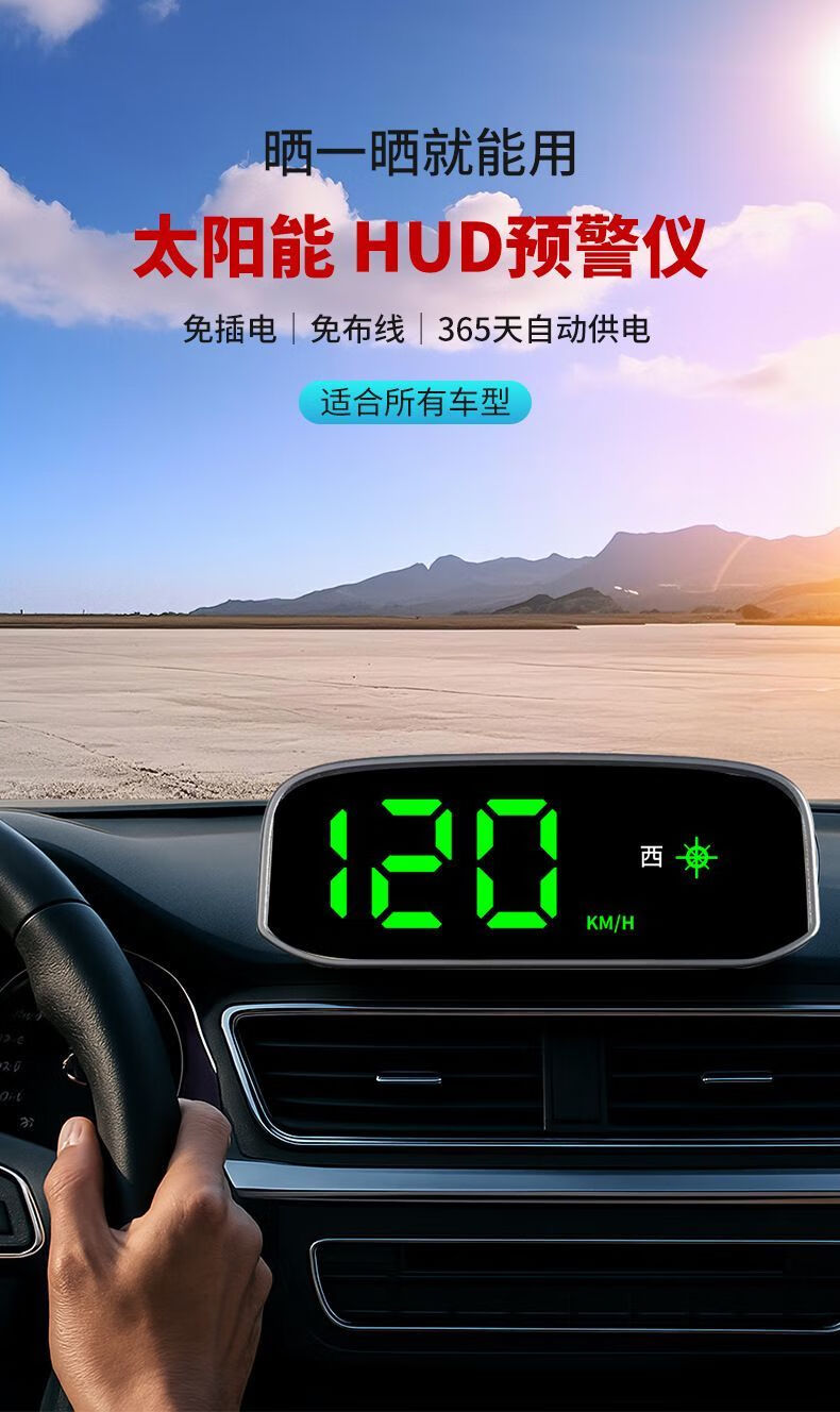 Solar-powered wireless electronic dog new car HUD head-up display GPS high-definition Beidou radar safety warning line charging point