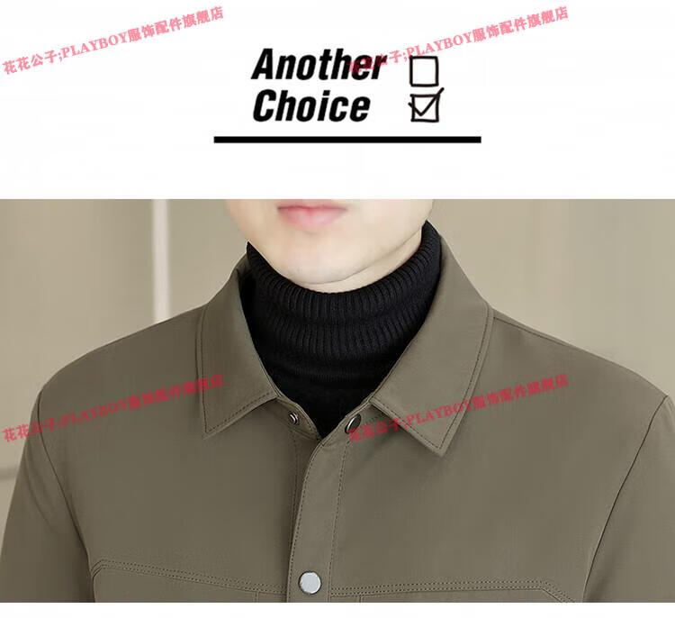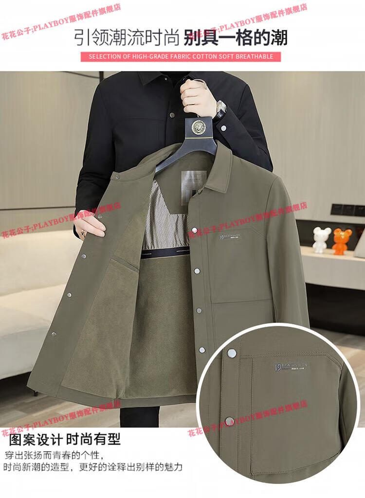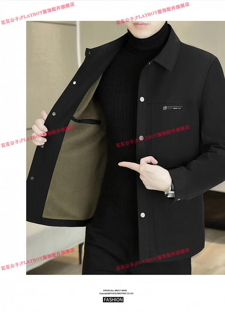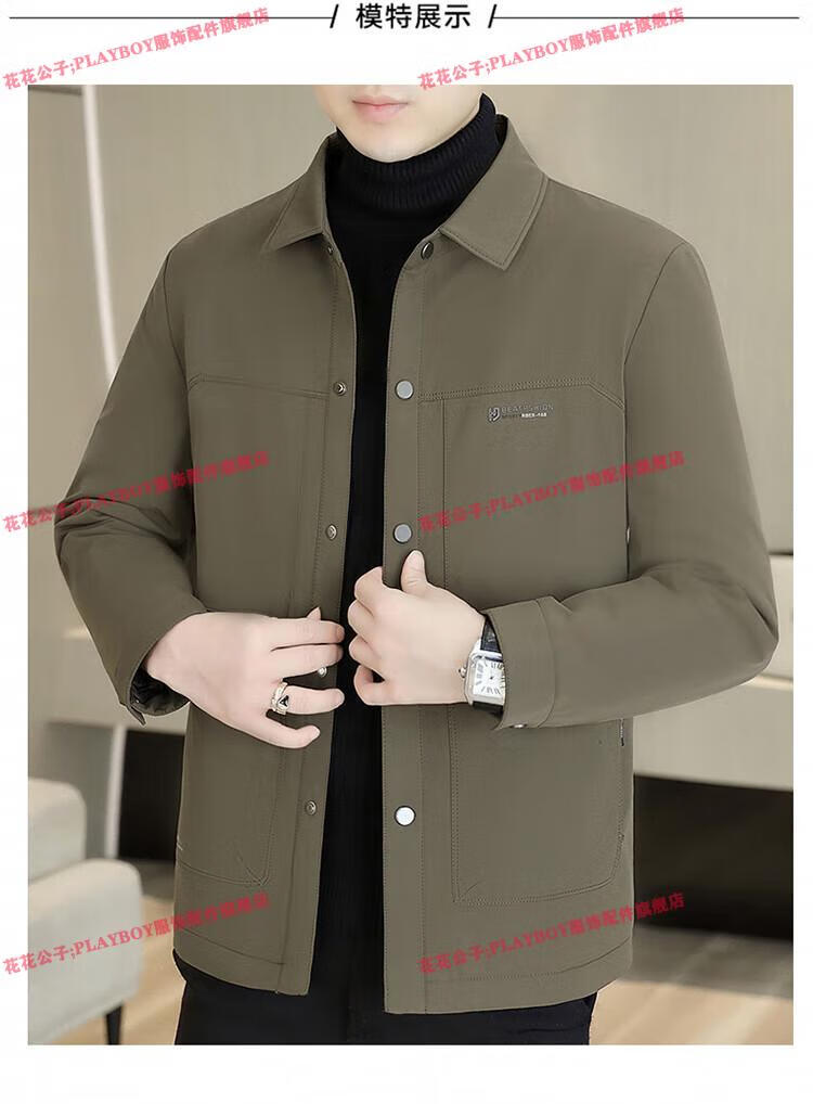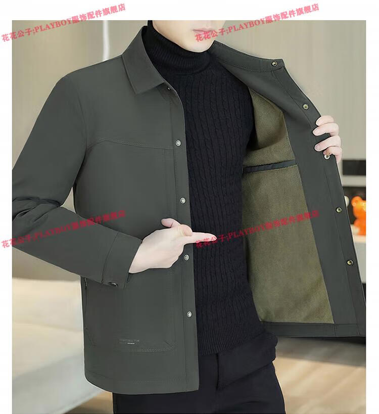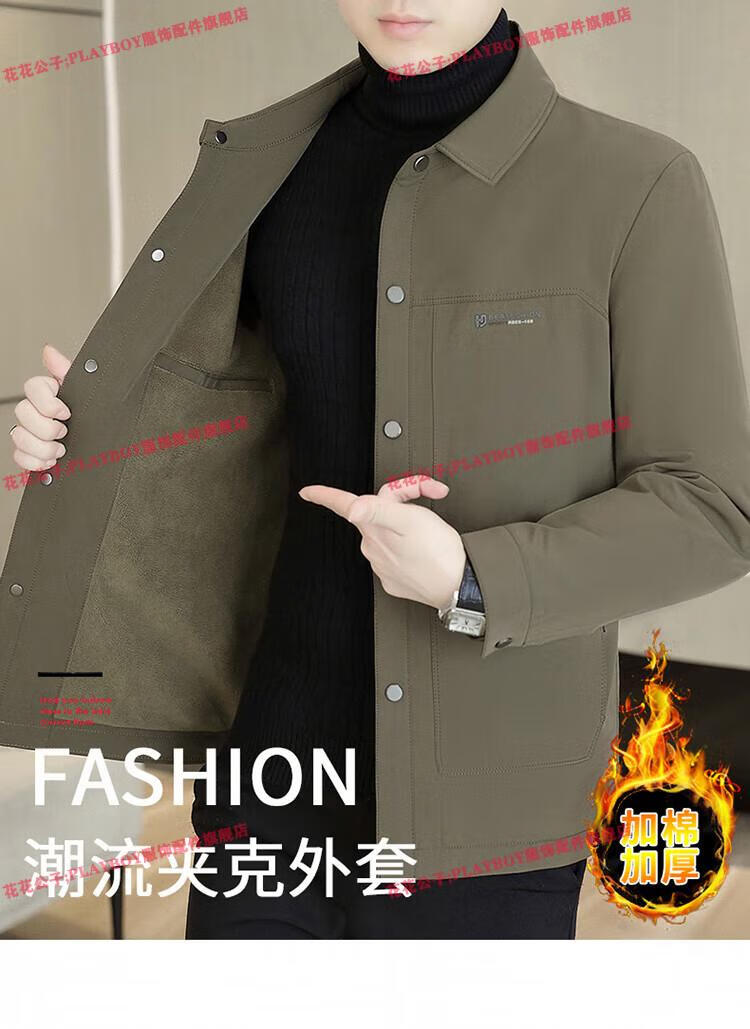 Playboy Autumn and Winter Jackets Men's 2025 New Velvet Thickened Lapel Jacket Men's Casual High-end Warm and Windproof Men's Khaki Warm and Velvet XL (130-145 catties)