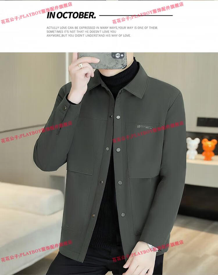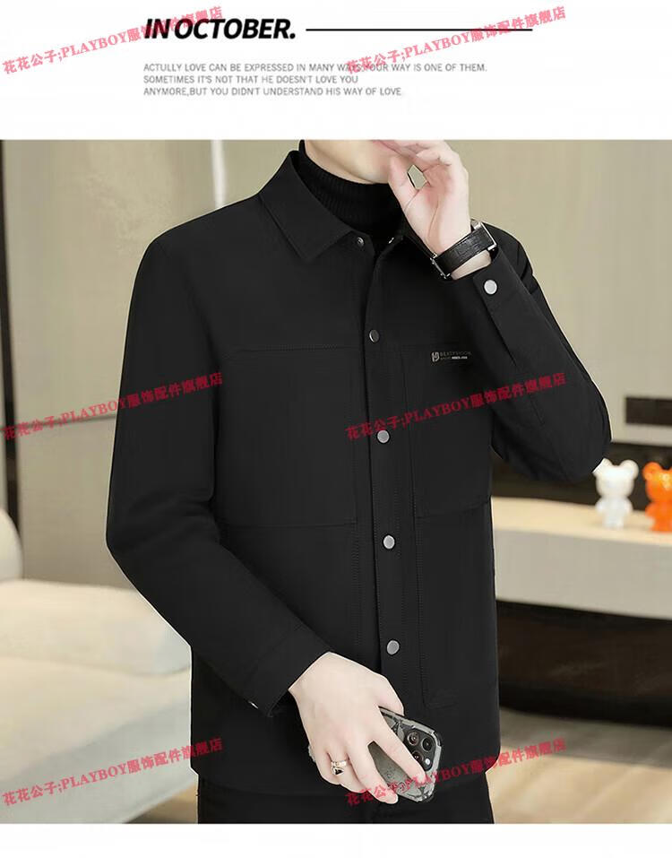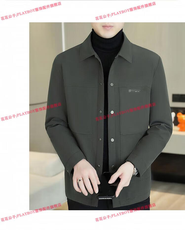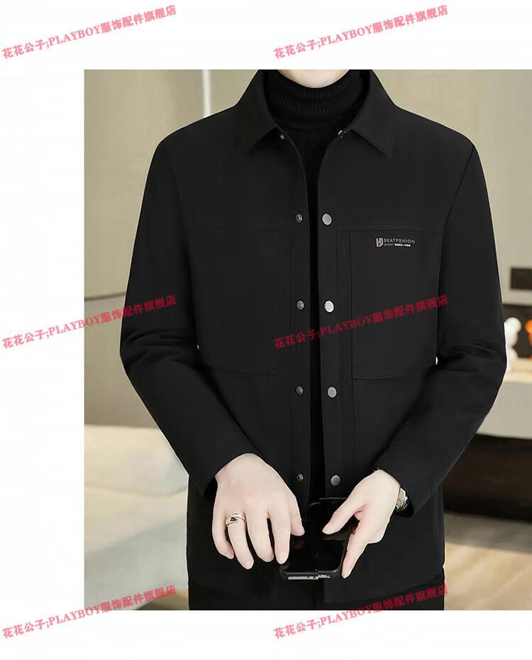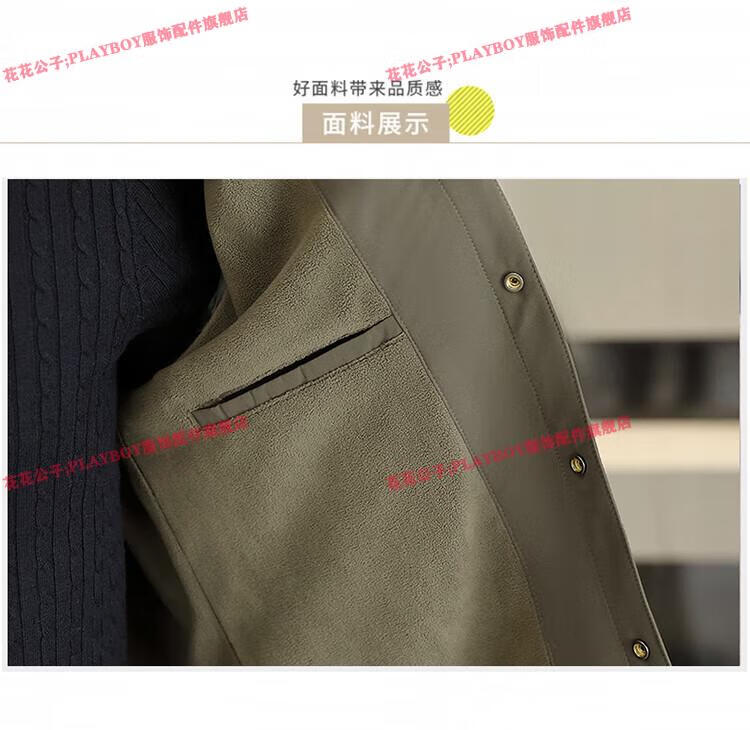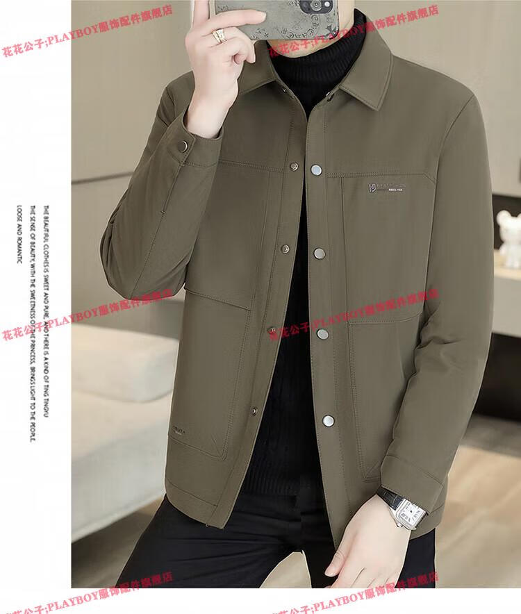 Playboy Autumn and Winter Jackets Men's 2025 New Velvet Thickened Lapel Jacket Men's Casual High-end Warm and Windproof Men's Khaki Warm and Velvet XL (130-145 catties)