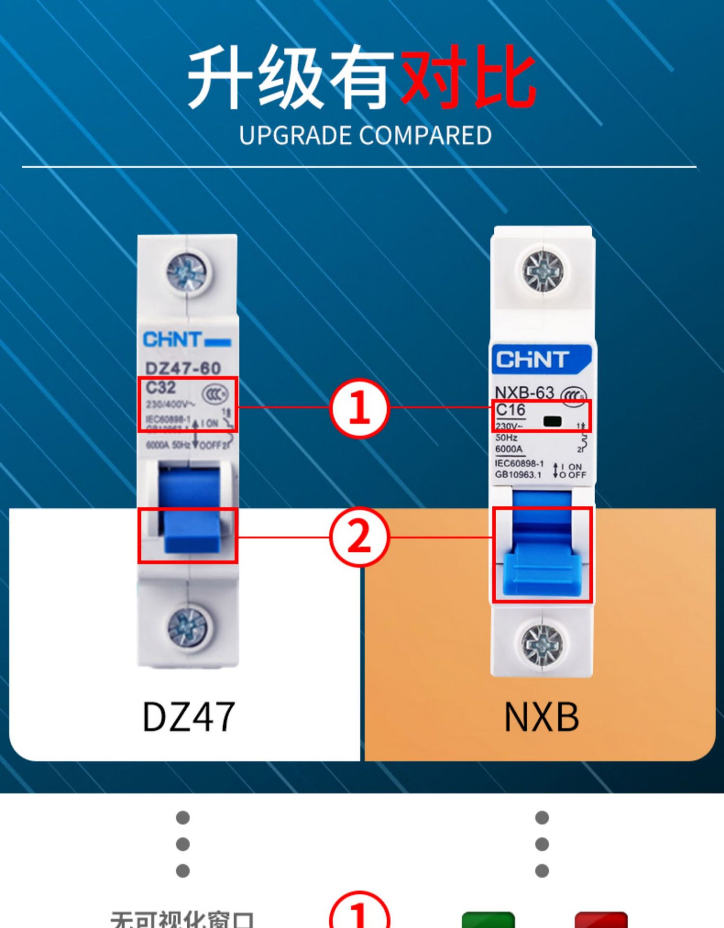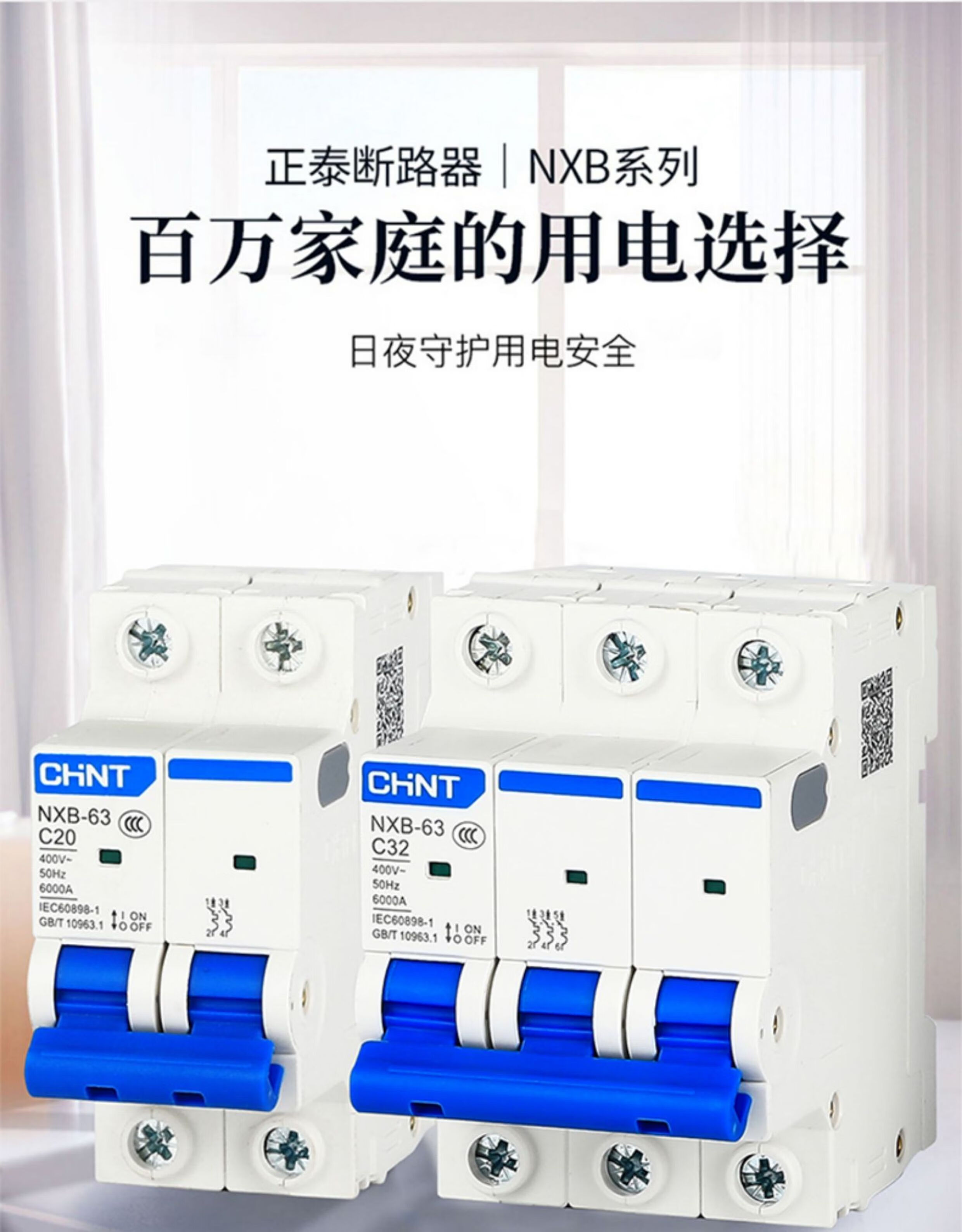 CHNTM Chint C type small air switch NXB63 circuit breaker 2P household type DZ47 air switch main switch 32a63a16a air switch-2P-C type 2A