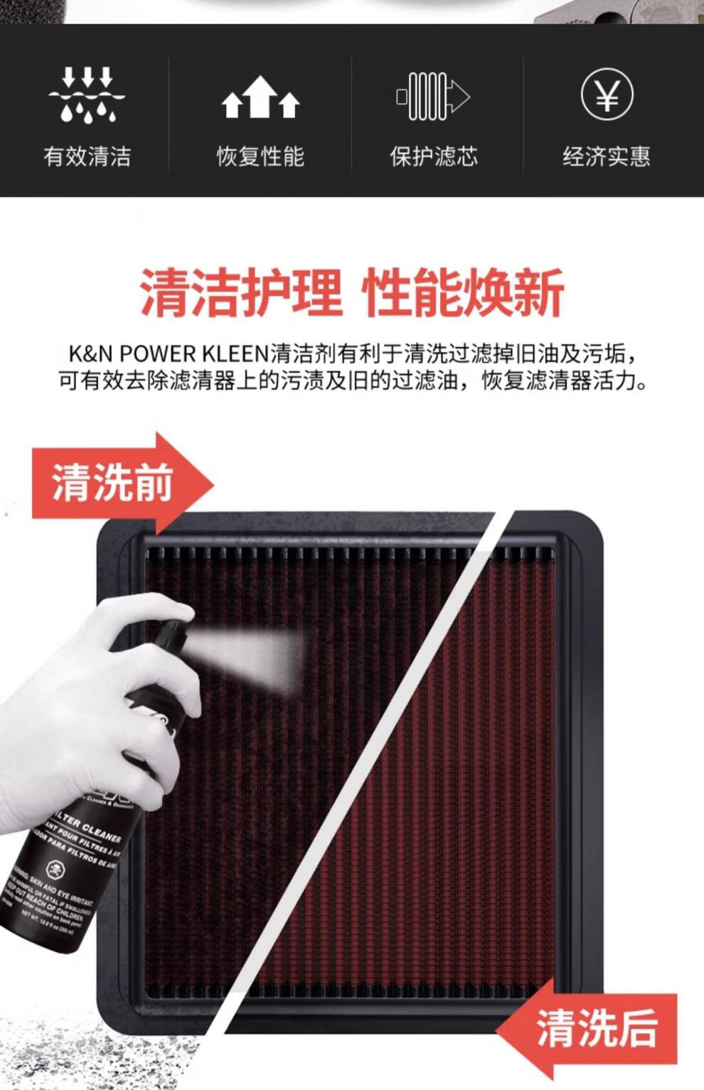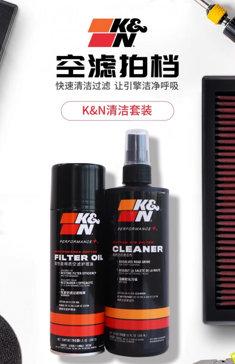 K&NKN air filter large bottle cleaning agent care oil set CN car air filter grid core cleaning special set 99-5000CN (care oil 184g + cleaning agent 355m