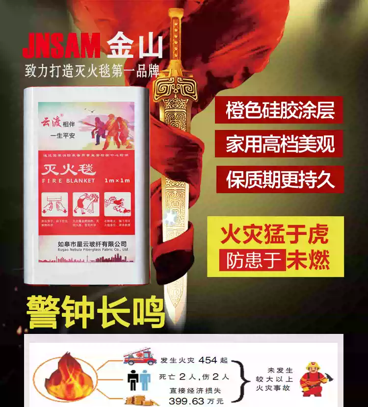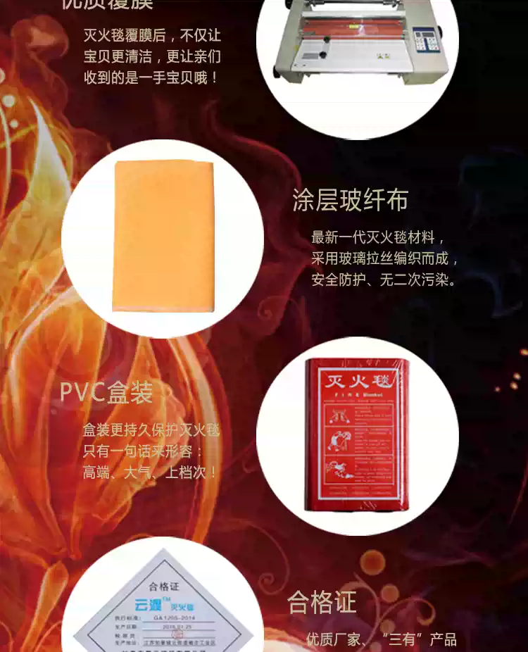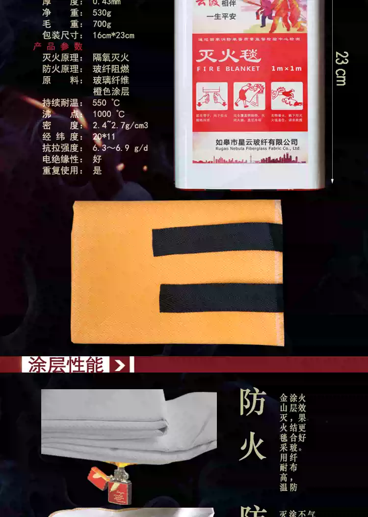 Orange silicone coated fireproof boxed fire extinguishing blanket 1m 1.2m home kitchen fire certified fiberglass orange boxed coating 1m*1m