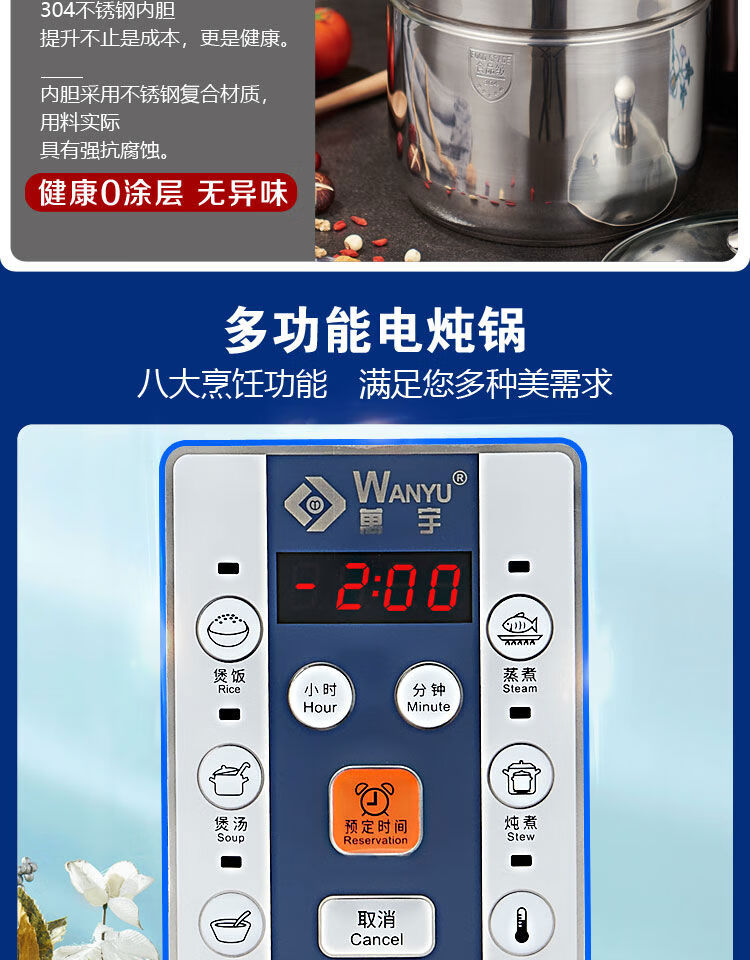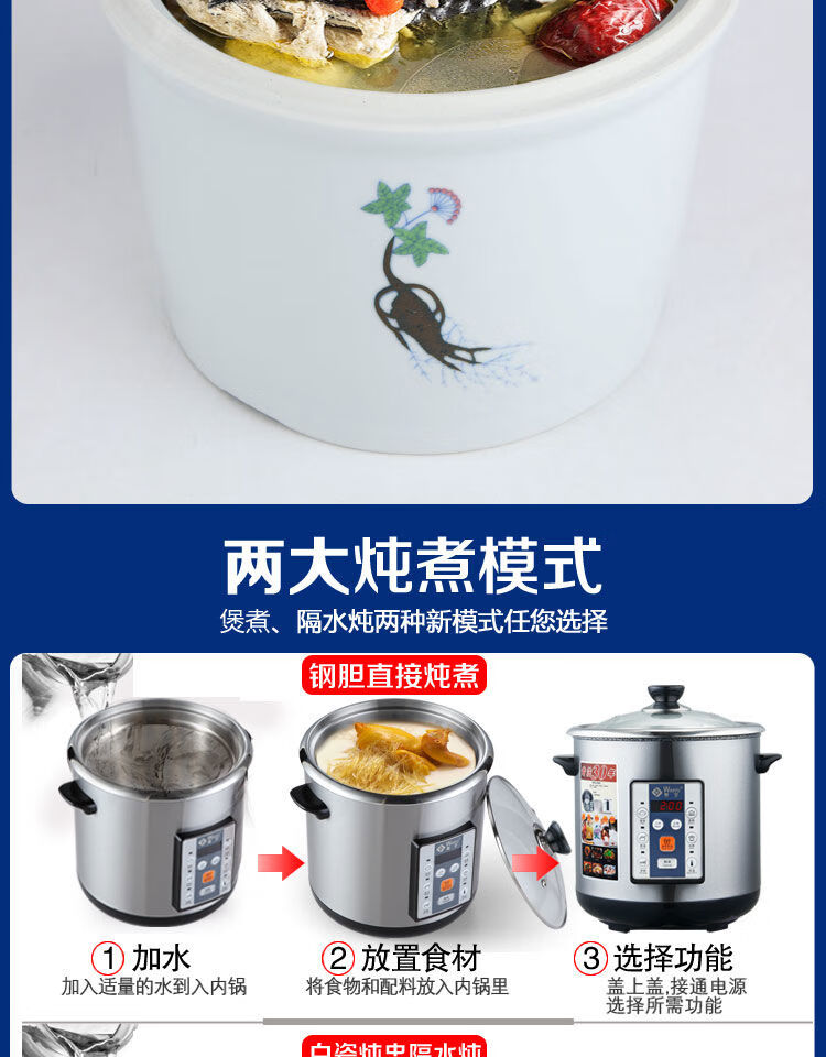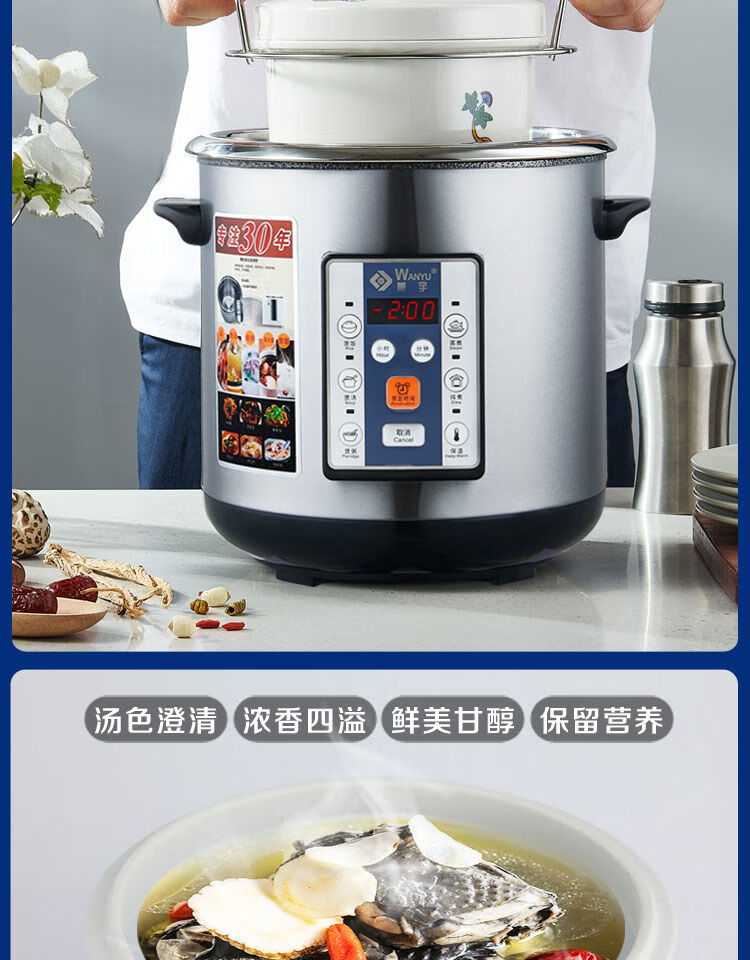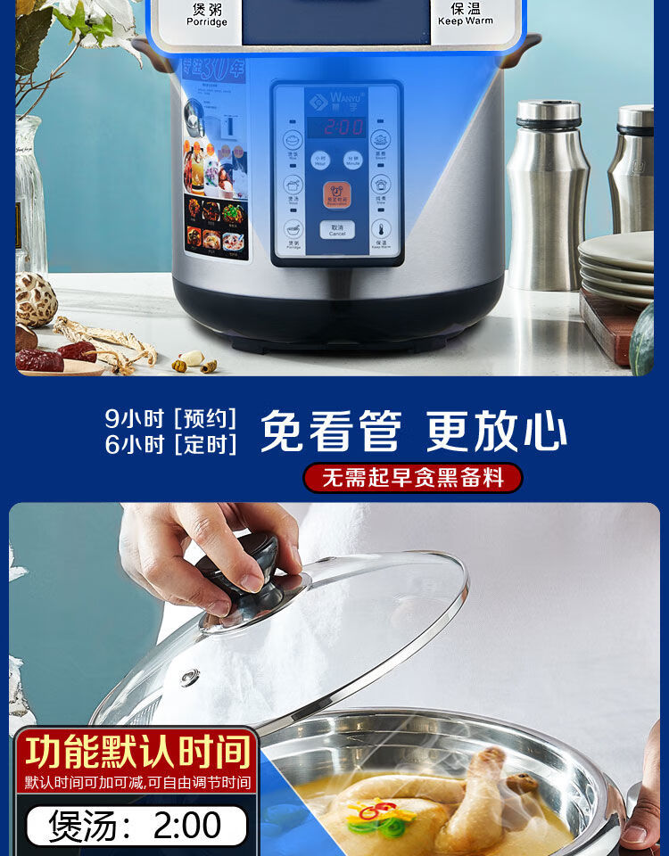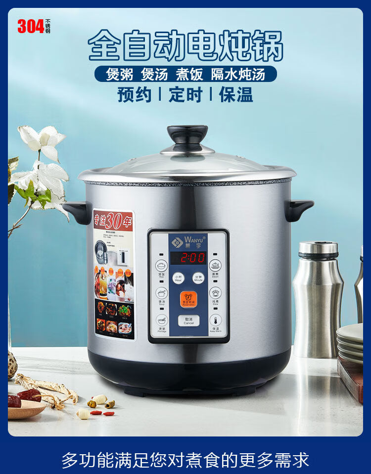 Yuyang 304 stainless steel electric stew pot fully automatic soup stew pot water-proof stew large capacity commercial porridge artifact 1ml Hong Kong version 6 points 5L suitable for 3-6 people with 2 points 5L stew pot