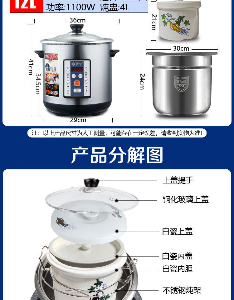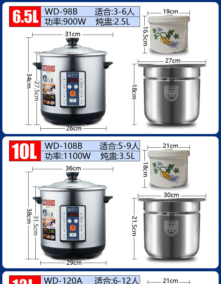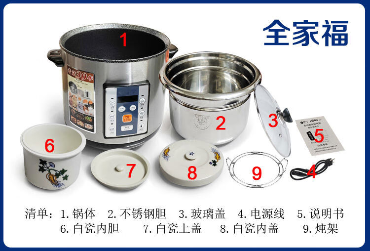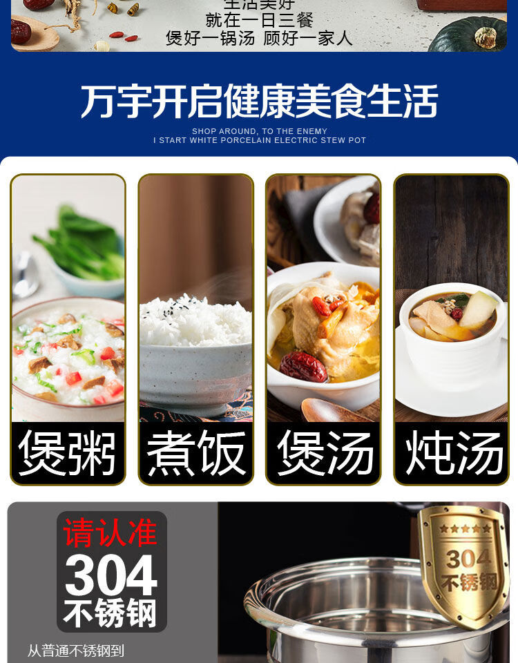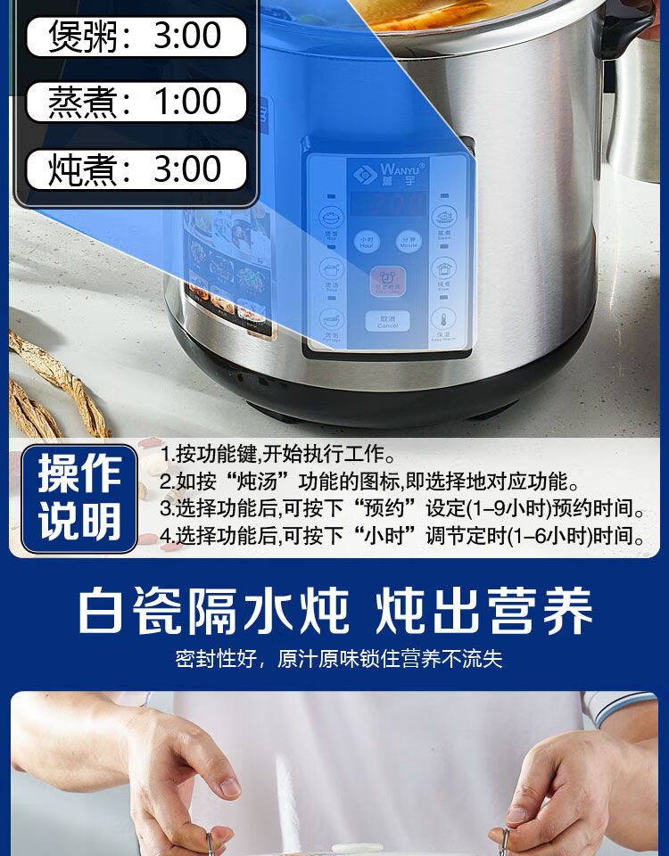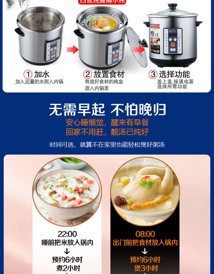 Yuyang 304 stainless steel electric stew pot fully automatic soup stew pot water-proof stew large capacity commercial porridge artifact 1ml Hong Kong version 6 points 5L suitable for 3-6 people with 2 points 5L stew pot