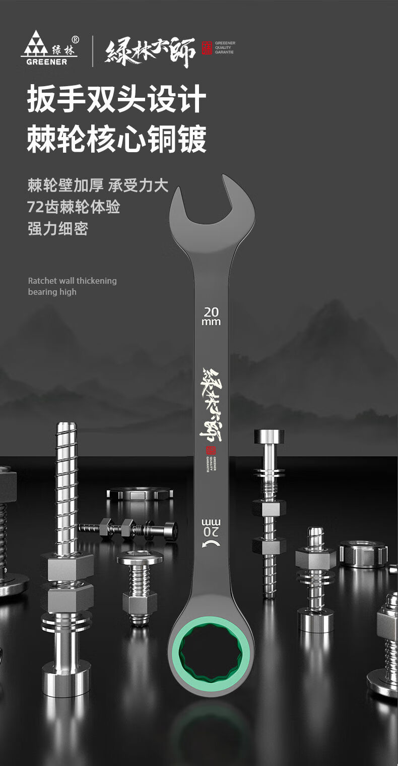 Green forest ratchet wrench quick plum opening 19 automatic two-way dual-purpose plum opening wrench 17 tool set green ring snake reinforced ratchet 22 pieces set 6-32