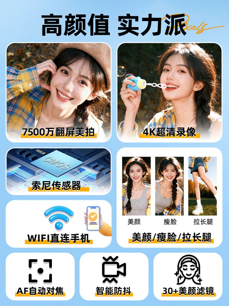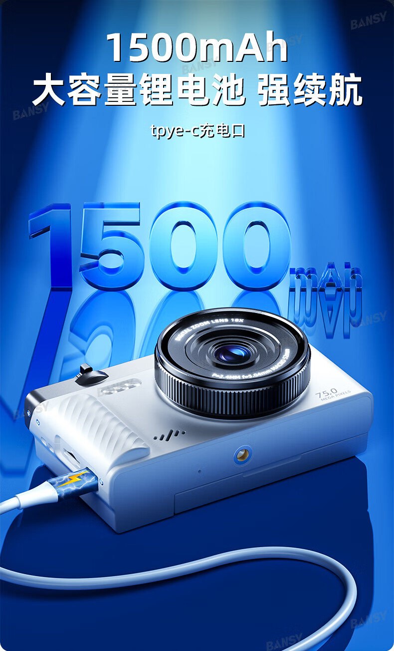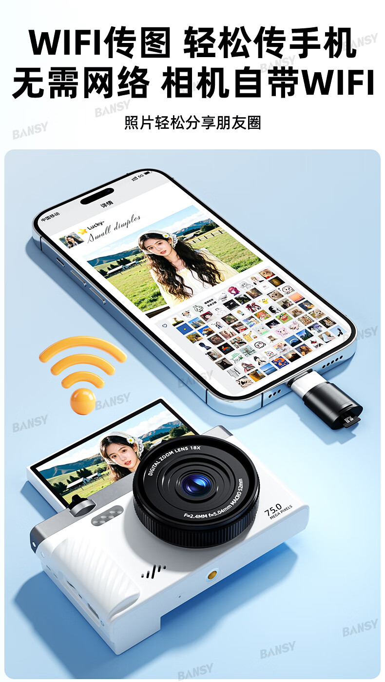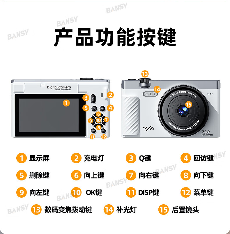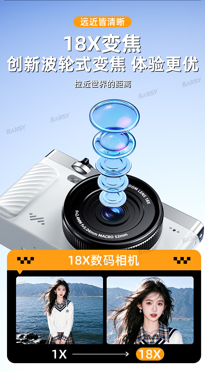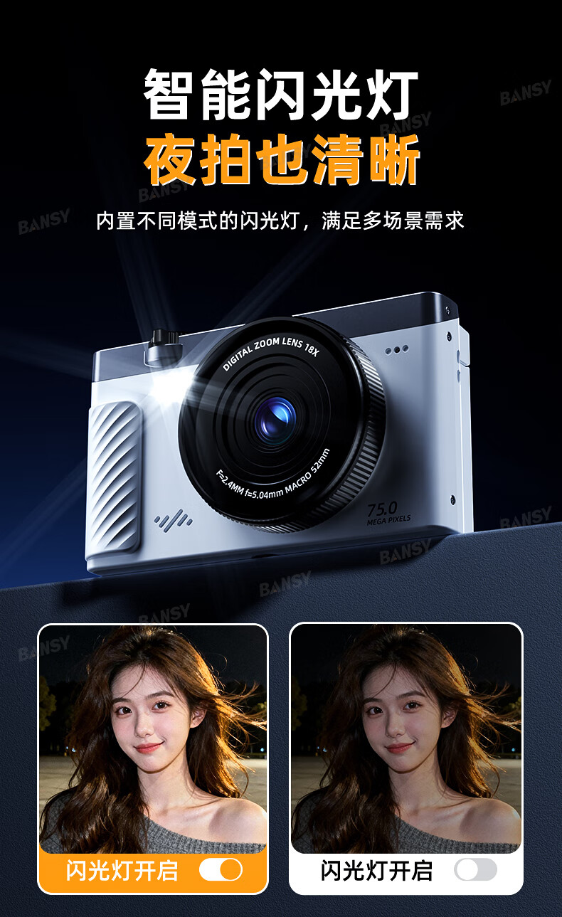 Bansy high-definition mirrorless digital camera ccd flip screen camera vlog campus photography travel special video beauty selfie entry-level students can transfer to mobile phone Valentine's Day gift 3-inch flip screen wide angle + macro lens + beauty and face slimming 64G memory card can store about 6000 photos