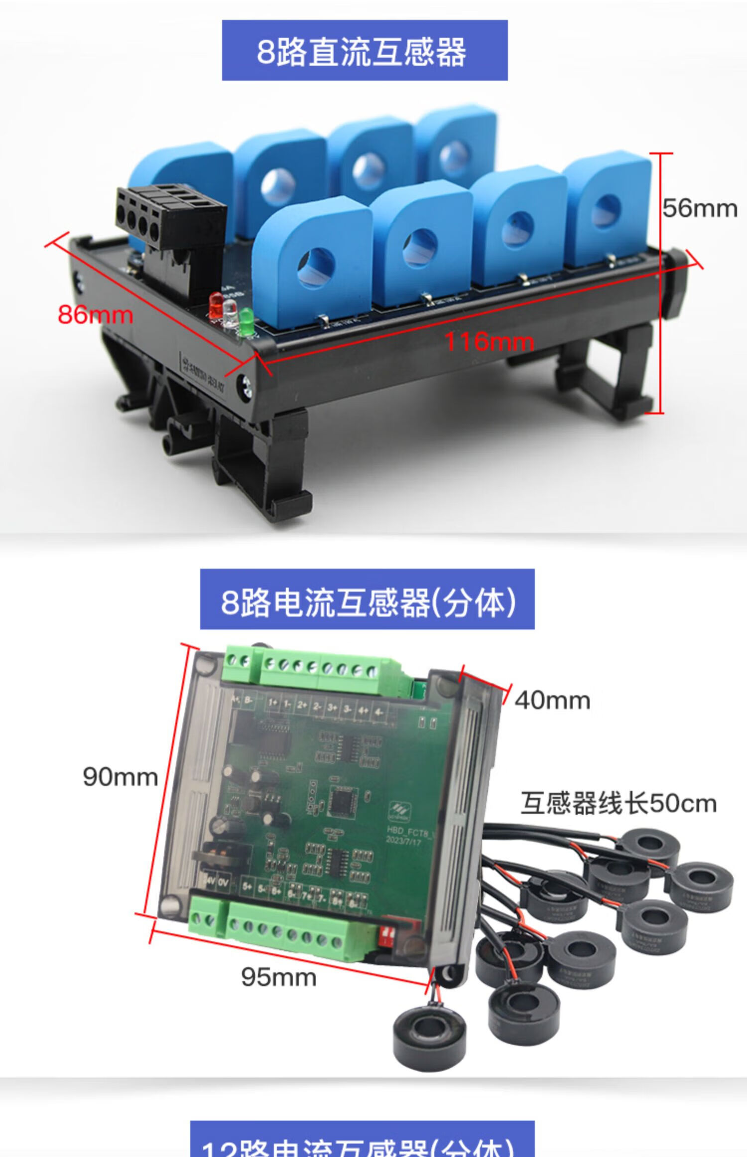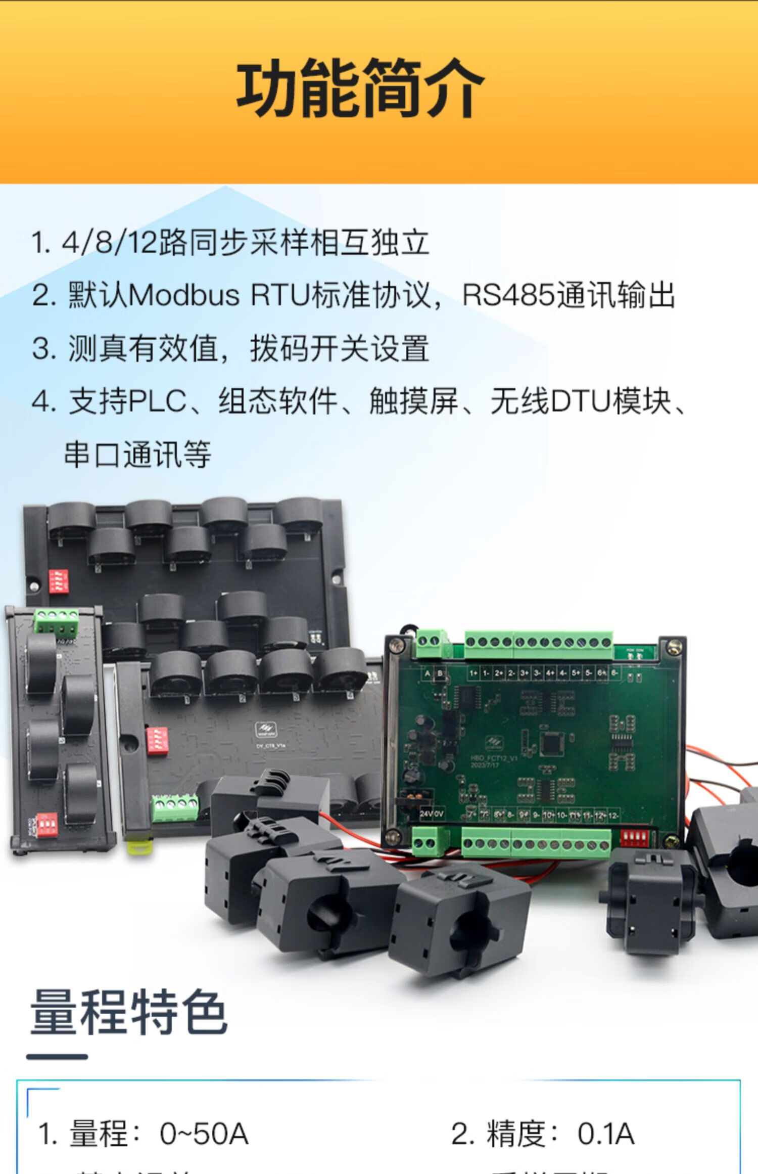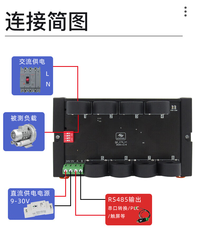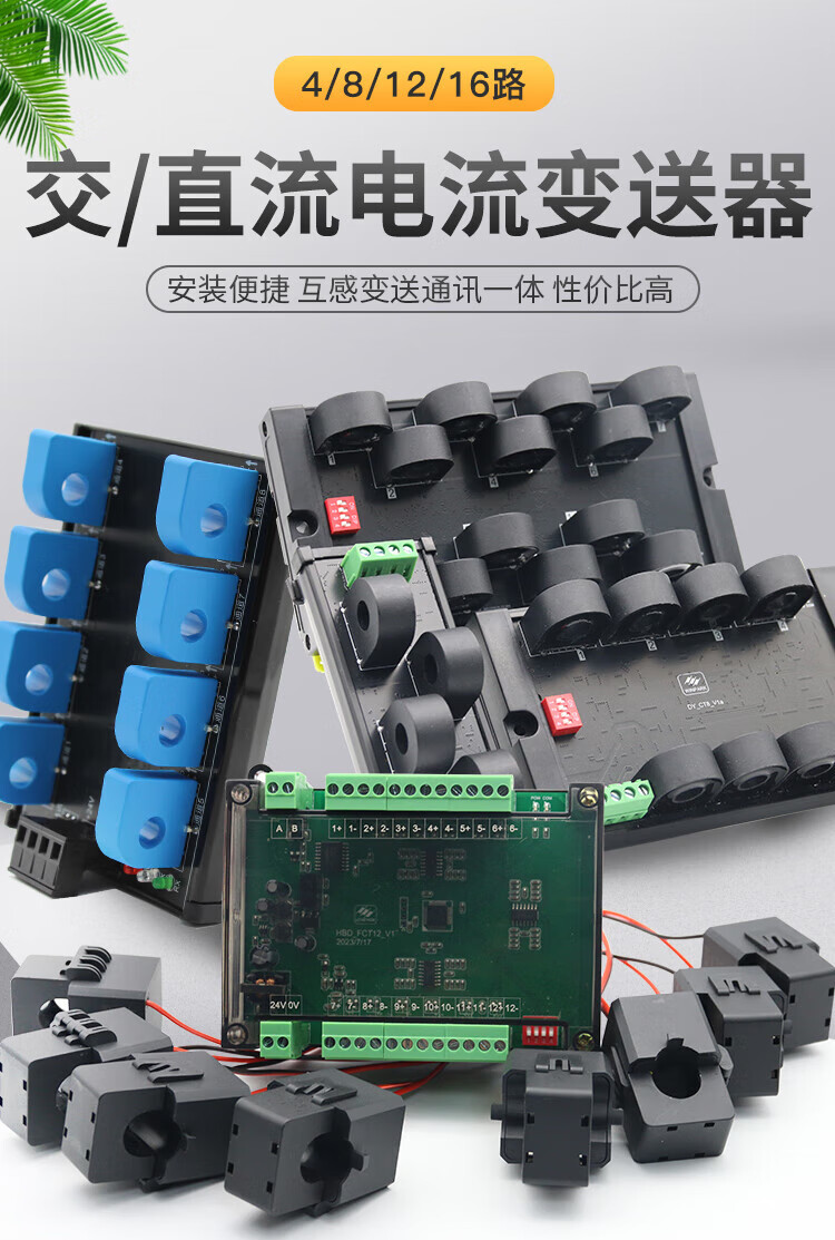 8-channel AC and DC current transmission detection module isolation 485 communication multi-channel open current collection transformer 3-channel AC detection module-50A