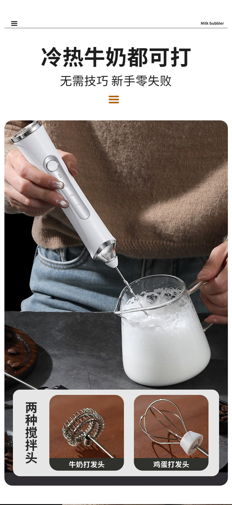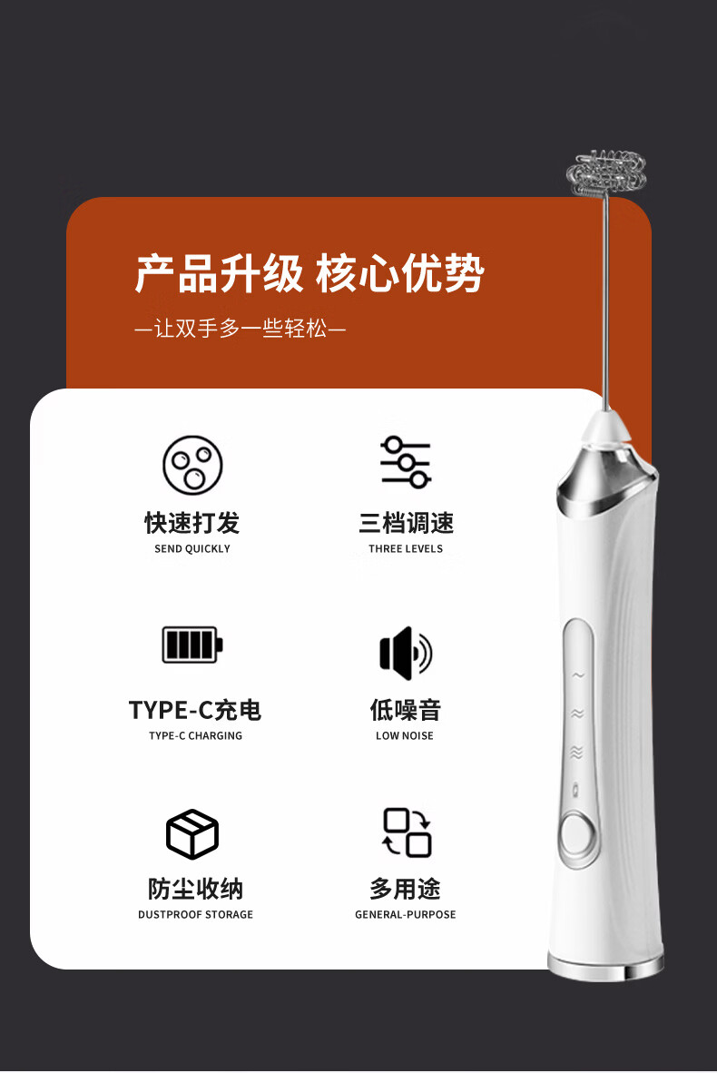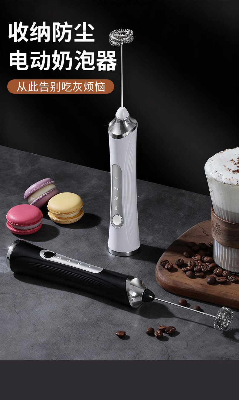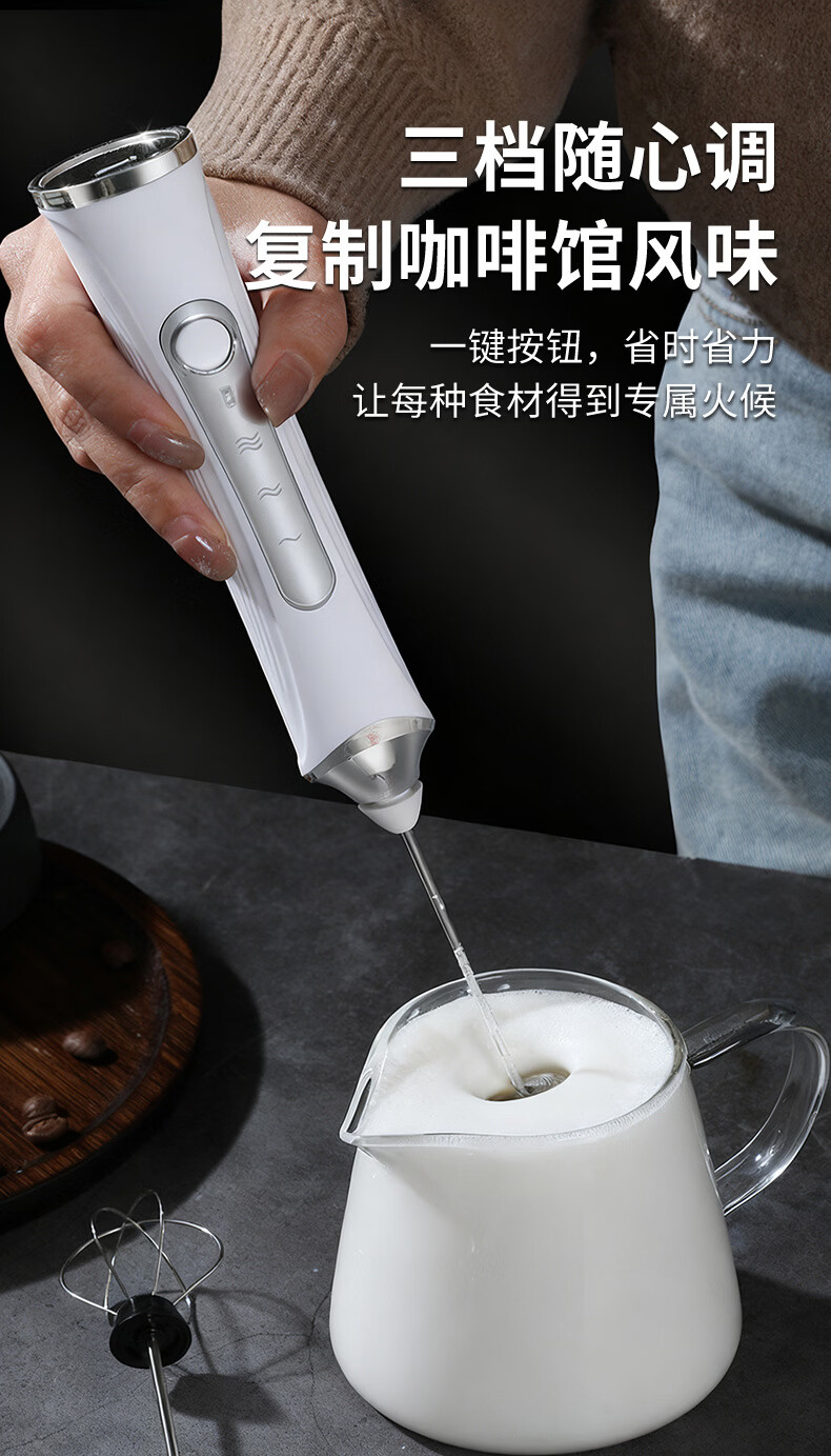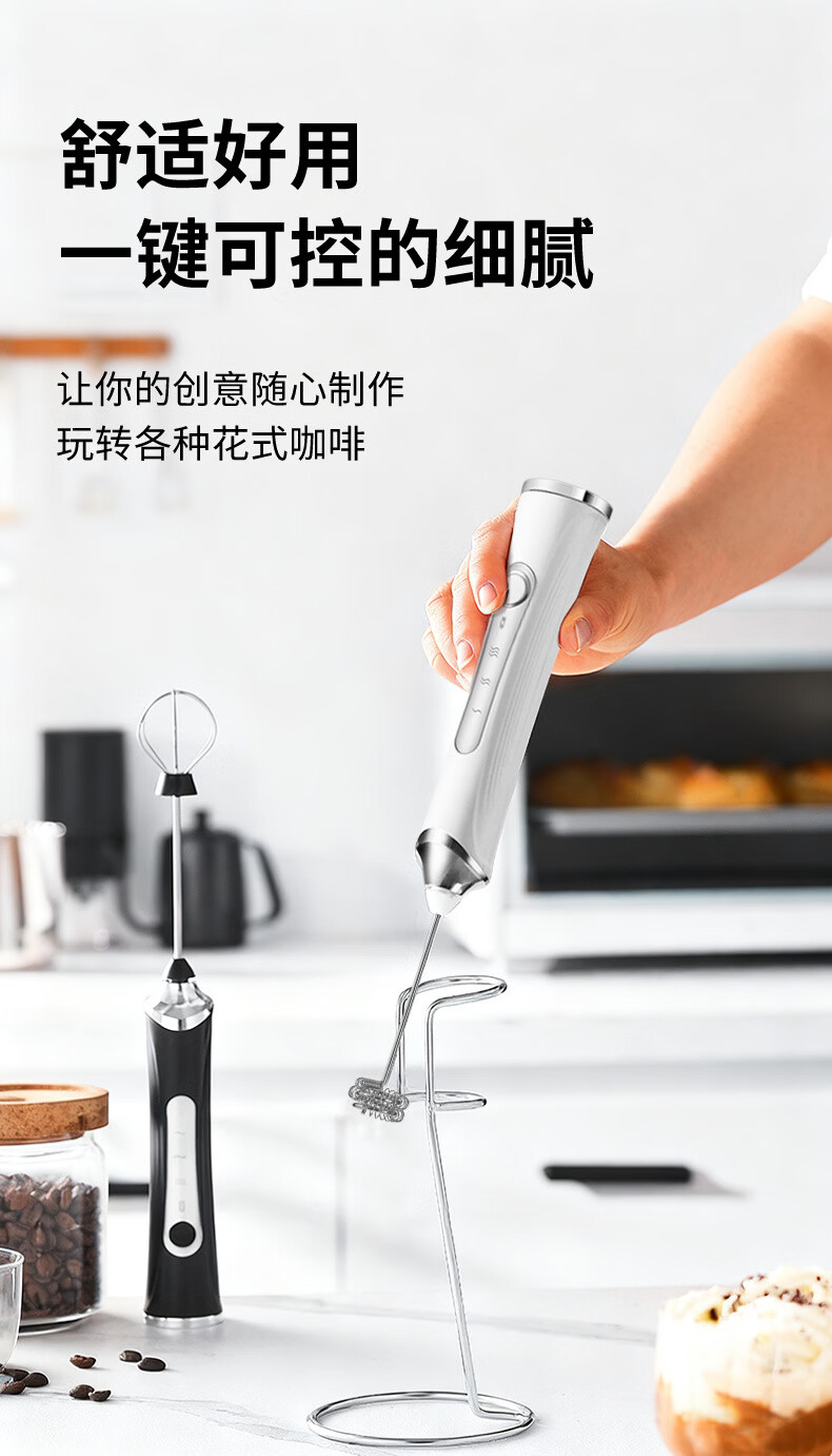 KDISV German coffee frother, electric stir stick, hand-held milk frother, household small milk cap, milk skin, portable, refreshing white + storage box, 9 seconds for one cup++, long battery life