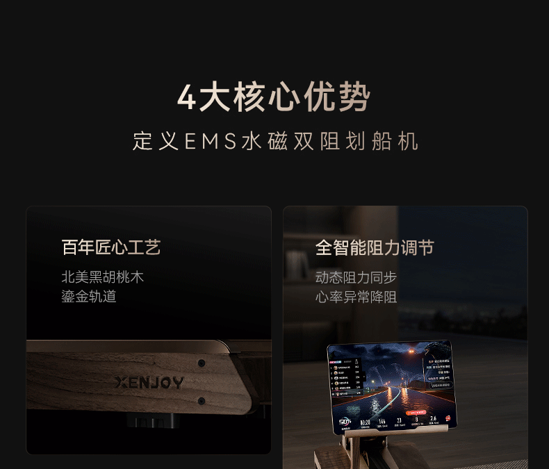 Jueying XR5 commercial grade rowing machine hydromagnetic dual resistance home aerobic paddling fitness equipment XJ-R01B1 black walnut version