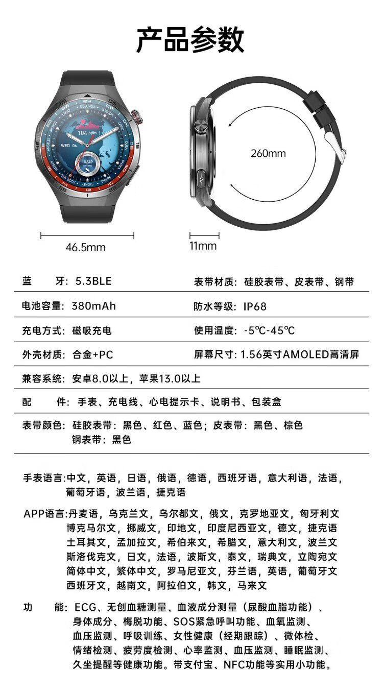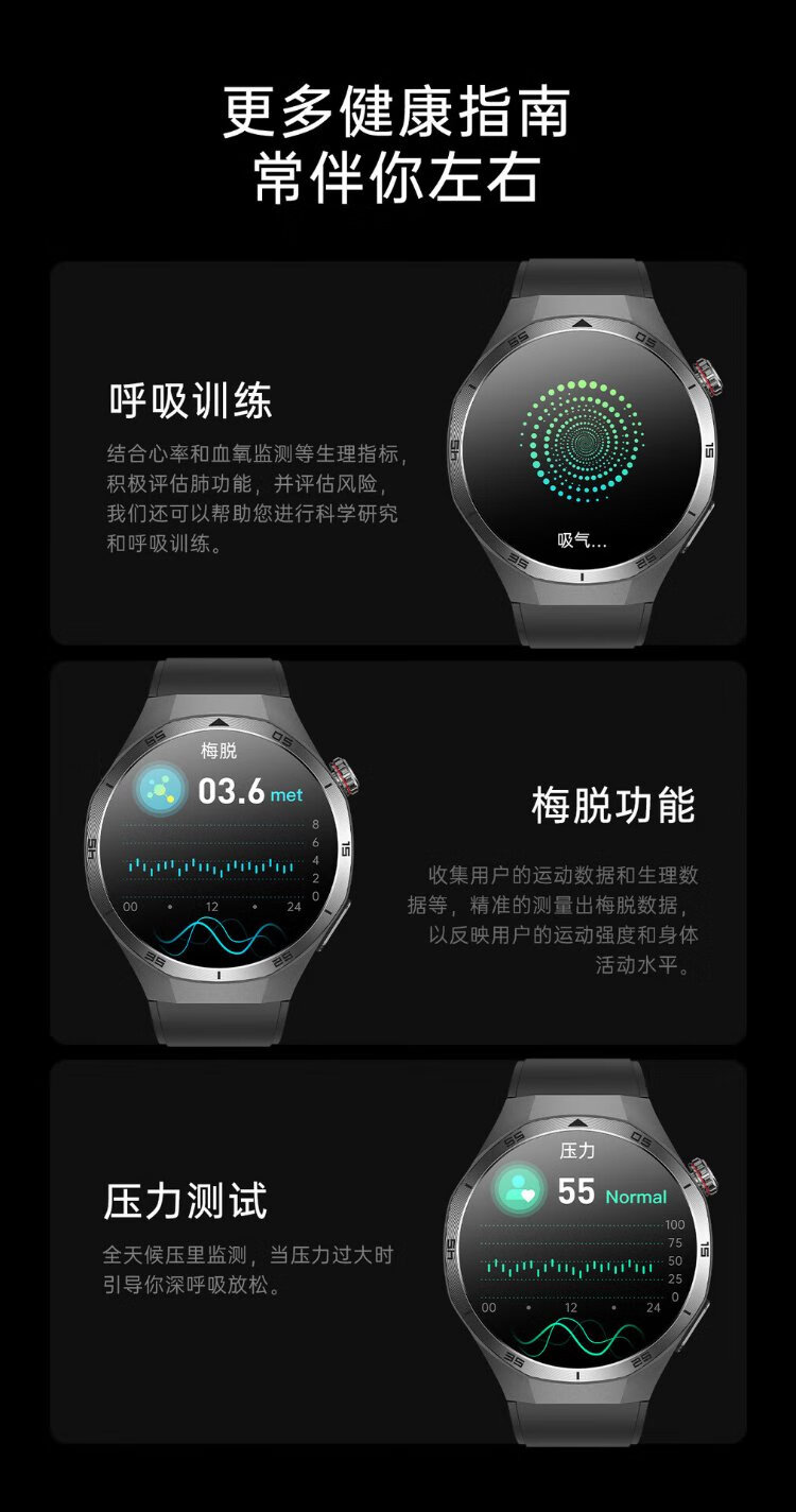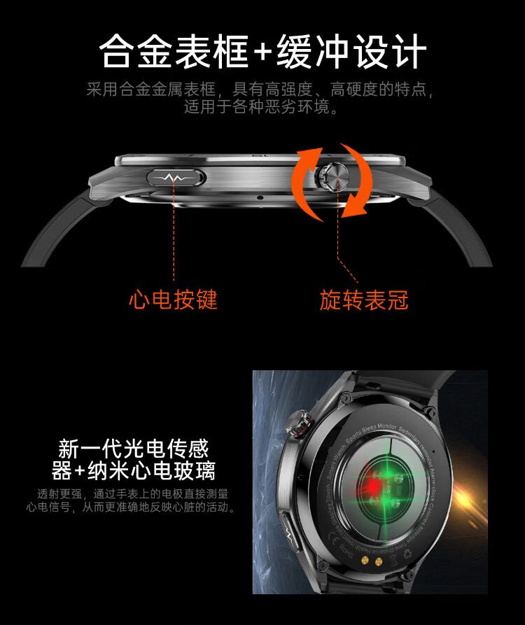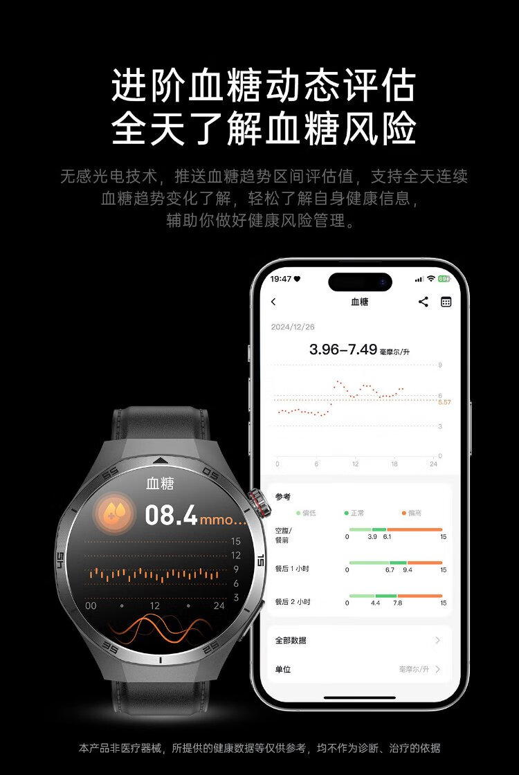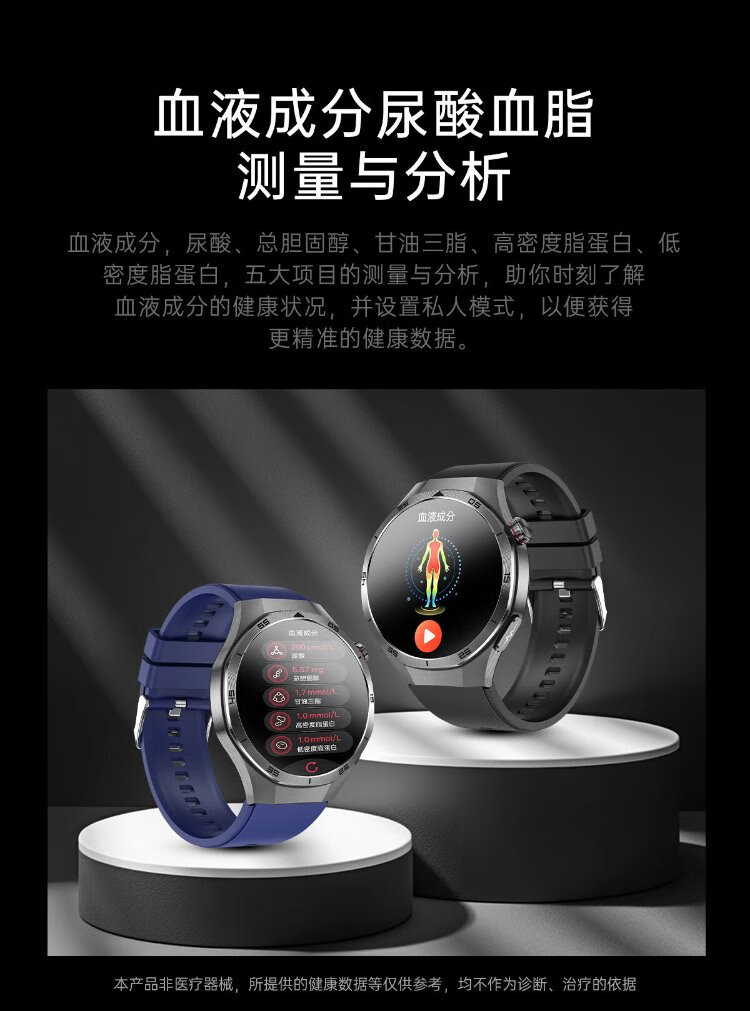 Guangxi 2026 new upgrade Huawei Hongmeng system suitable for non-invasive blood sugar and blood pressure monitoring watch heart rate blood oxygen blood lipid uric acid all-in-one sleep electrocardiogram obsidian black blood sugar blood pressure blood lipid monitoring + five internal organs monitoring + high-definition call