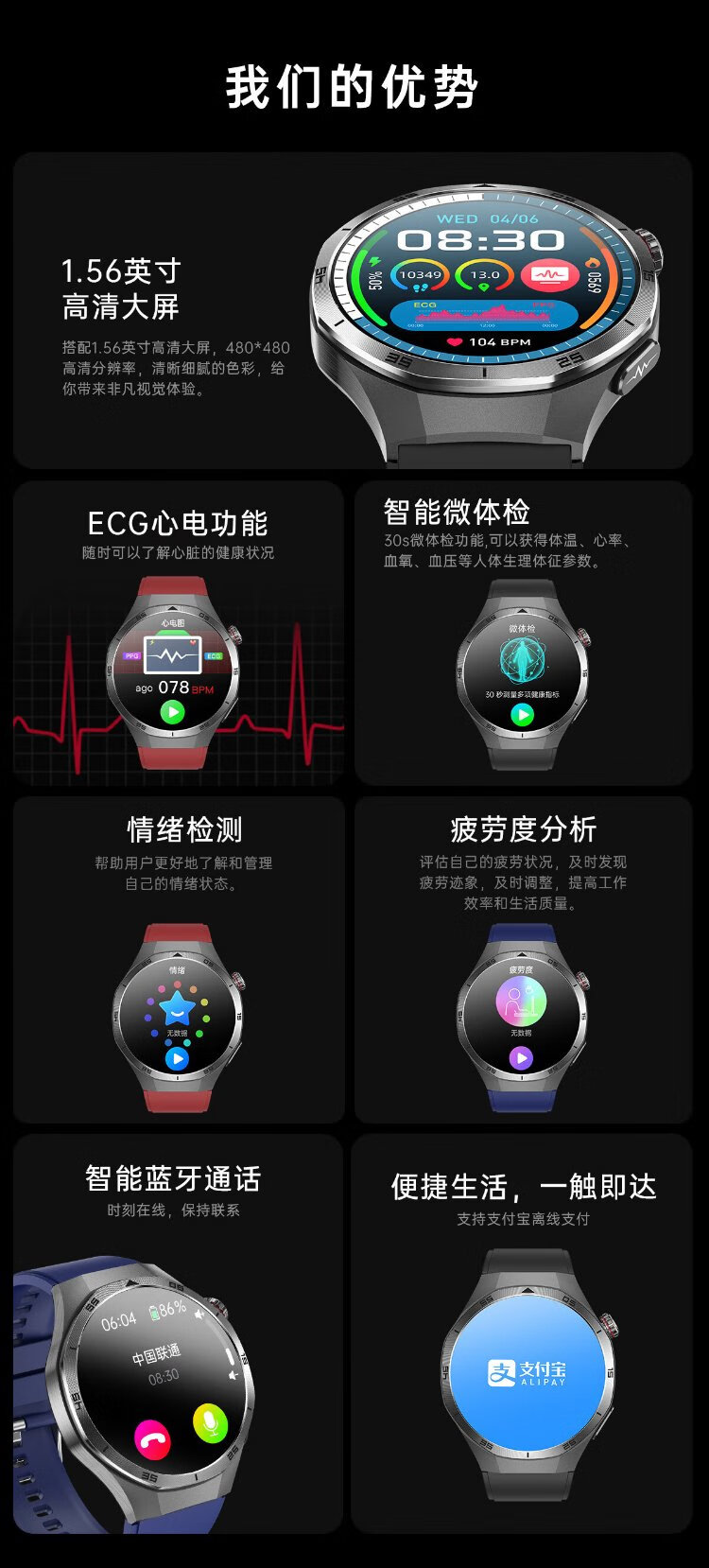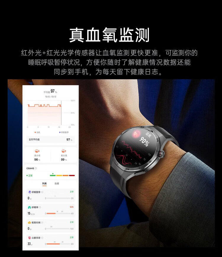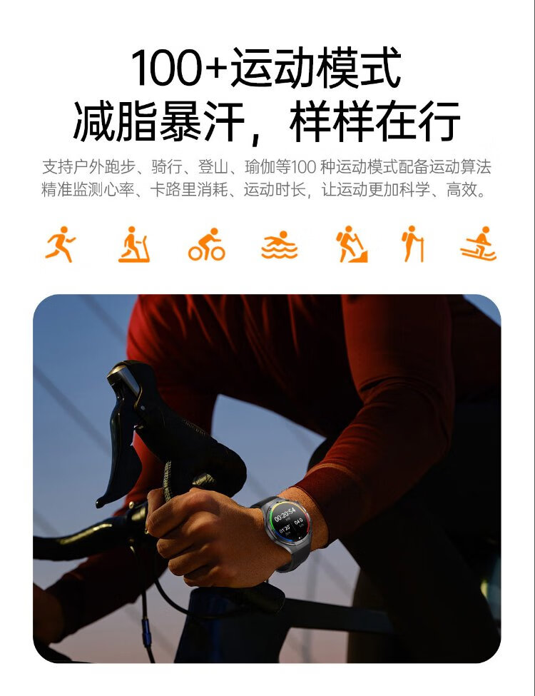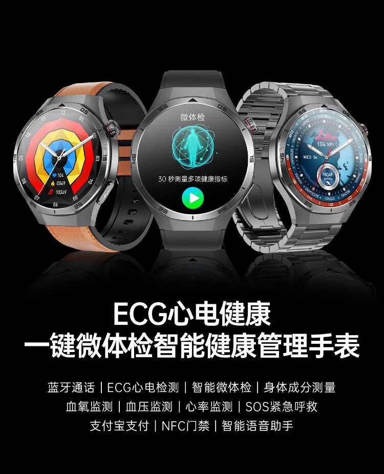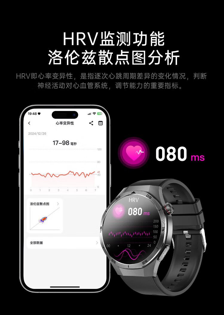 Guangxi 2026 new upgrade Huawei Hongmeng system suitable for non-invasive blood sugar and blood pressure monitoring watch heart rate blood oxygen blood lipid uric acid all-in-one sleep electrocardiogram obsidian black blood sugar blood pressure blood lipid monitoring + five internal organs monitoring + high-definition call