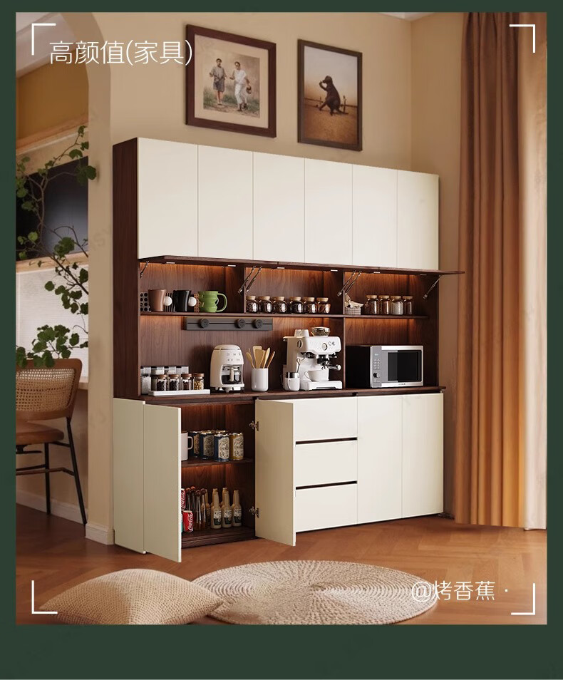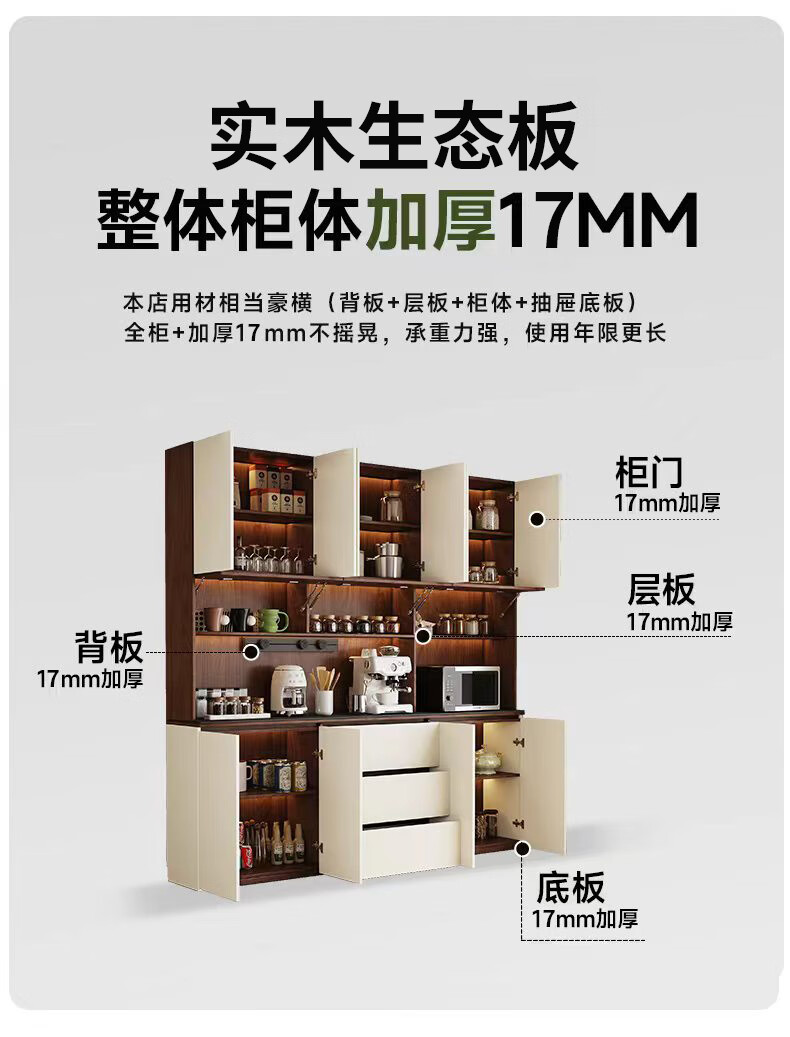 Yimuju solid wood sideboard against the wall integrated storage cabinet living room multi-functional wine cabinet storage cabinet tea cabinet length 160*top depth 32/bottom depth 42*height 240CM