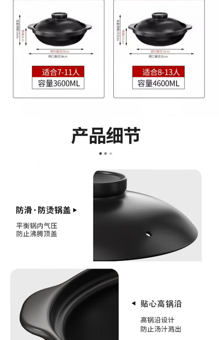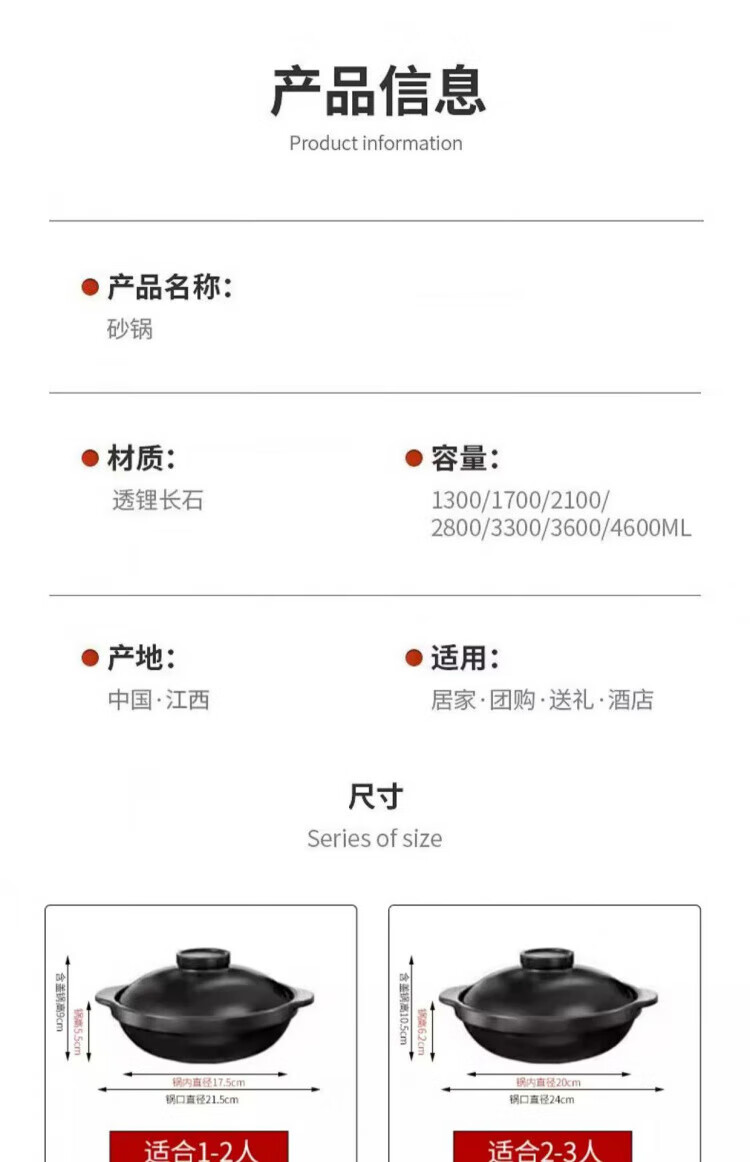 JCZS German casserole stew pot household gas high temperature resistant dry-fired claypot rice gas stove special ceramic soup pot casserole dry-fired non-cracking high temperature resistant with lid suitable for 6-8 people stew and stir-fry non-stick pot 3.3L