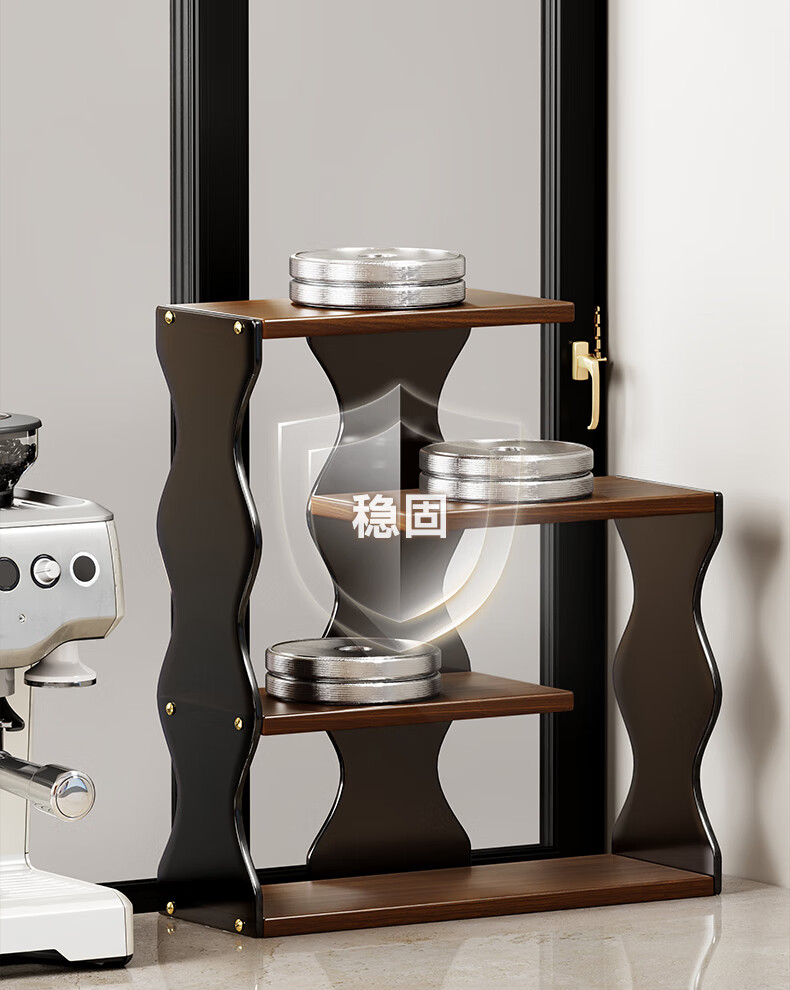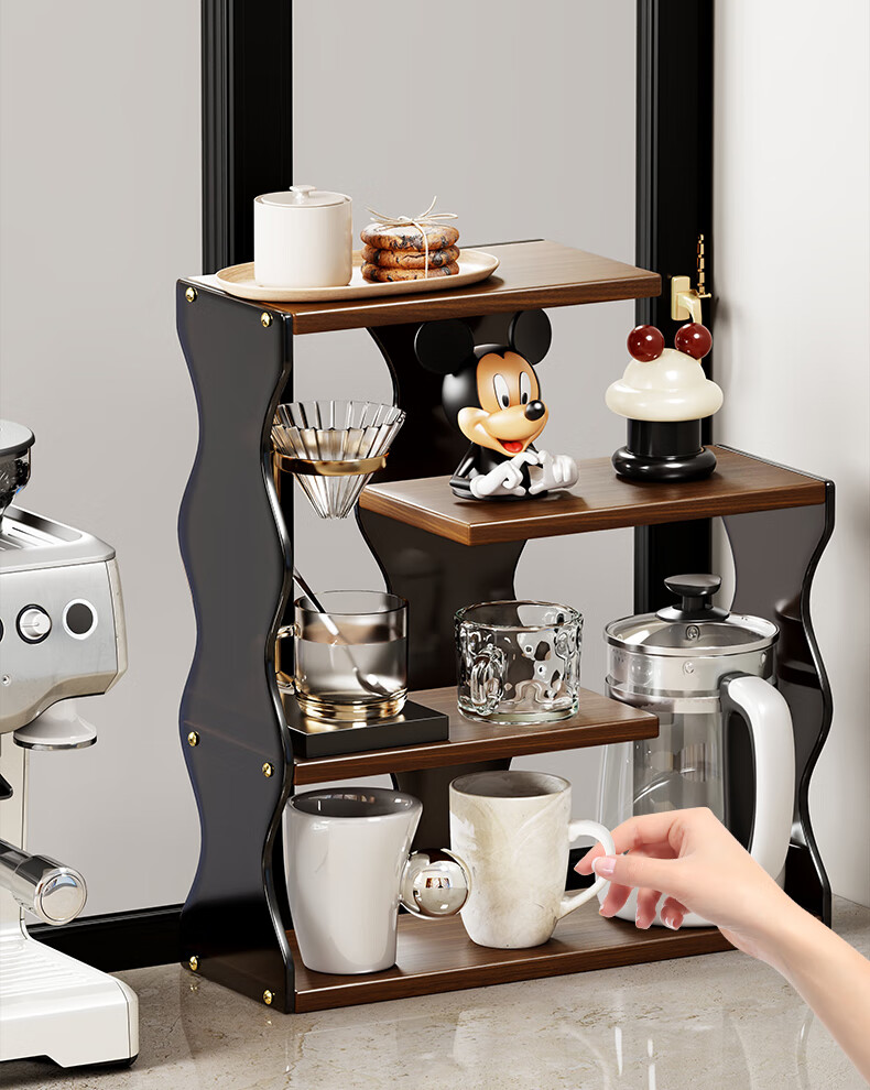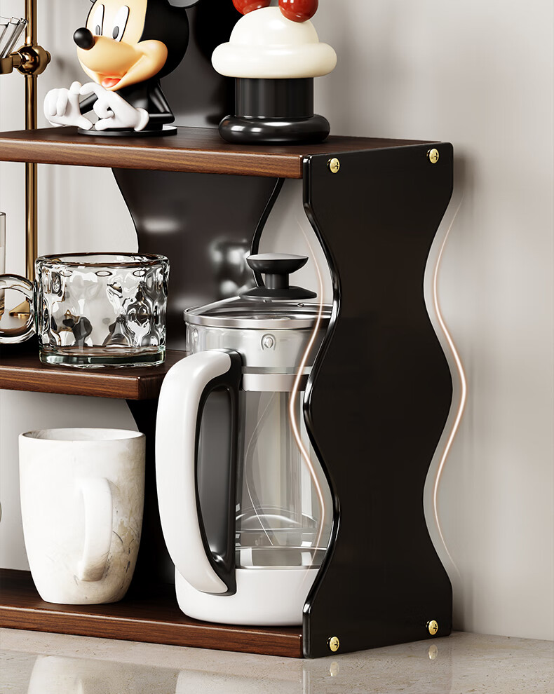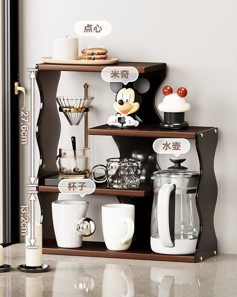 Sanqihu cup holder desktop storage rack dining table water cup storage multi-layer small mug holder household tea cup tea set sideboard Walnut-Black Tea