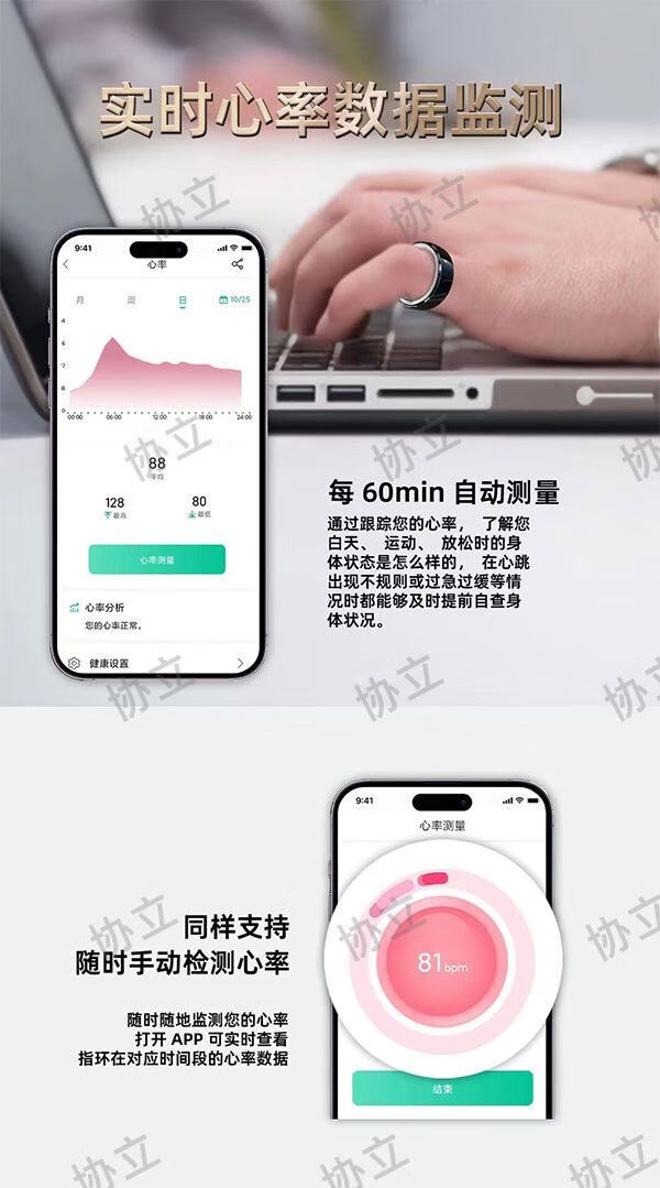 Xieli uric acid blood lipid smart nano ceramic high-precision non-invasive blood sugar measurement ring blood pressure heart rate exercise sleep ring Silver L01 uric acid blood lipid blood sugar blood pressure upgraded version No. 13 finger circumference 70MM