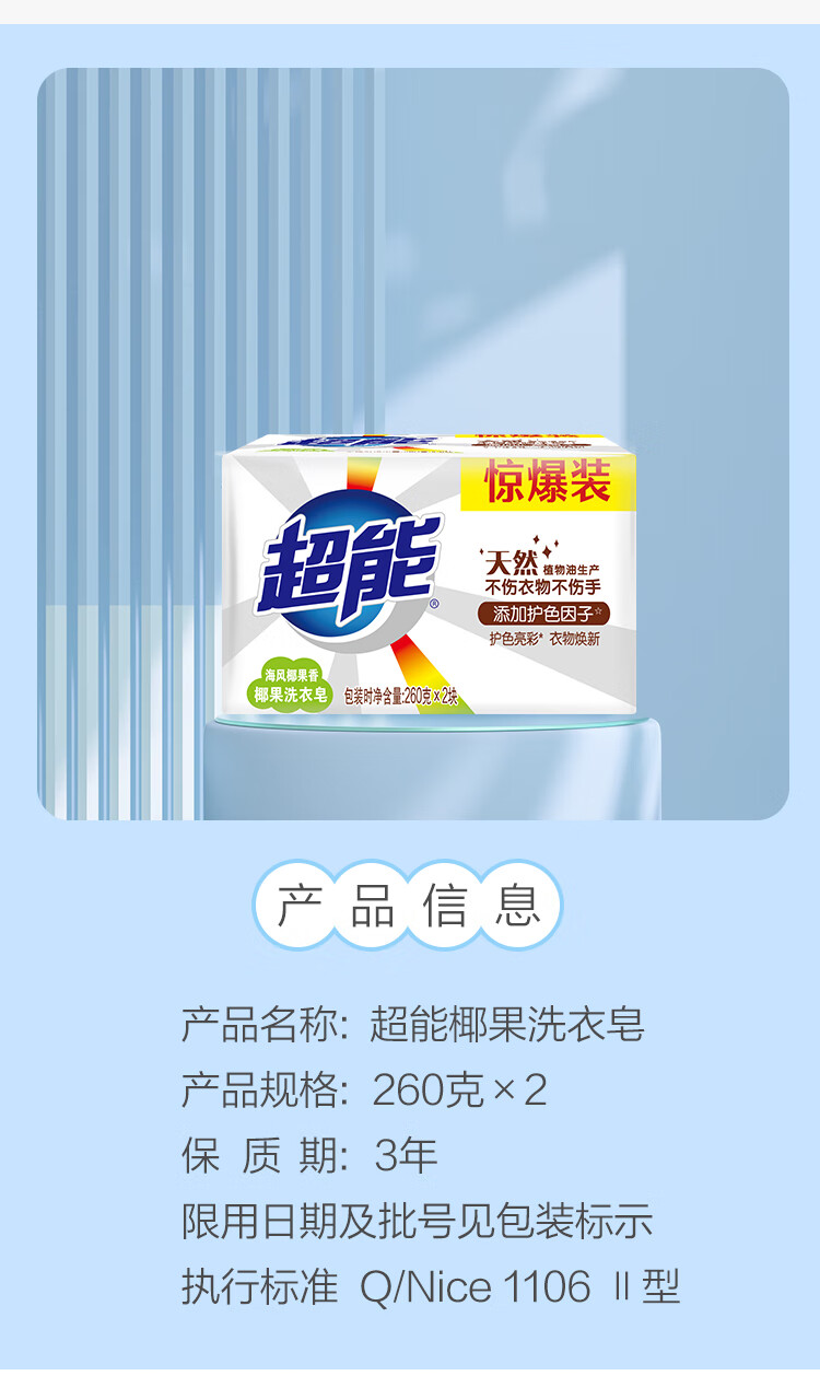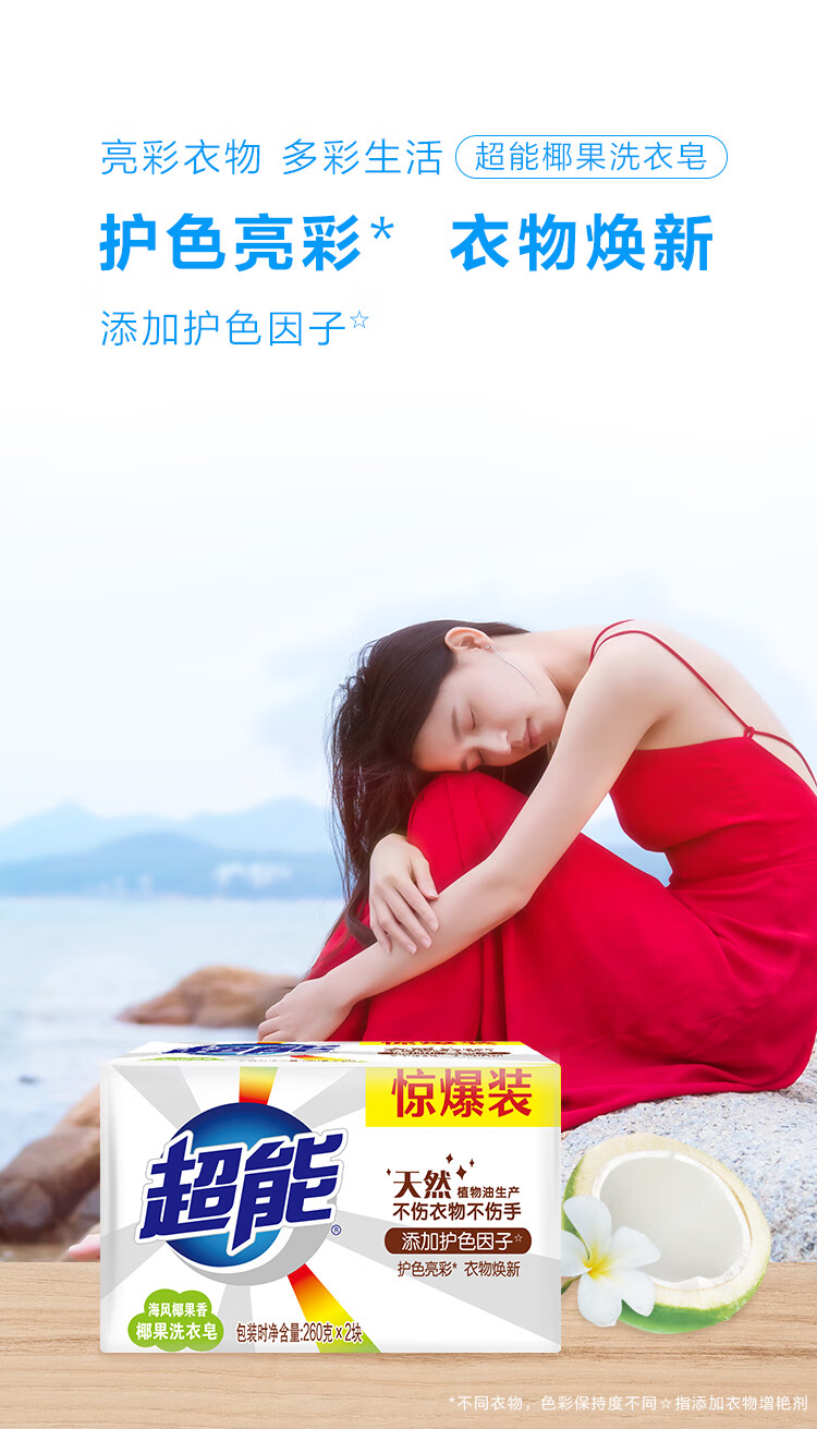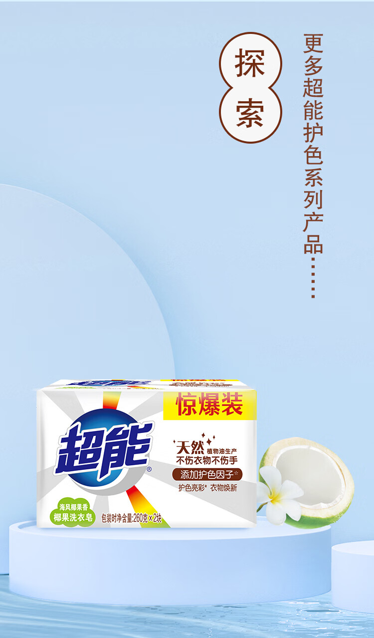Super Coconut Laundry Soap Soap Household Clothes Stain Remover Transparent Soap Family Pack Large Non-Cracking Flagship Store Authentic 2 Pieces 260g*2 Blocks*1 Set Super Coconut Laundry Soap