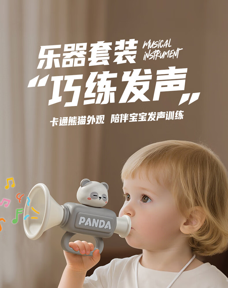 Bei Chuzhong infant toys 0-6-12 months Panda Whistle 1-year-old baby children's toys 1-3 years old one-month-old gift Whistle + harmonica + trumpet Oral muscle training/exercise lung capacity Gift box for newborn infants and toddlers Practical high-end meeting gift