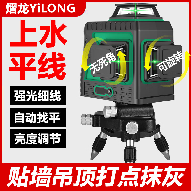 Yilong Yilong infrared level meter high-precision strong light 12-line two-color level outdoor special ceiling automatic leveling dual-electric red and green two-color 12-line high-precision strong light thin line