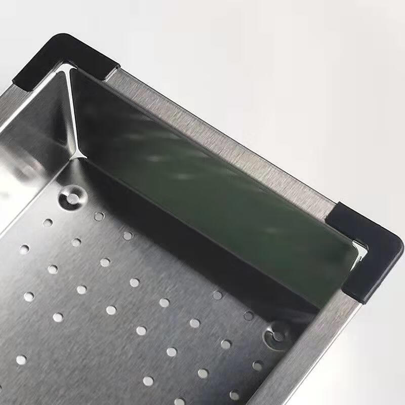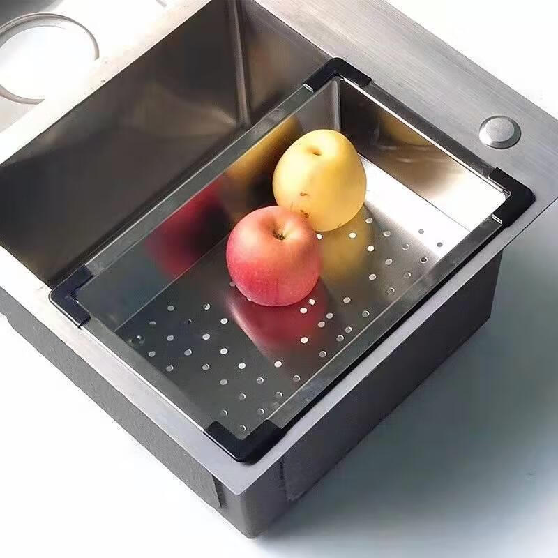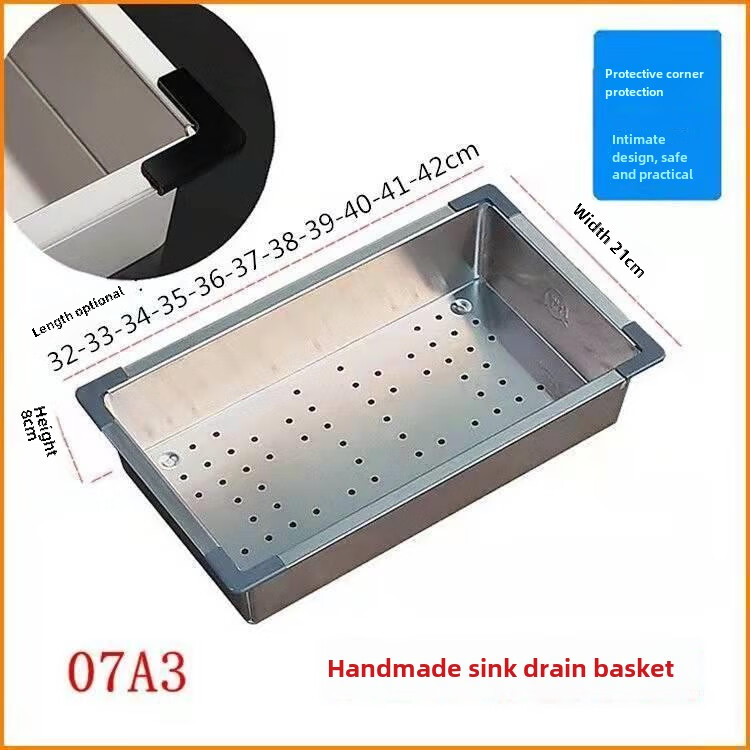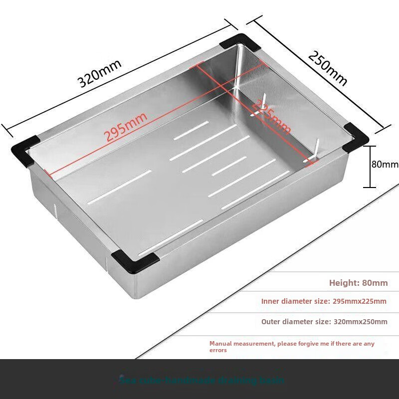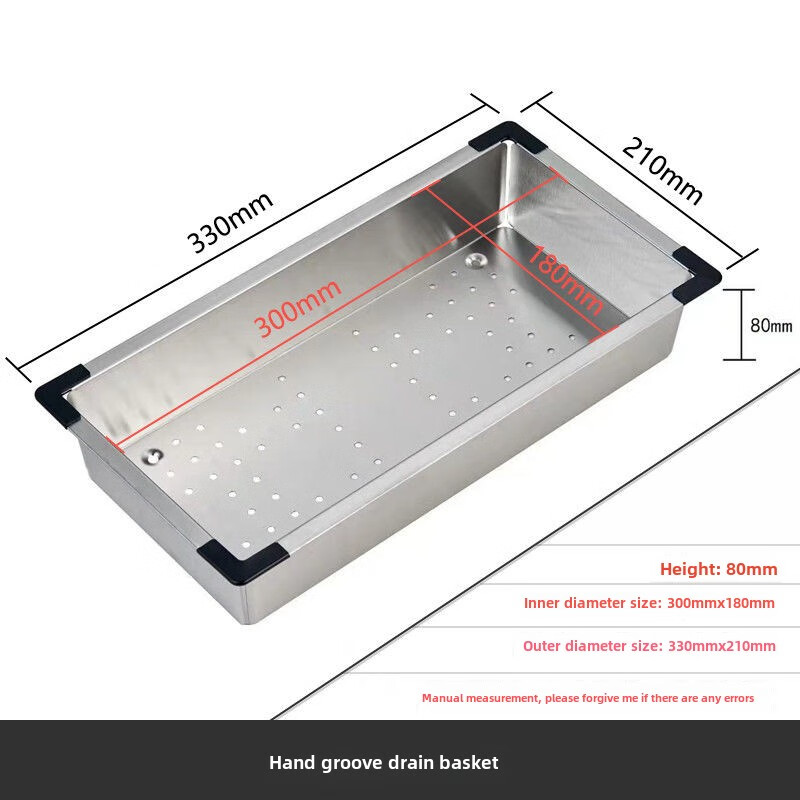 Complete 304 stainless steel kitchen sink drainage basket thickened rectangular fruit plate 304 round hole 33.5X21