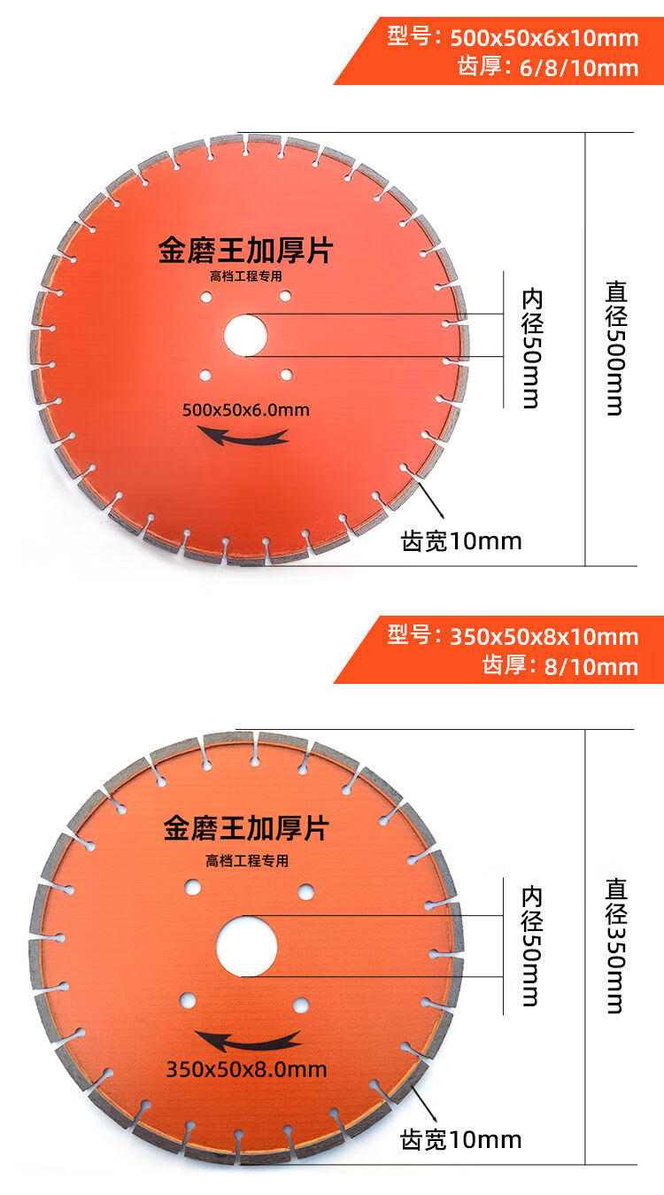 Thickened road cutting blade 8 concrete granite concrete cement pavement cutting blade 6 diamond saw blade 500mm*50*8 engineering special