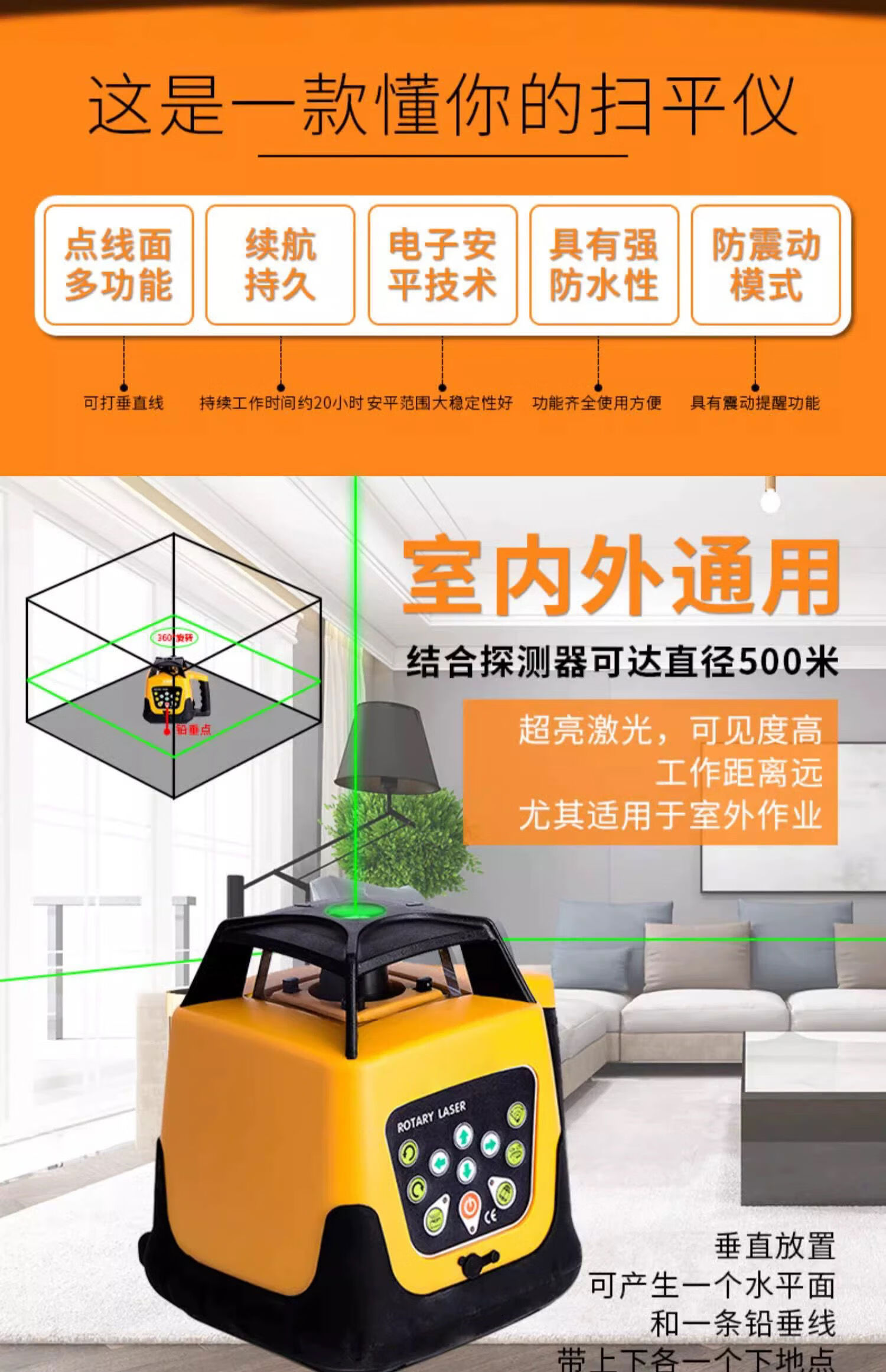Rotary laser sweeper green light fully automatic electronic anping vertical grading horizontal 500 meters in diameter green light tripod foot tower size